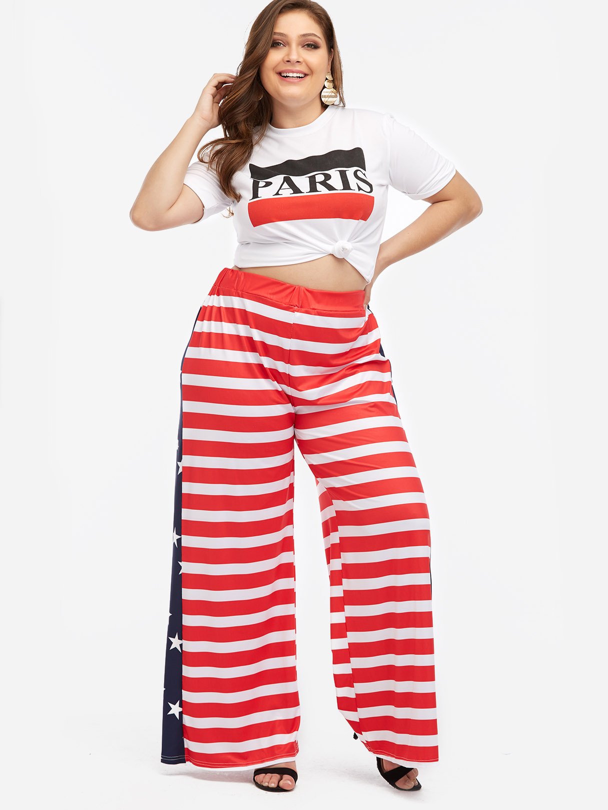 Plus Size Stripe Wide Leg Pants - Striped / XL is backordered and will ship as soon as it is back in stock.