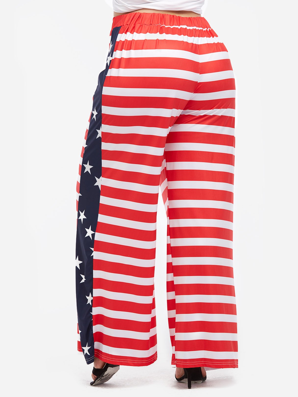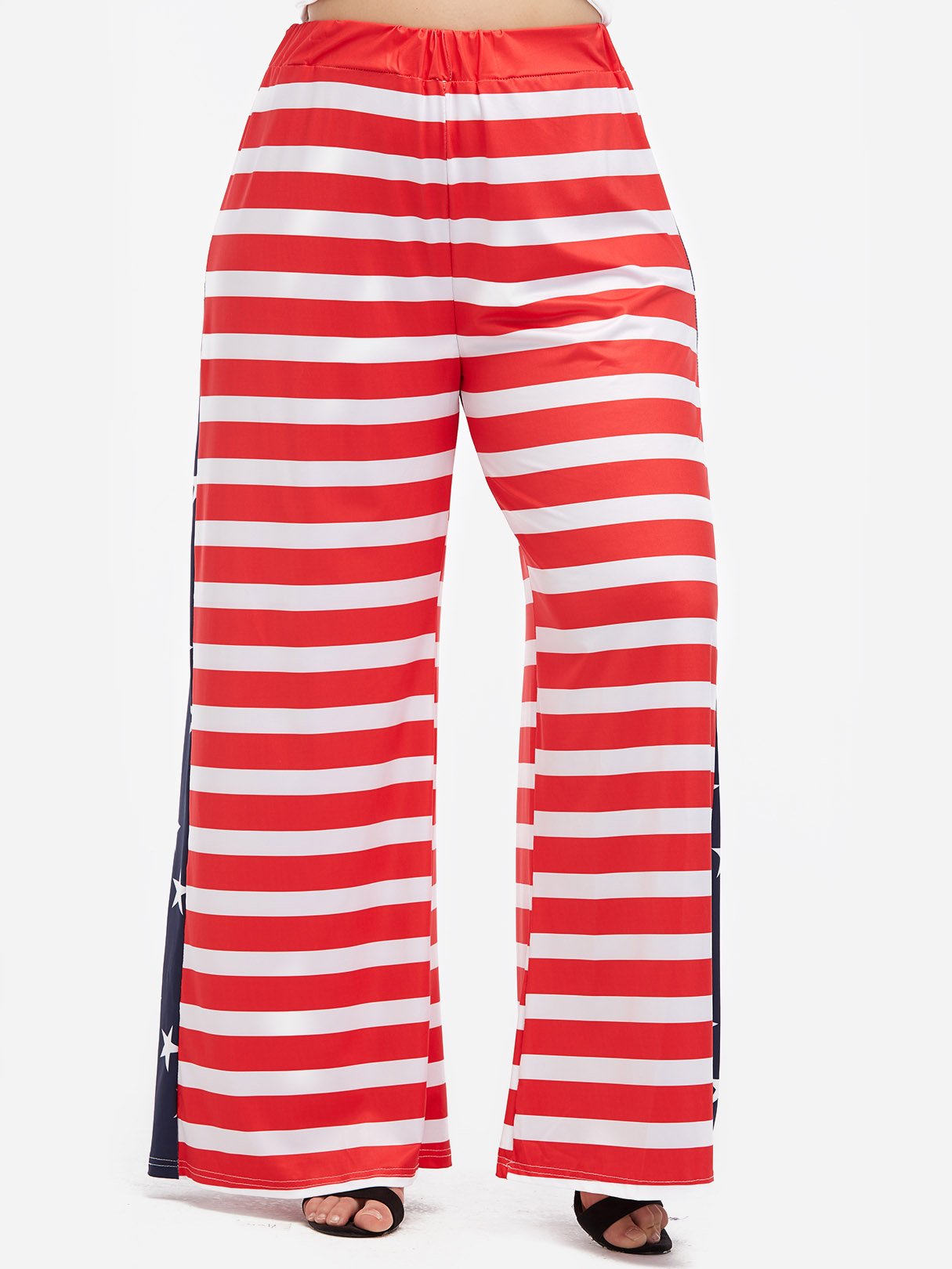 Material:Cotton,PolyesterSeason:Spring,Summer,AutumnPattern:Stripe ,StarStyle:Casual StyleType:Wide LegLength:LongFit:Loose Fit
