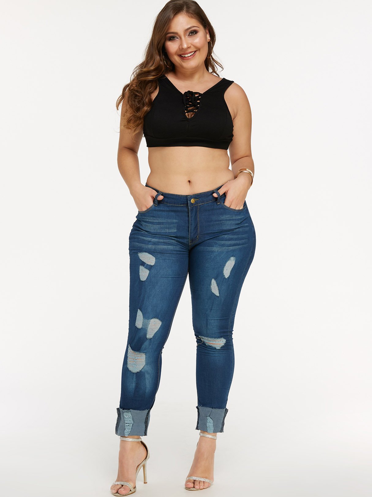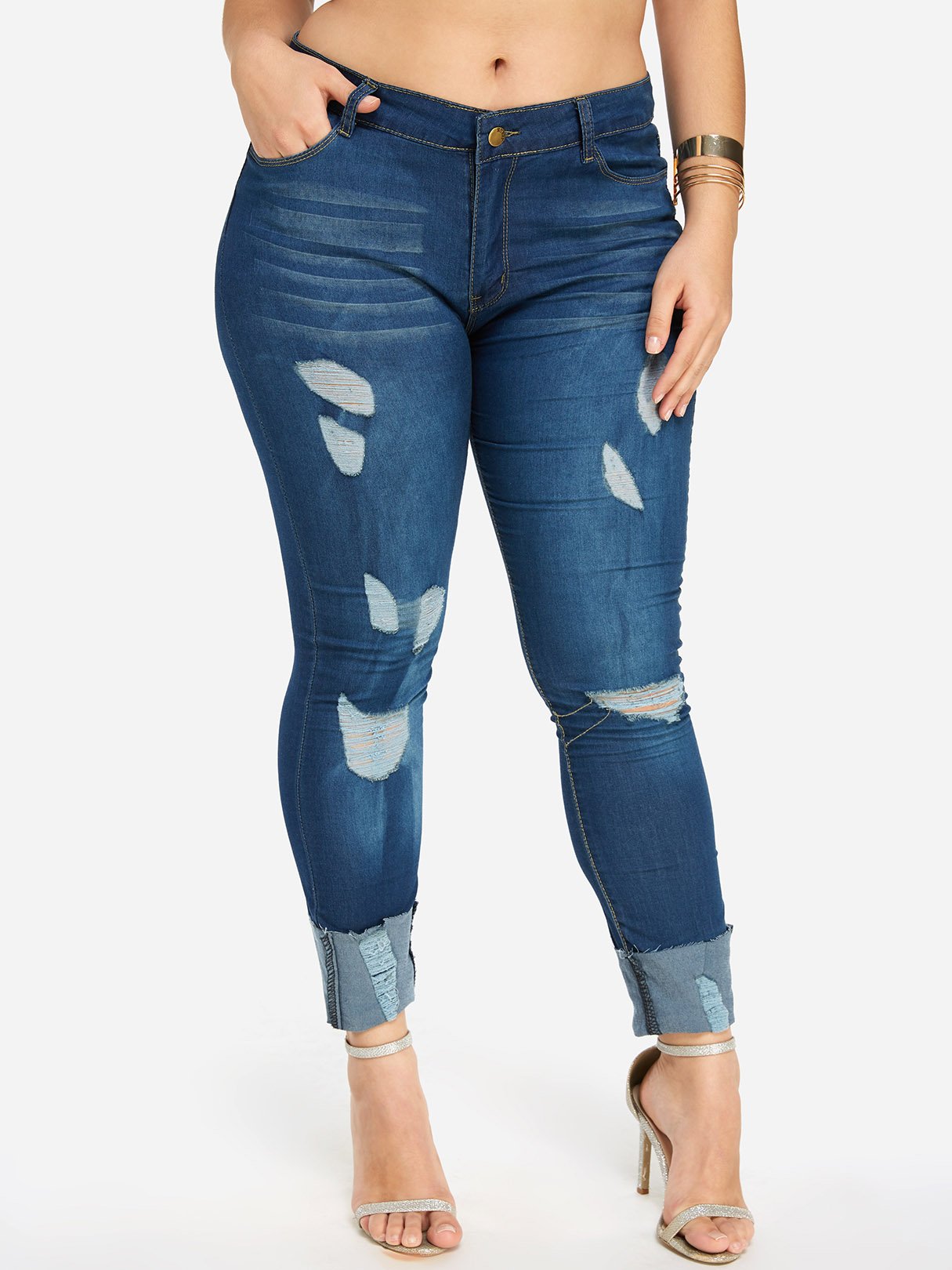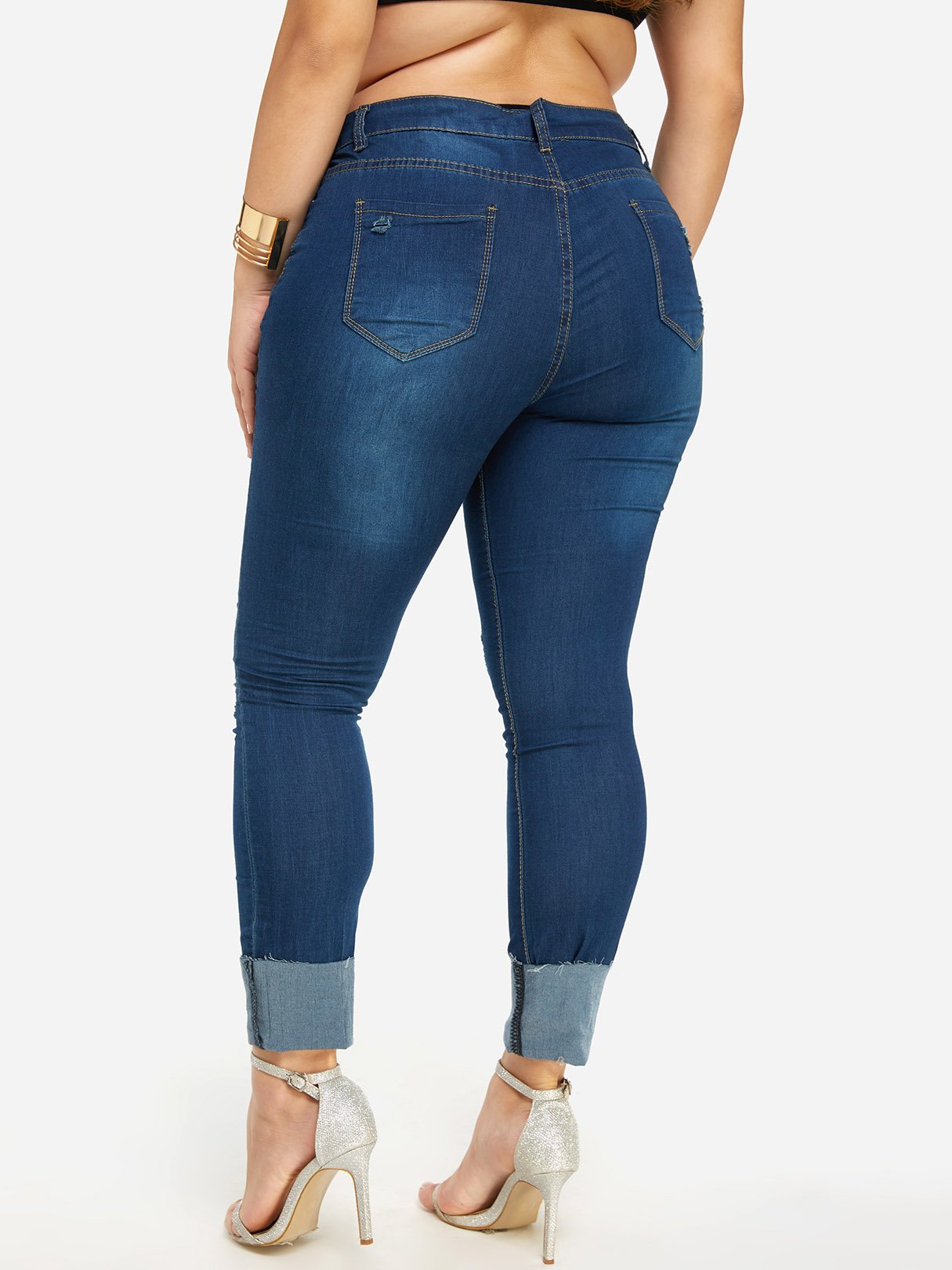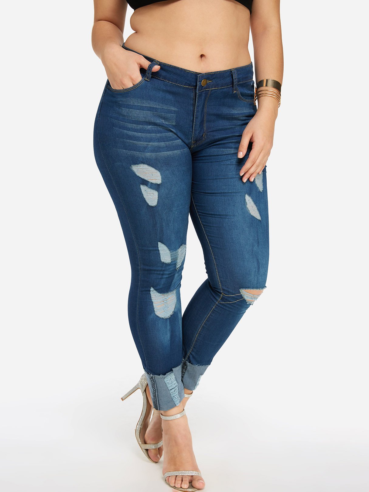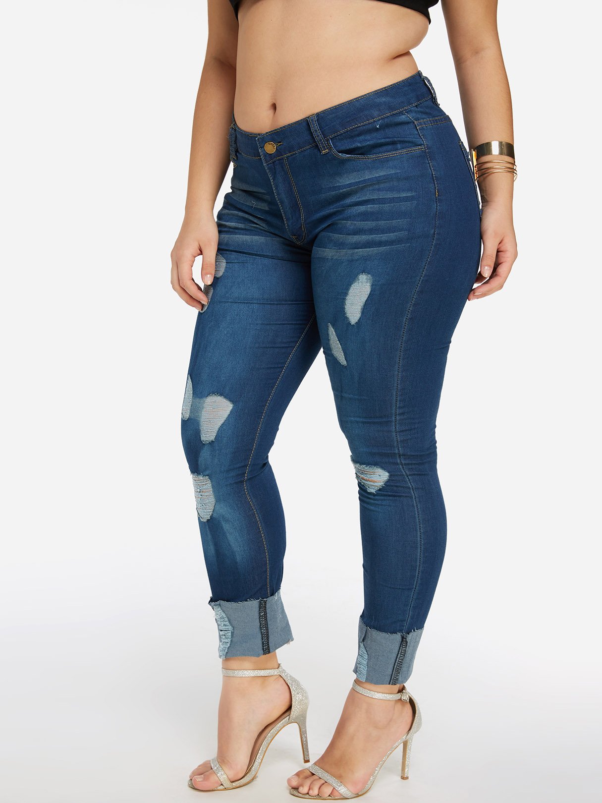 Random Ripped Zip Back Bodycon Dark Blue Plus Size Bottoms - Dark Blue / XXL is backordered and will ship as soon as it is back in stock.
