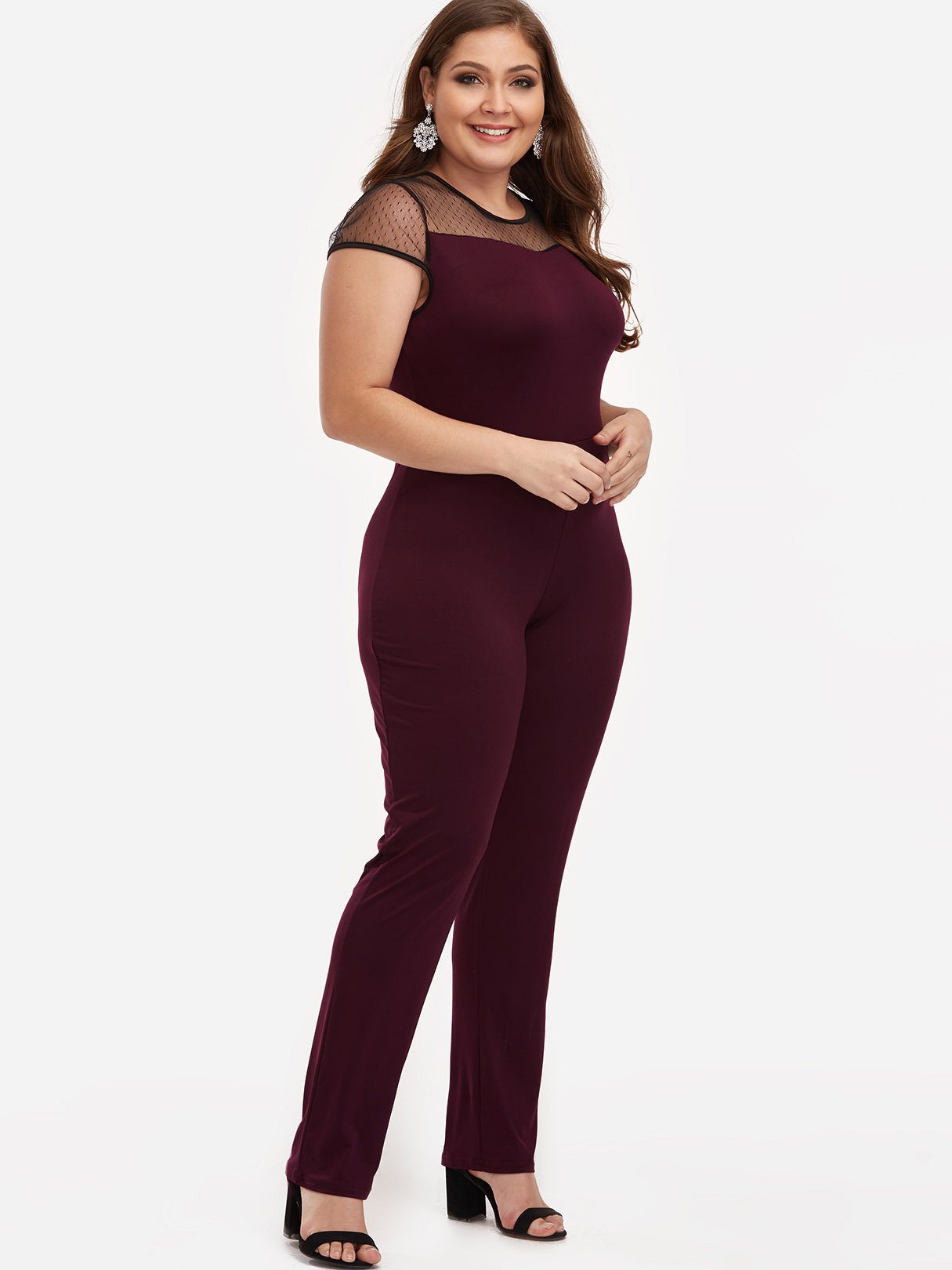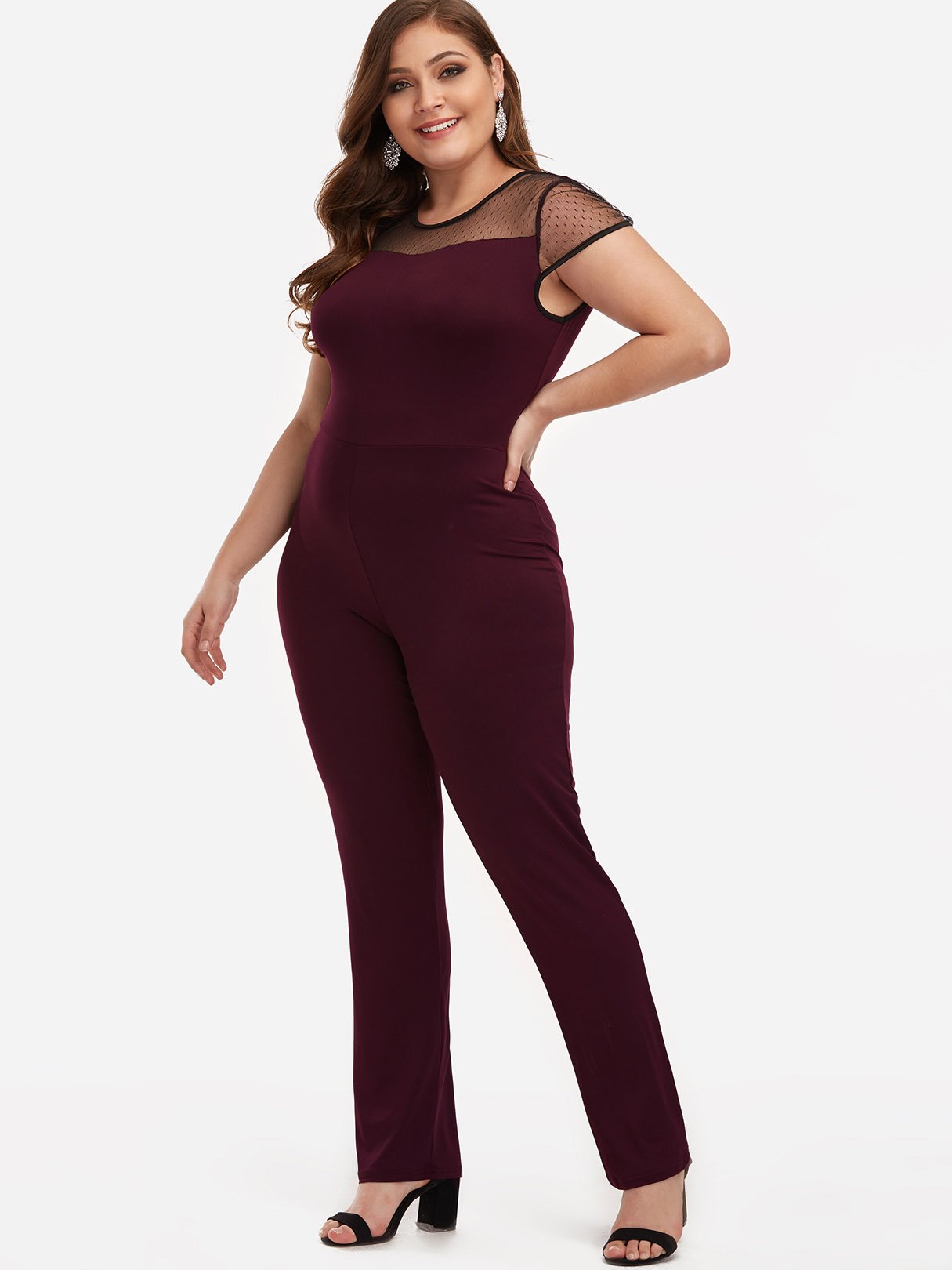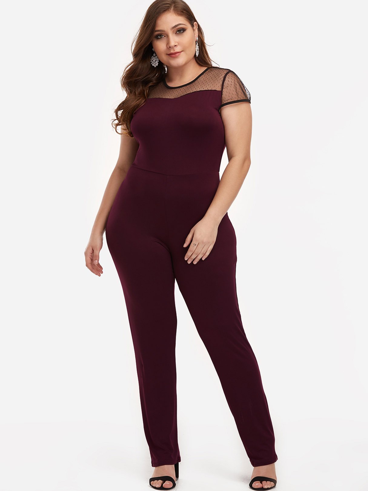 Round Neck Plain Short Sleeve Burgundy Plus Size Bottoms - Burgundy / L is backordered and will ship as soon as it is back in stock.
