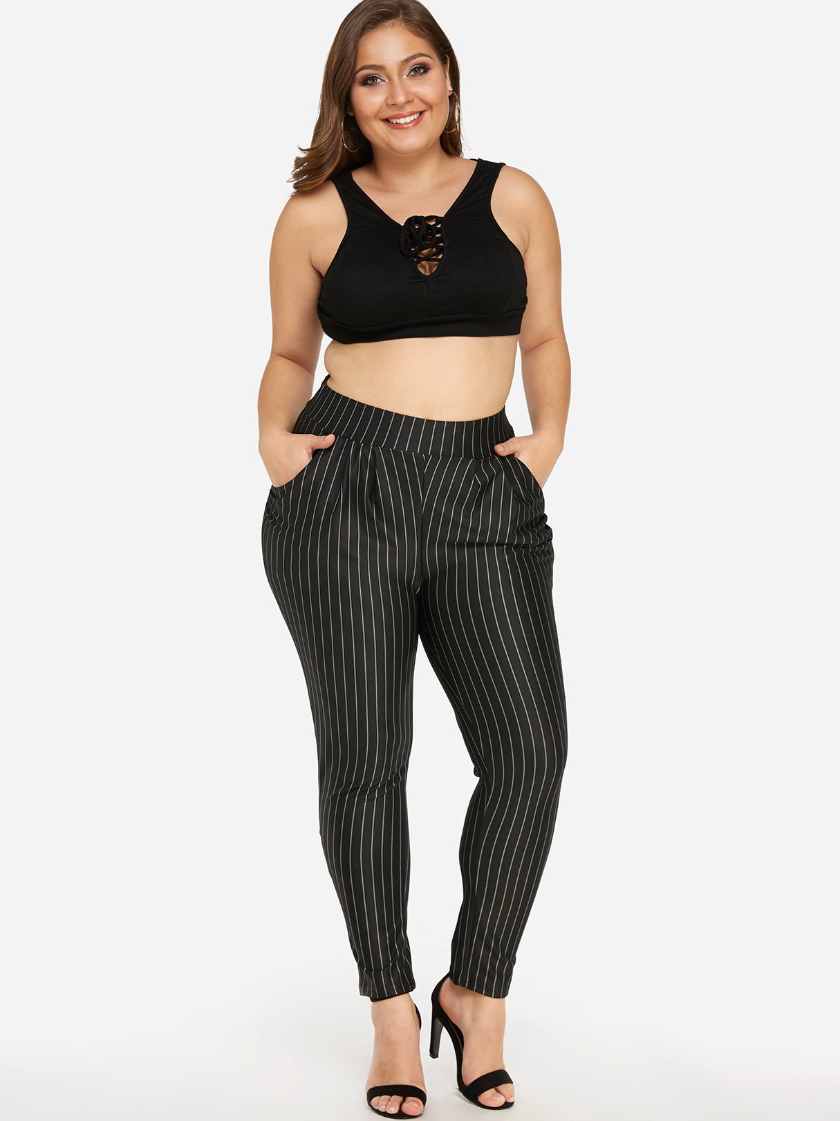 Skinny Stripe Black Plus Size Bottoms - Black / L is backordered and will ship as soon as it is back in stock.