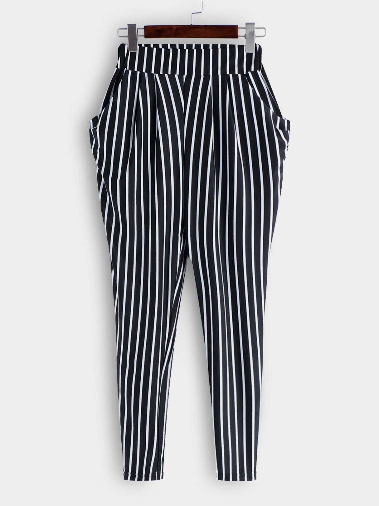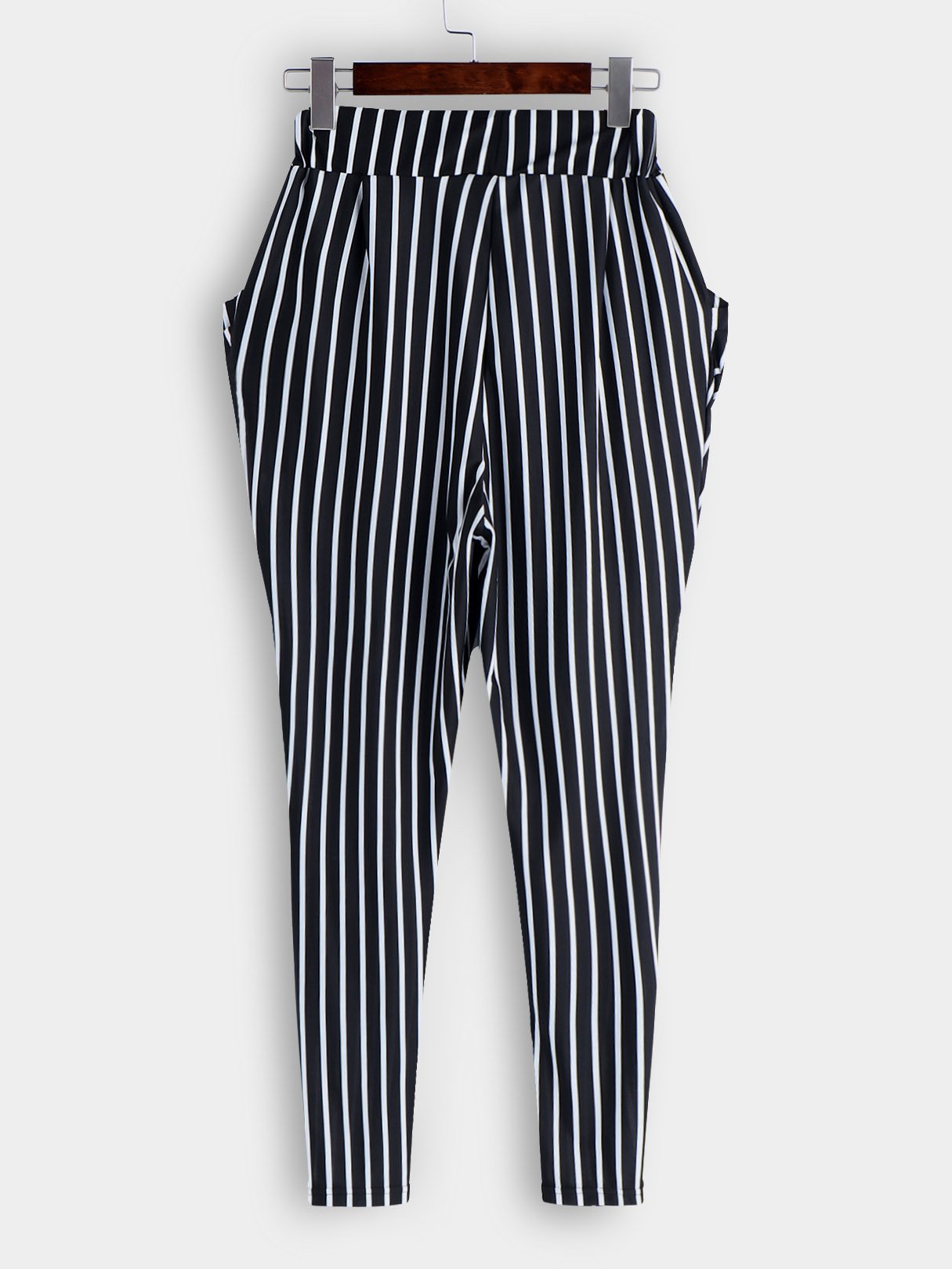 Material:Cotton,PolyesterSeason:Spring,Summer,Autumn,WinterPattern:StripeWaist Design:High-WaistedLength:LongFit:Regular Fit