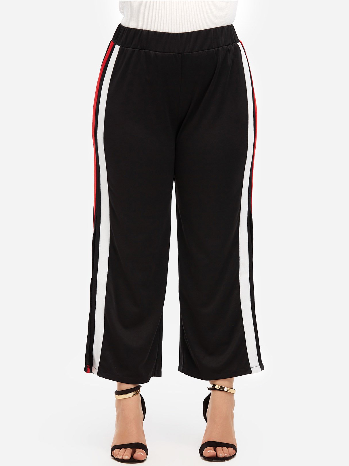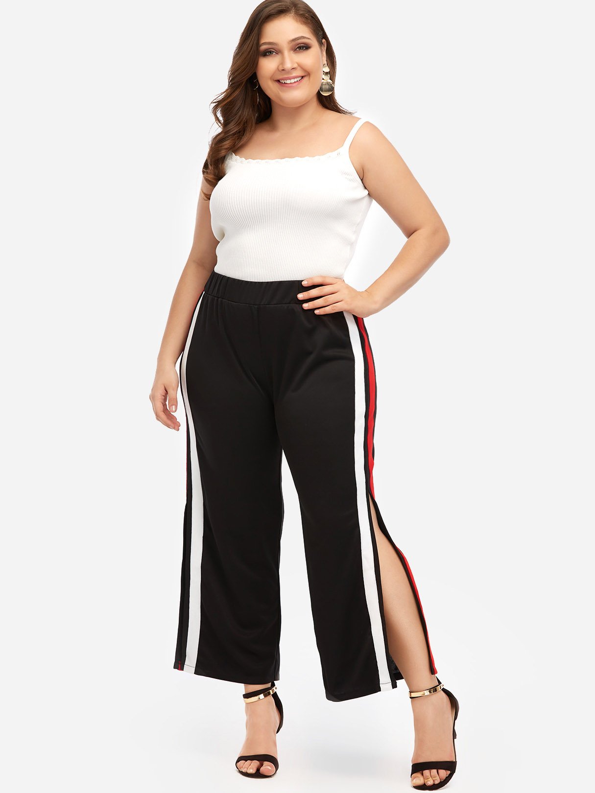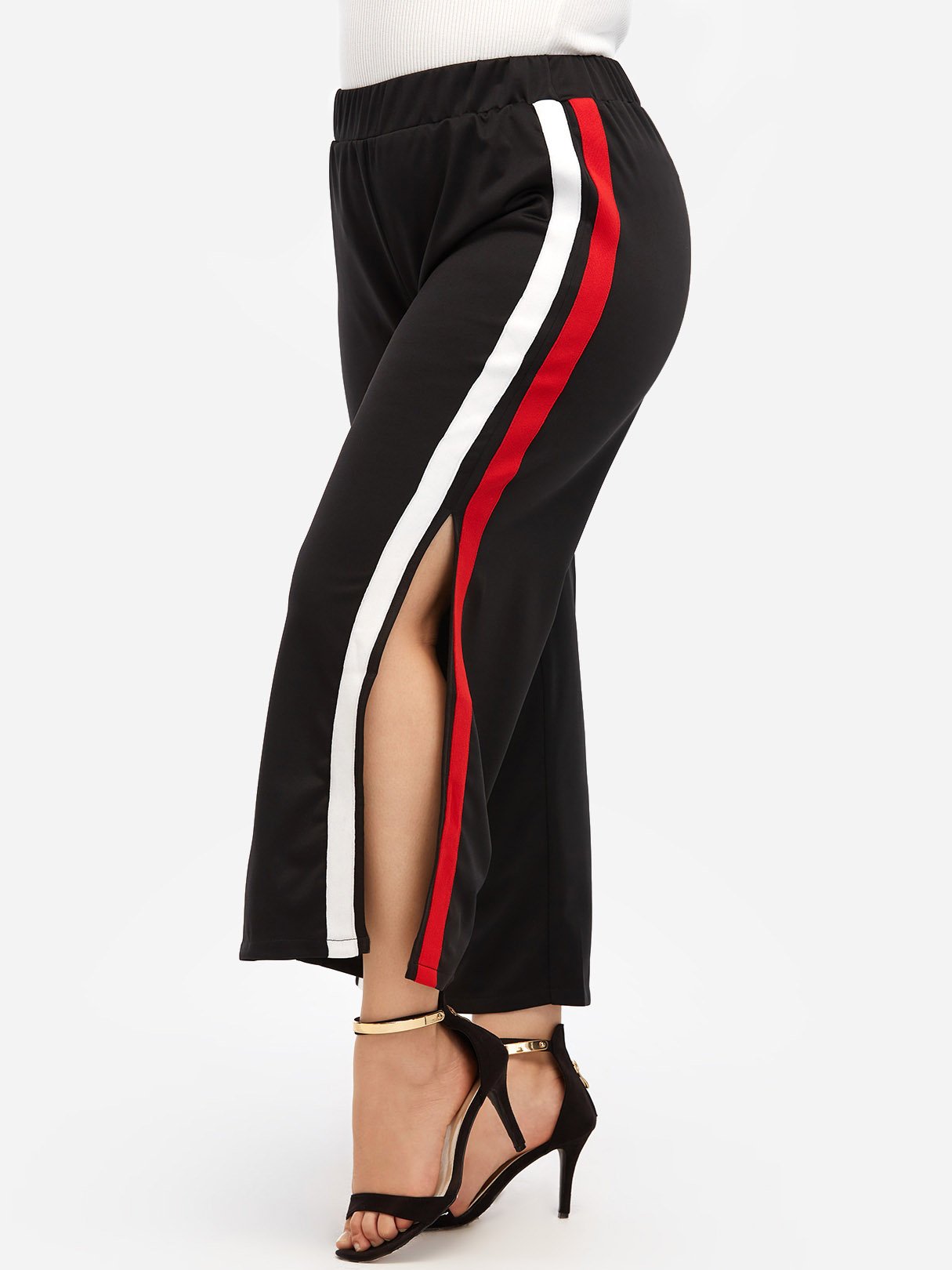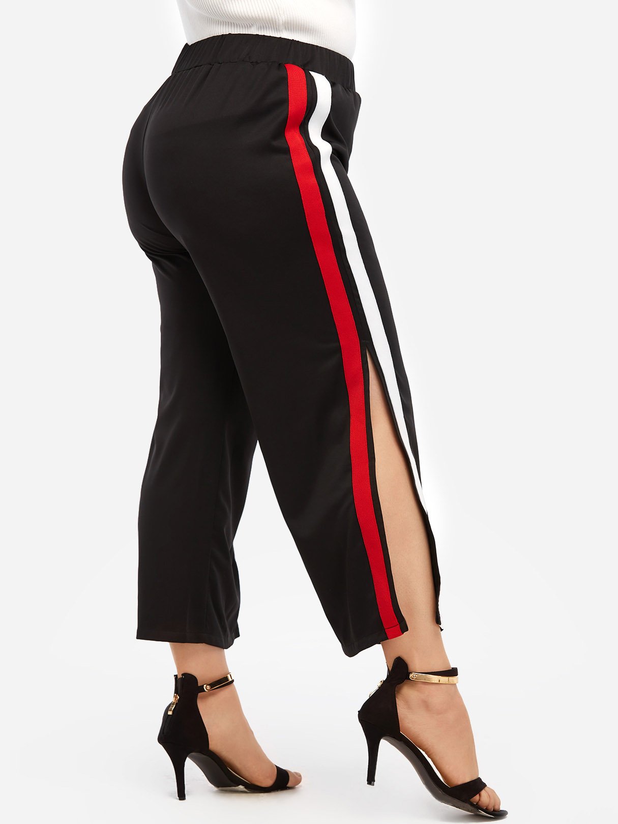 Stripe Slit Hem Black Plus Size Bottoms - Black / XL is backordered and will ship as soon as it is back in stock.