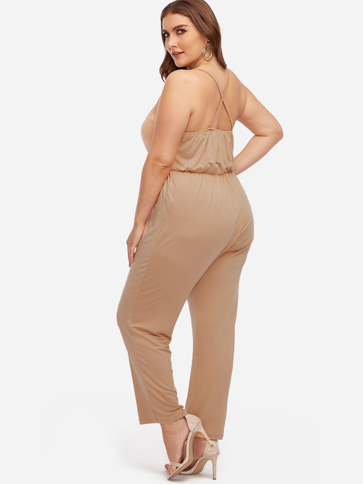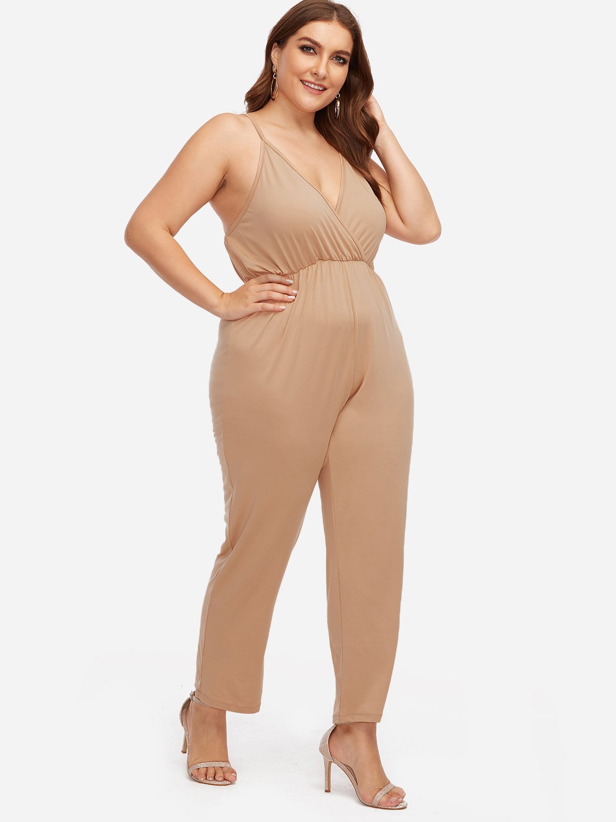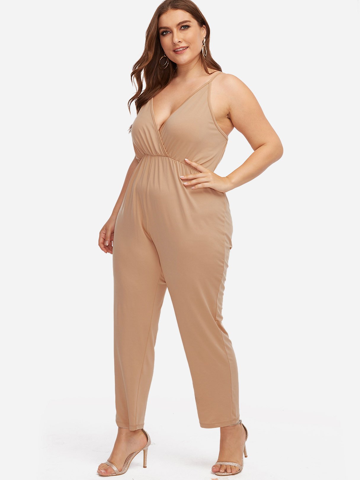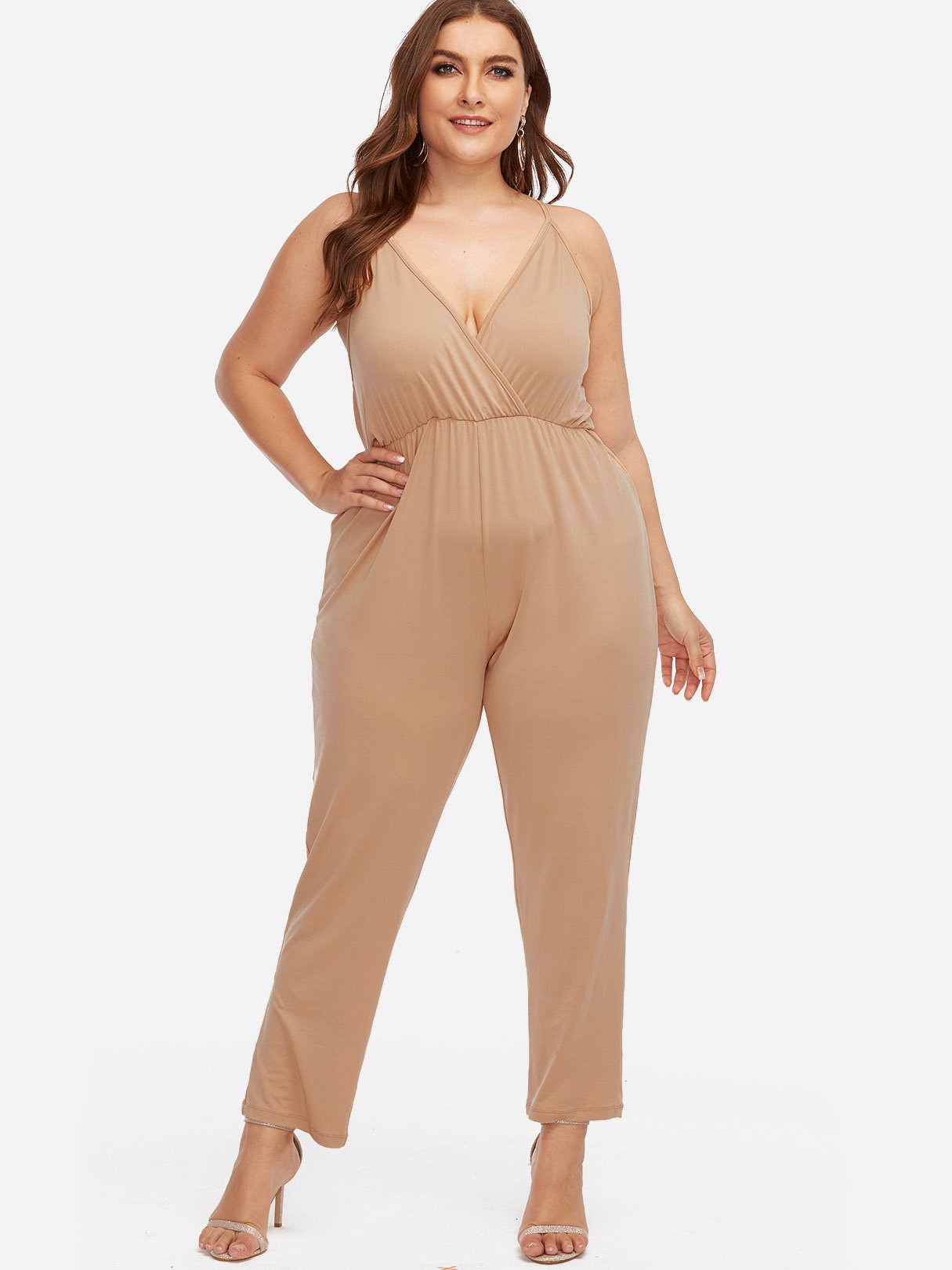 V-Neck Plain Sleeveless Khaki Plus Size Bottoms - Khaki / XL is backordered and will ship as soon as it is back in stock.
