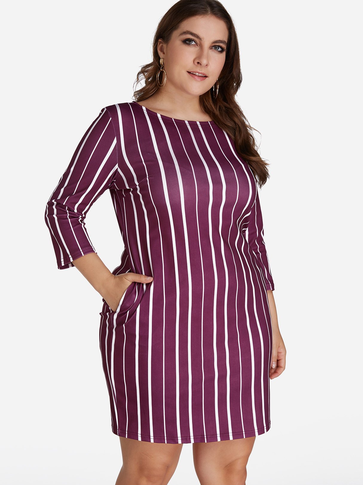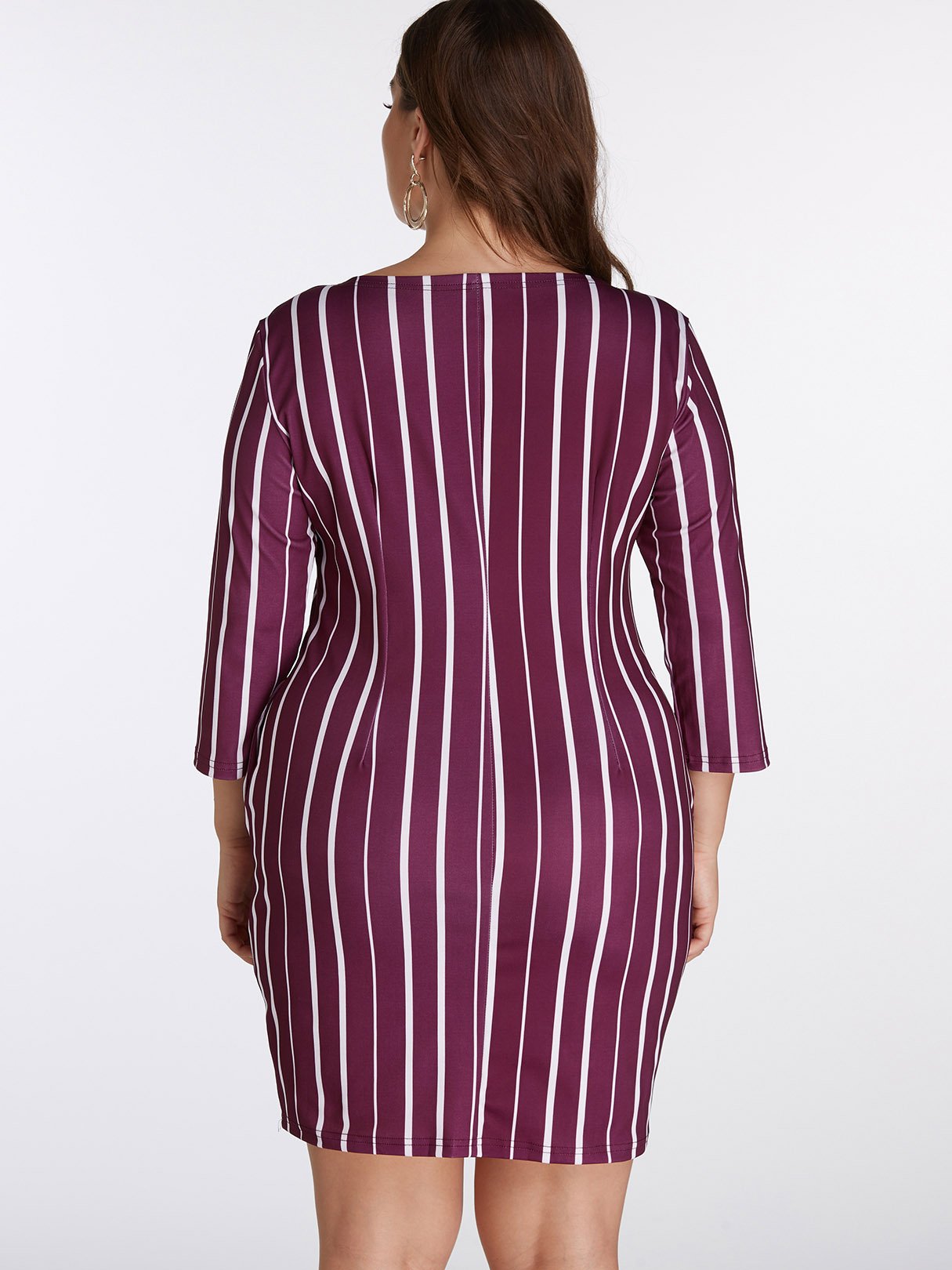 Bateau Stripe 3/4 Sleeve Bodycon Burgundy Plus Size Dresses - Burgundy / XL is backordered and will ship as soon as it is back in stock.