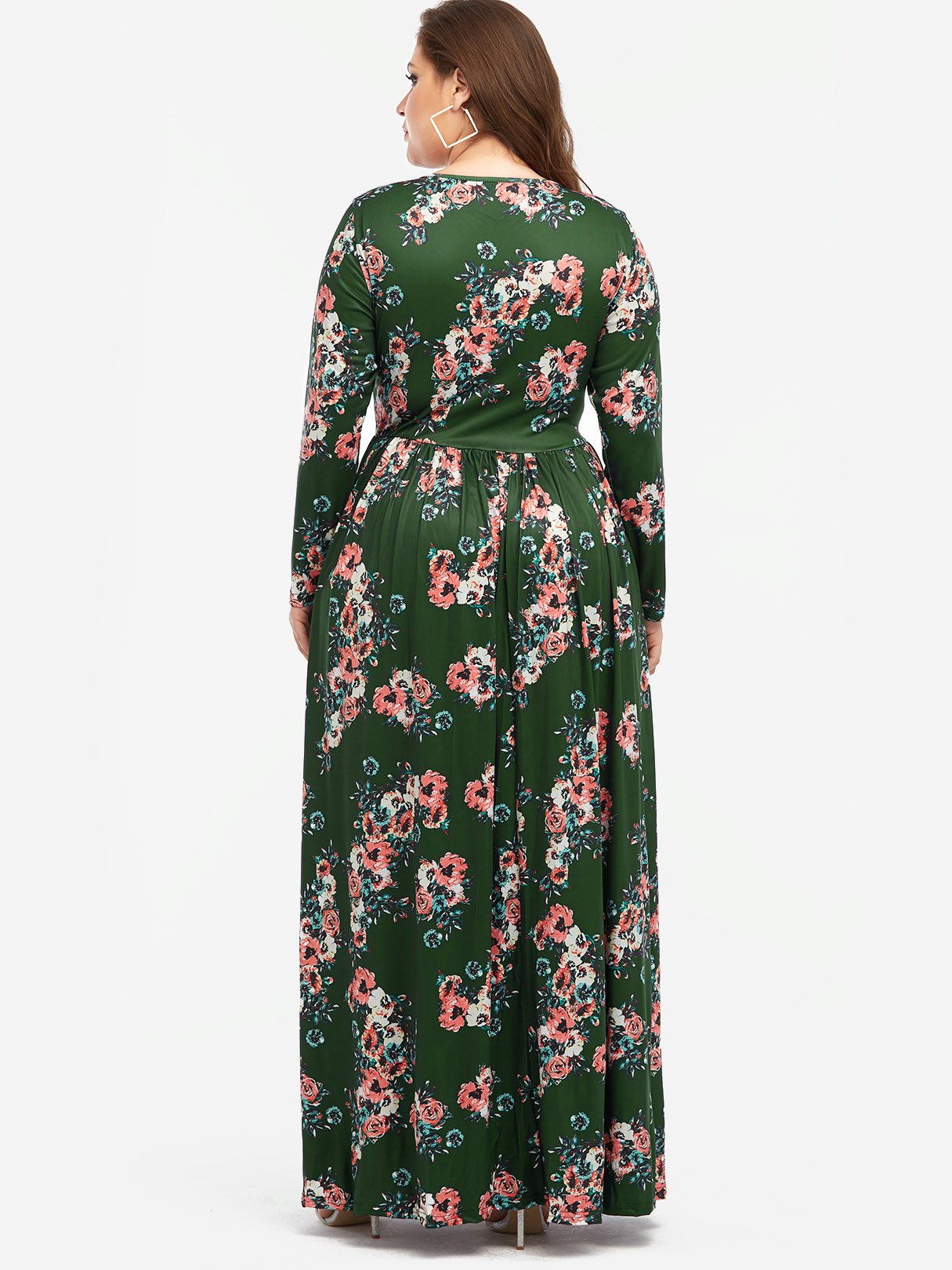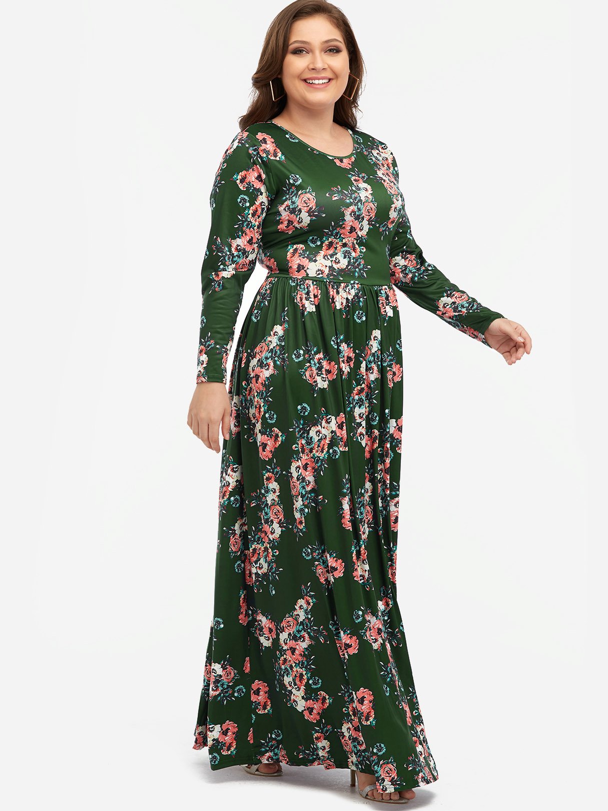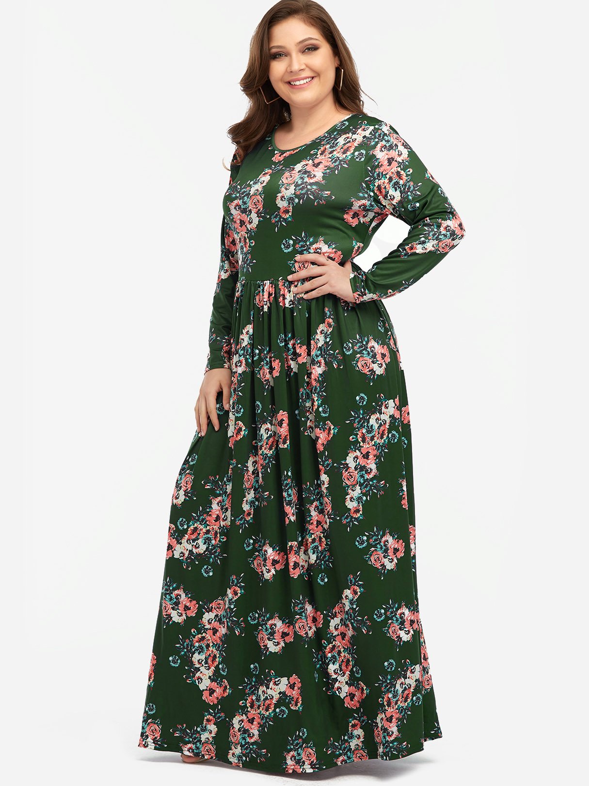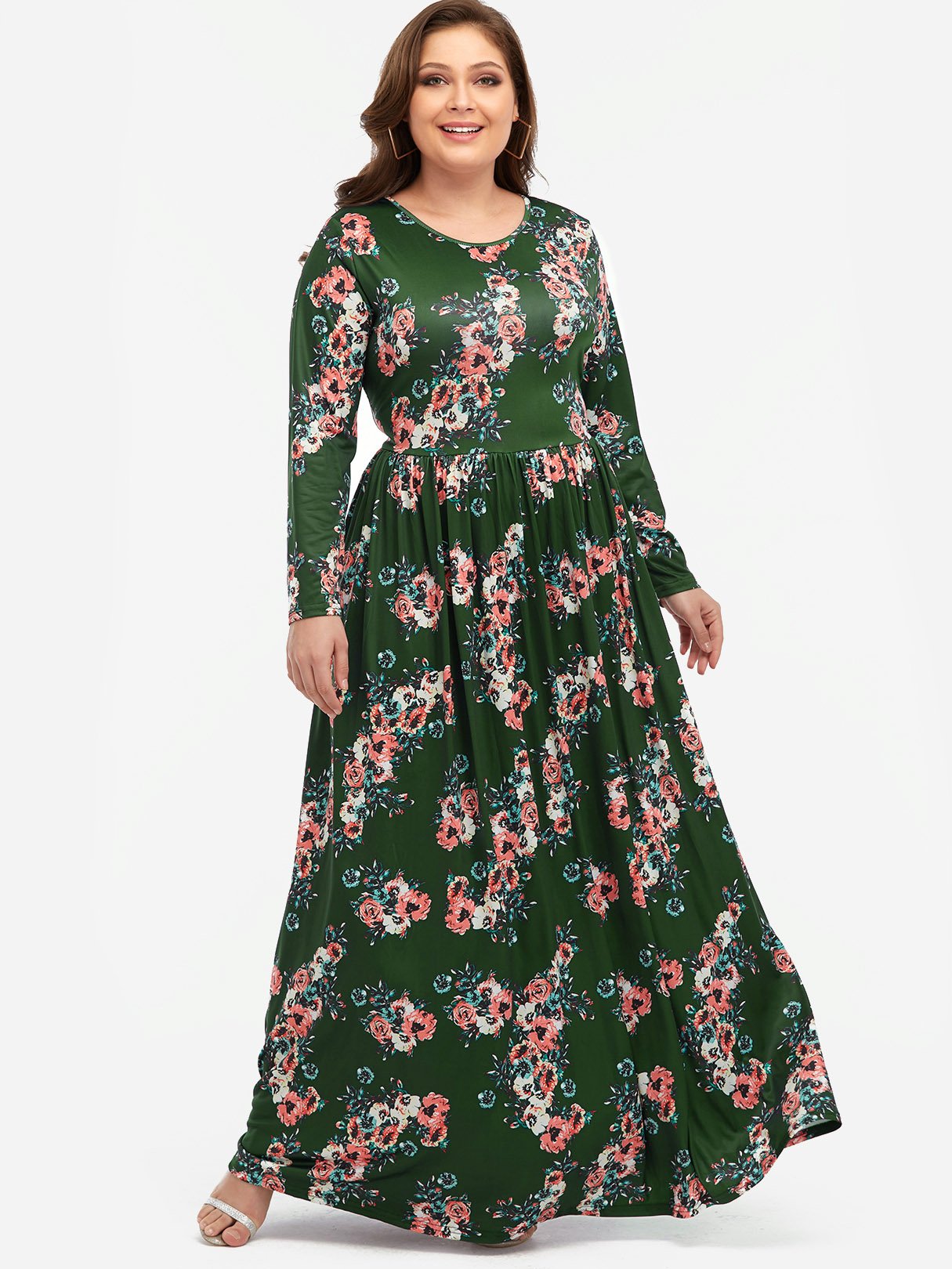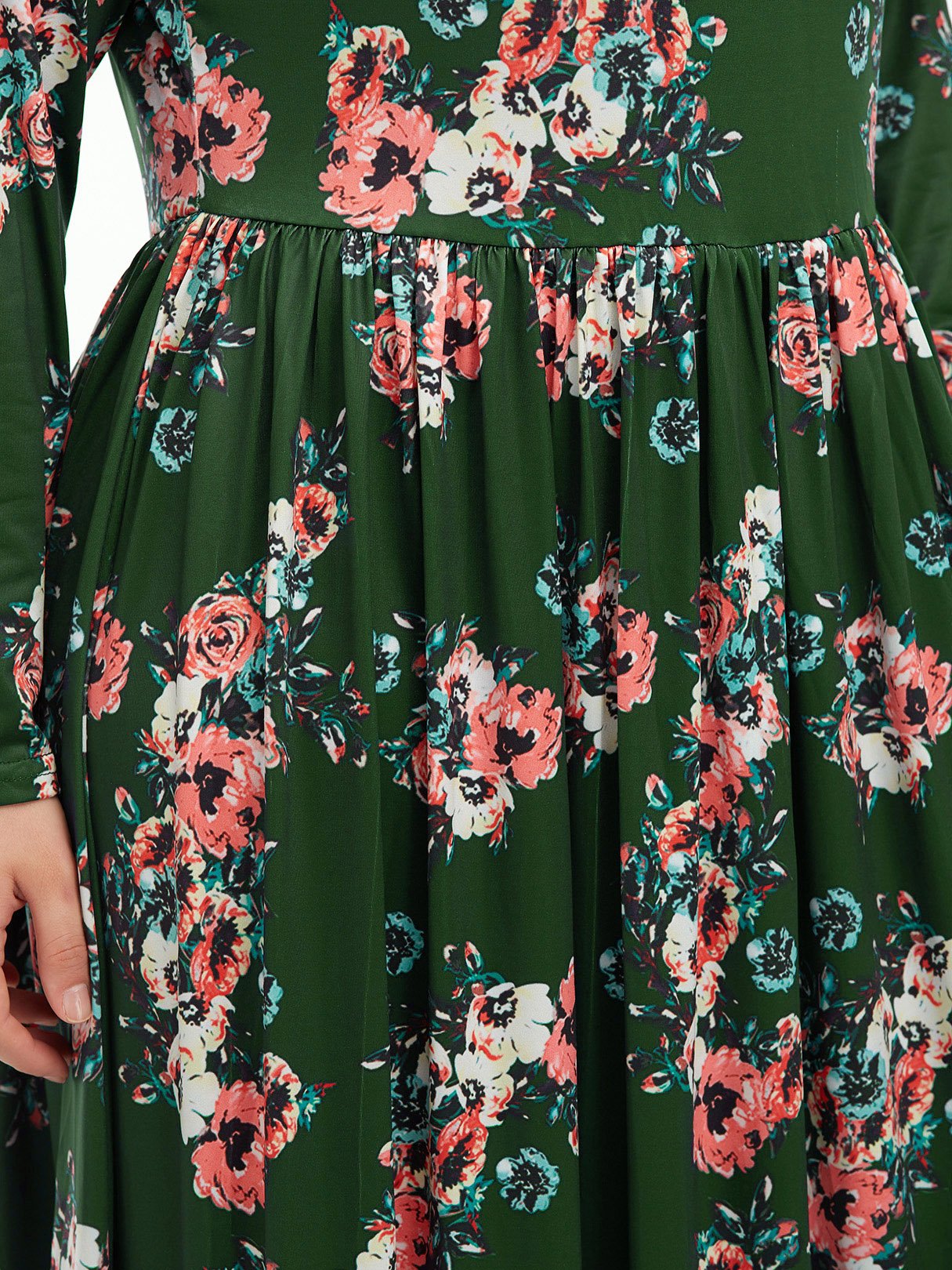 Material:Polyester,ElastaneNeckline:Round NeckSeason:Spring,SummerSleeves:Long SleevesPattern:Floral PrintStyle:Vacation StyleLength:MaxiFit:Regular Fit