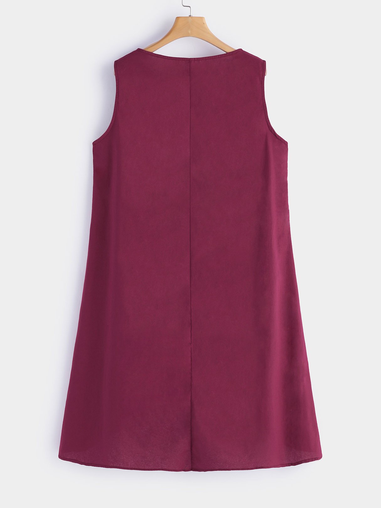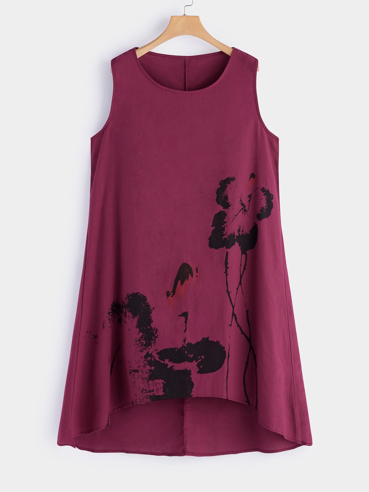 Round Neck Floral Print Sleeveless High-Low Hem Burgundy Plus Size Dress - Burgundy / L is backordered and will ship as soon as it is back in stock.