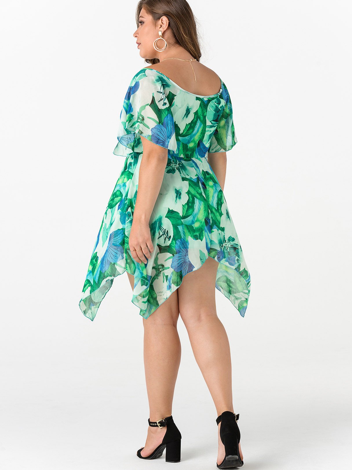 V-Neck Floral Print Lace-Up Short Sleeve Irregular Hem Plus Size Dresses - Floral / L is backordered and will ship as soon as it is back in stock.