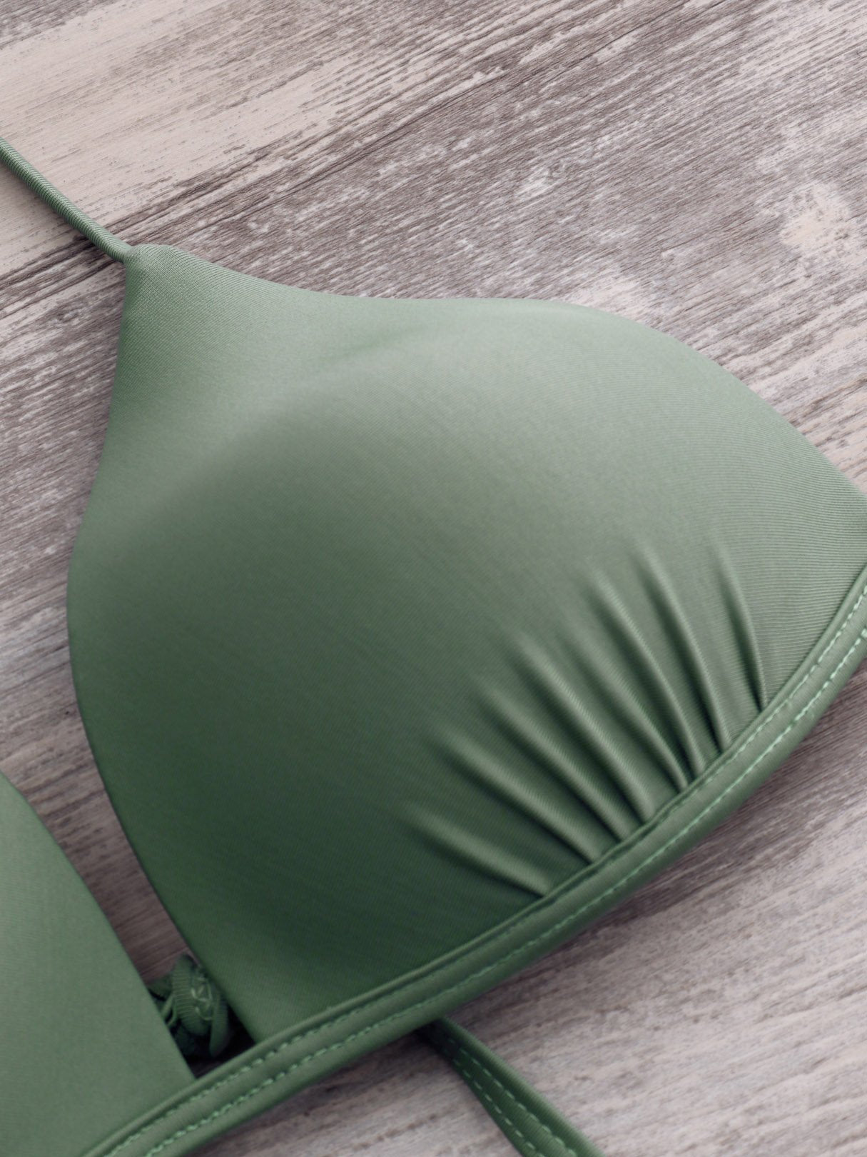 Army Green Halter Sleeveless Floral Print Tie-Up Bikini Sets