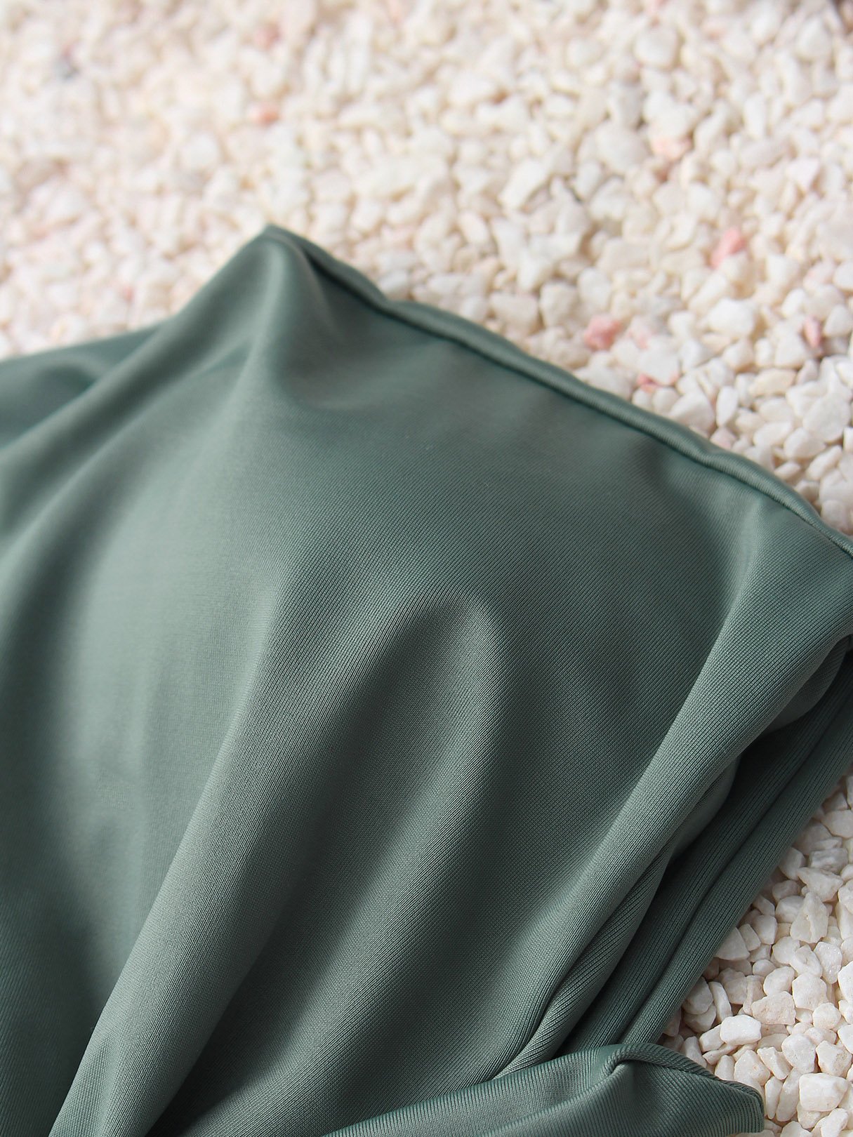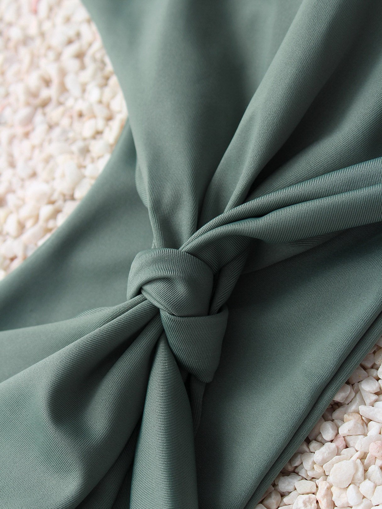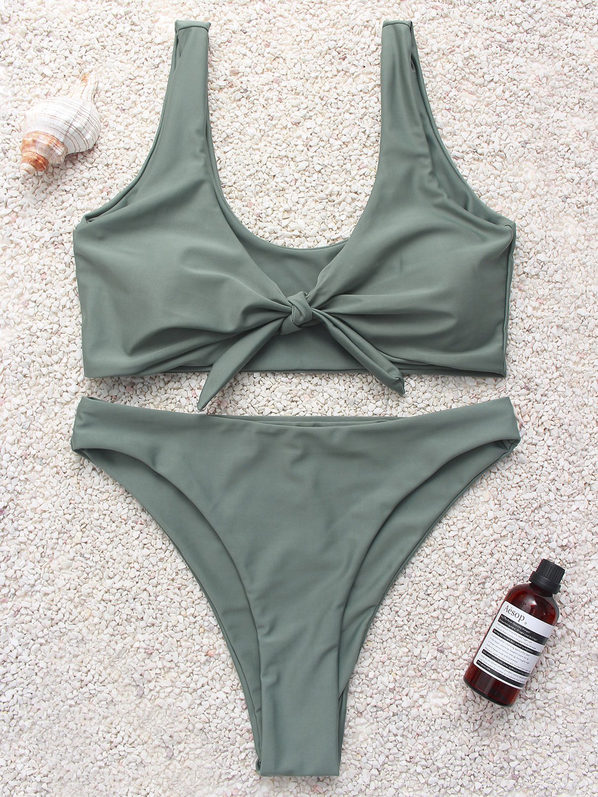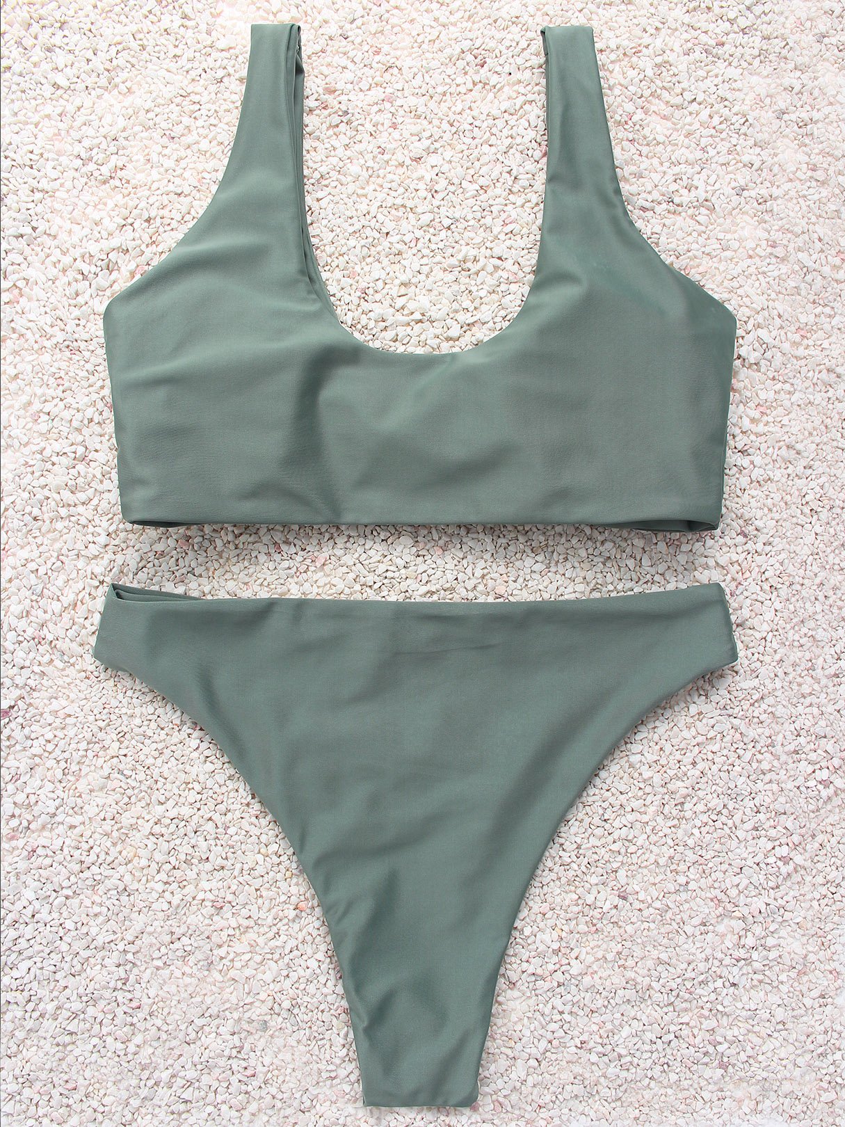 Army Green V-Neck Plain High Waist 2 Piece Bikinis
