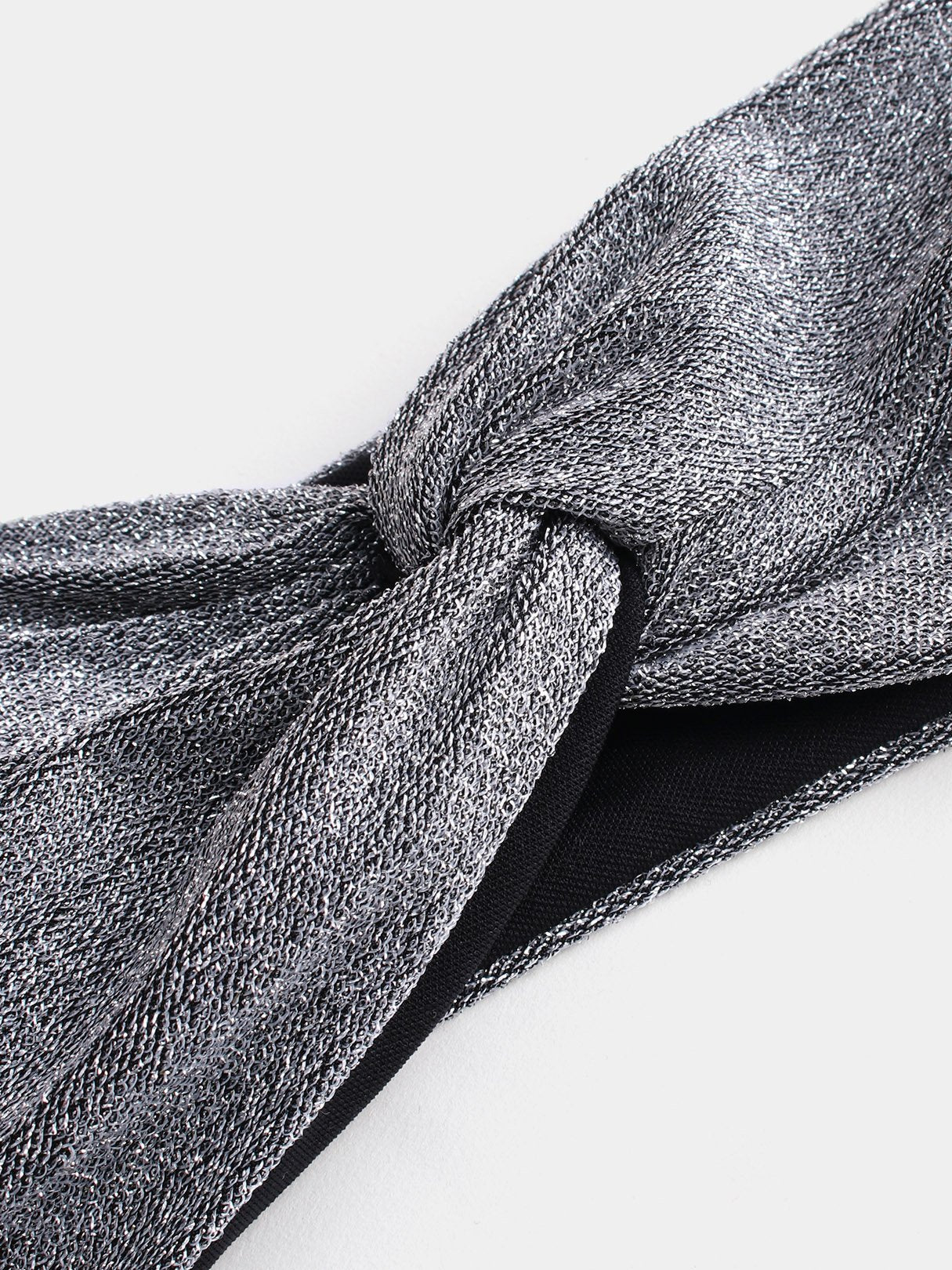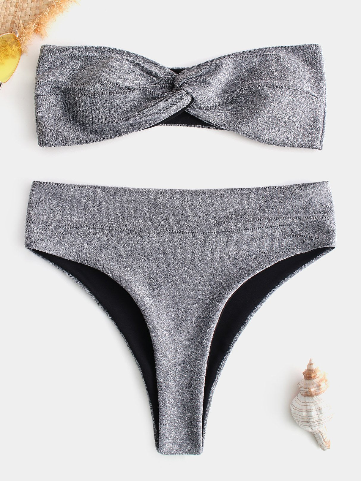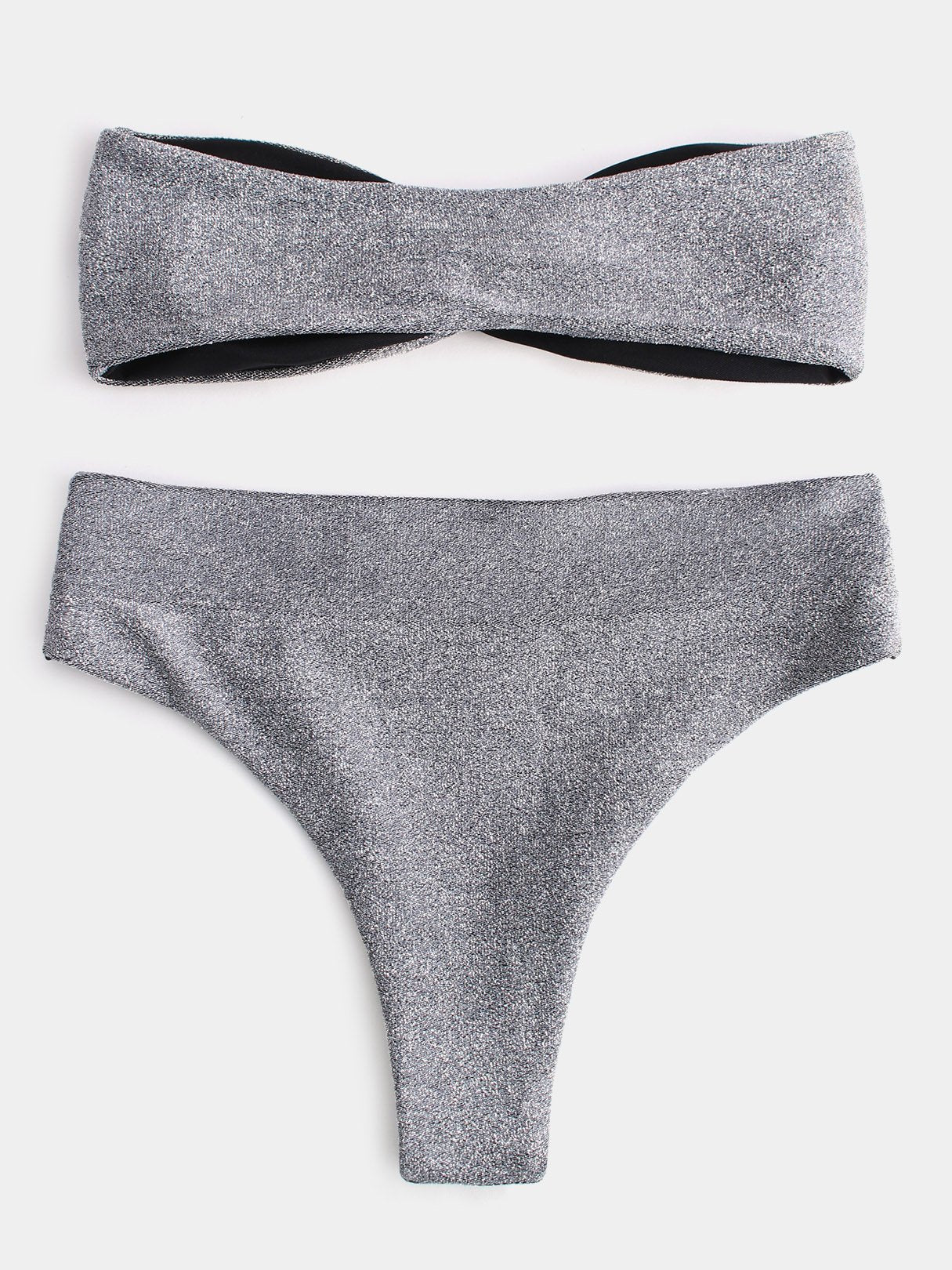 Bateau Plain Crossed Front Twist Sleeveless Grey Bikini Set