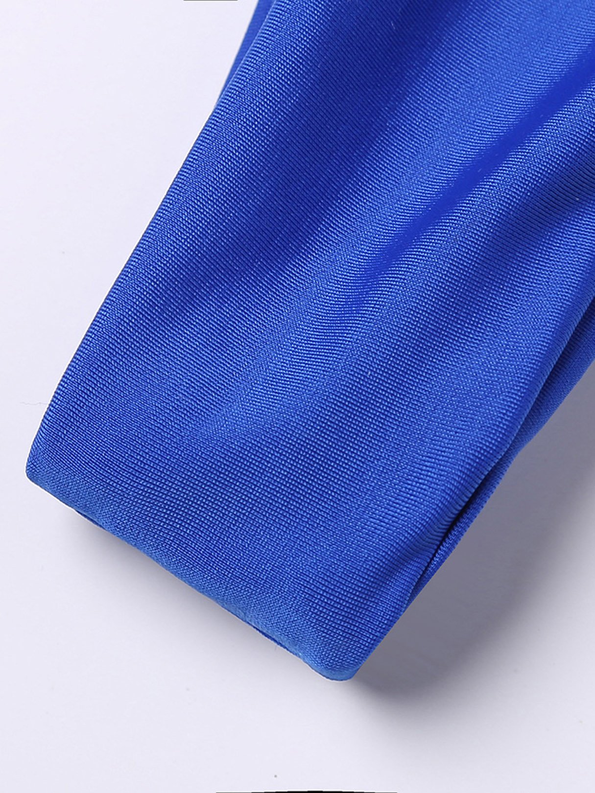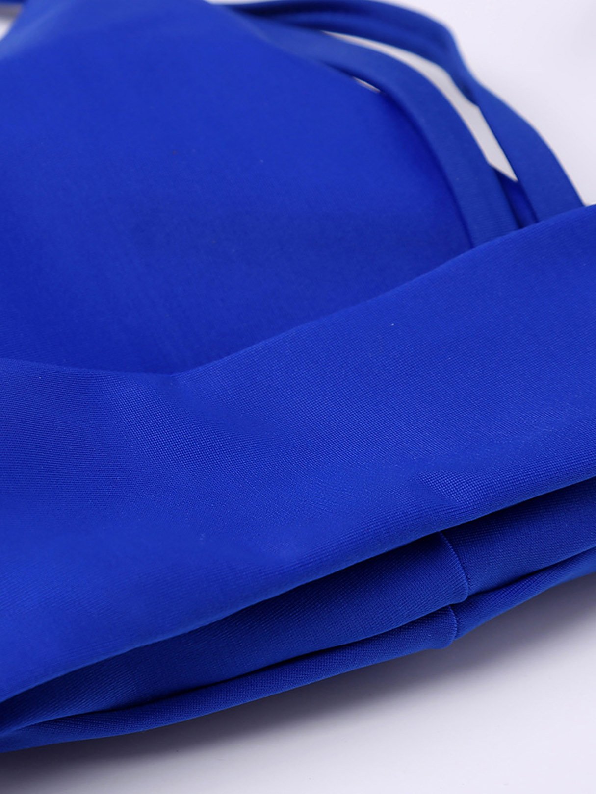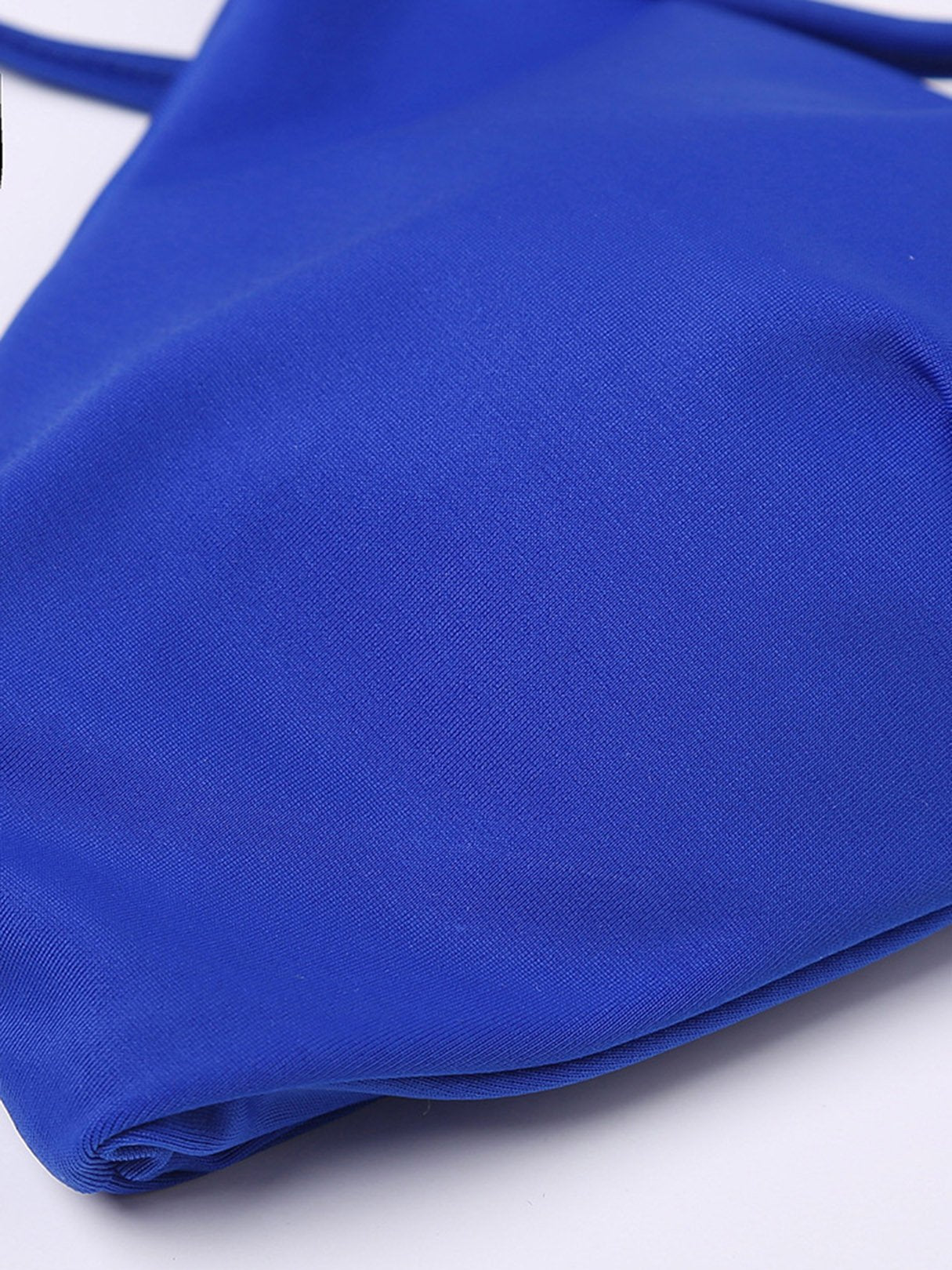 Blue V-Neck Sleeveless Plain Bodycon Bikini Suit