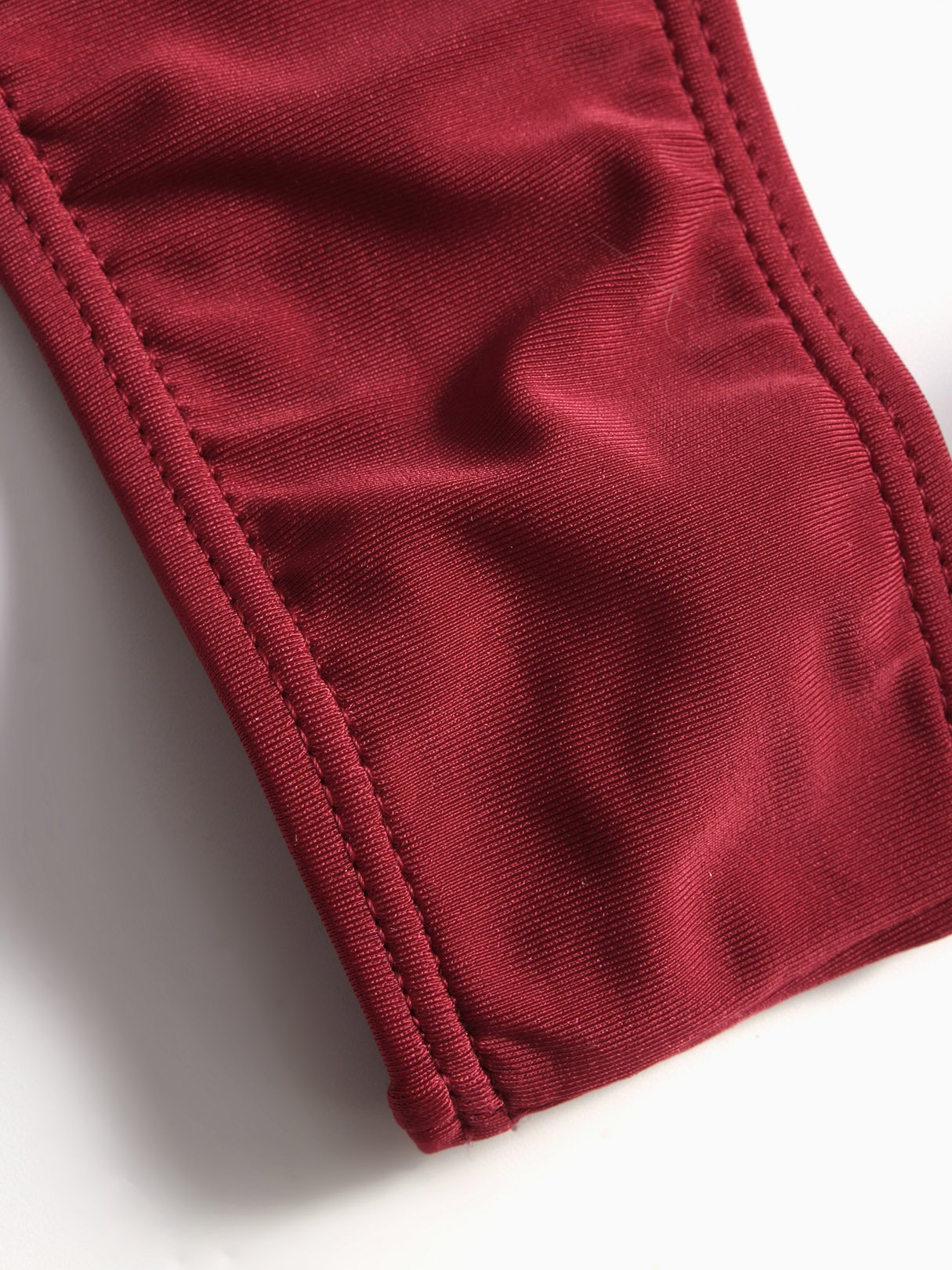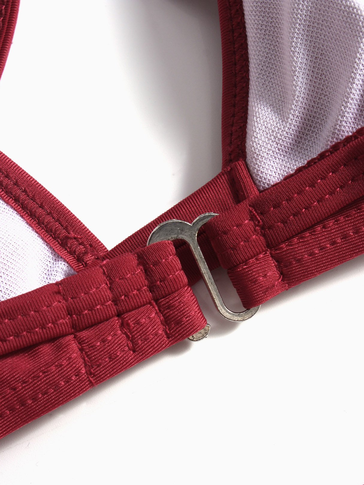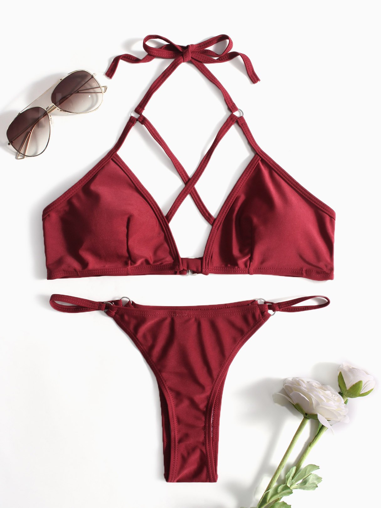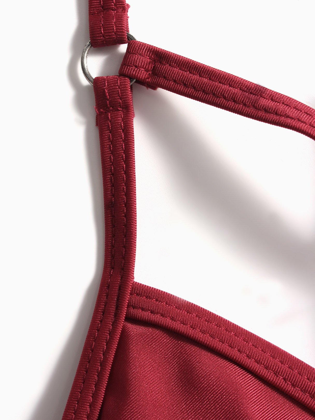 Burgundy V-Neck Sleeveless Crossed Front Backless Partially Lined Bodycon High Waist Two Piece Bikinis