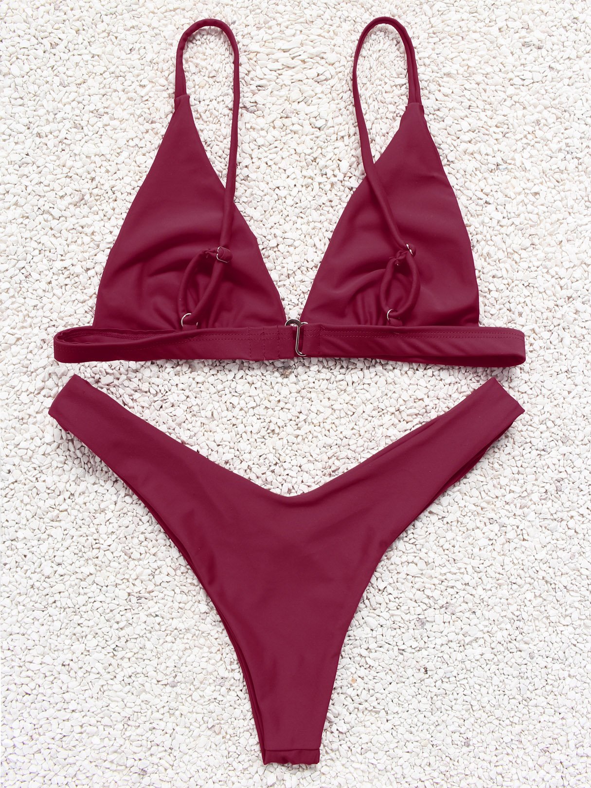 Burgundy V-Neck Sleeveless Plain Two Piece Bikini