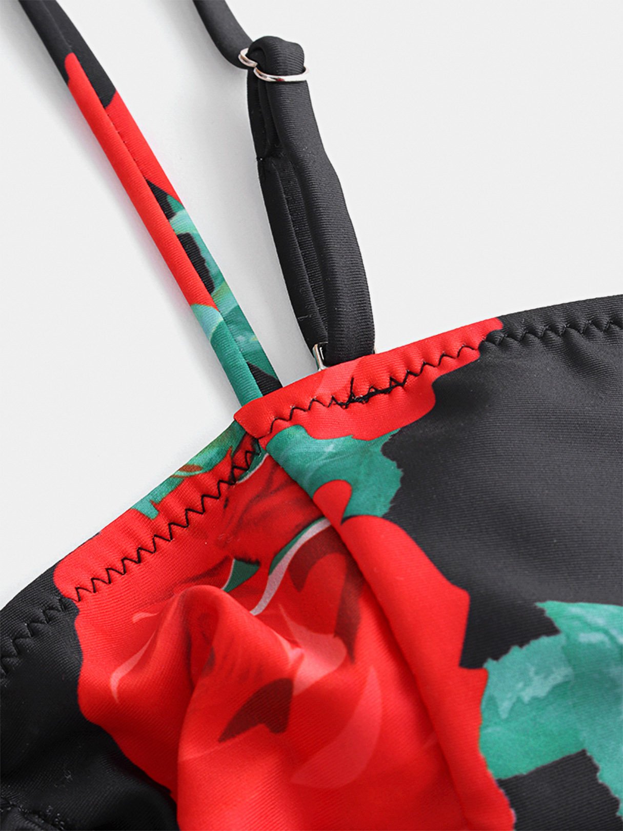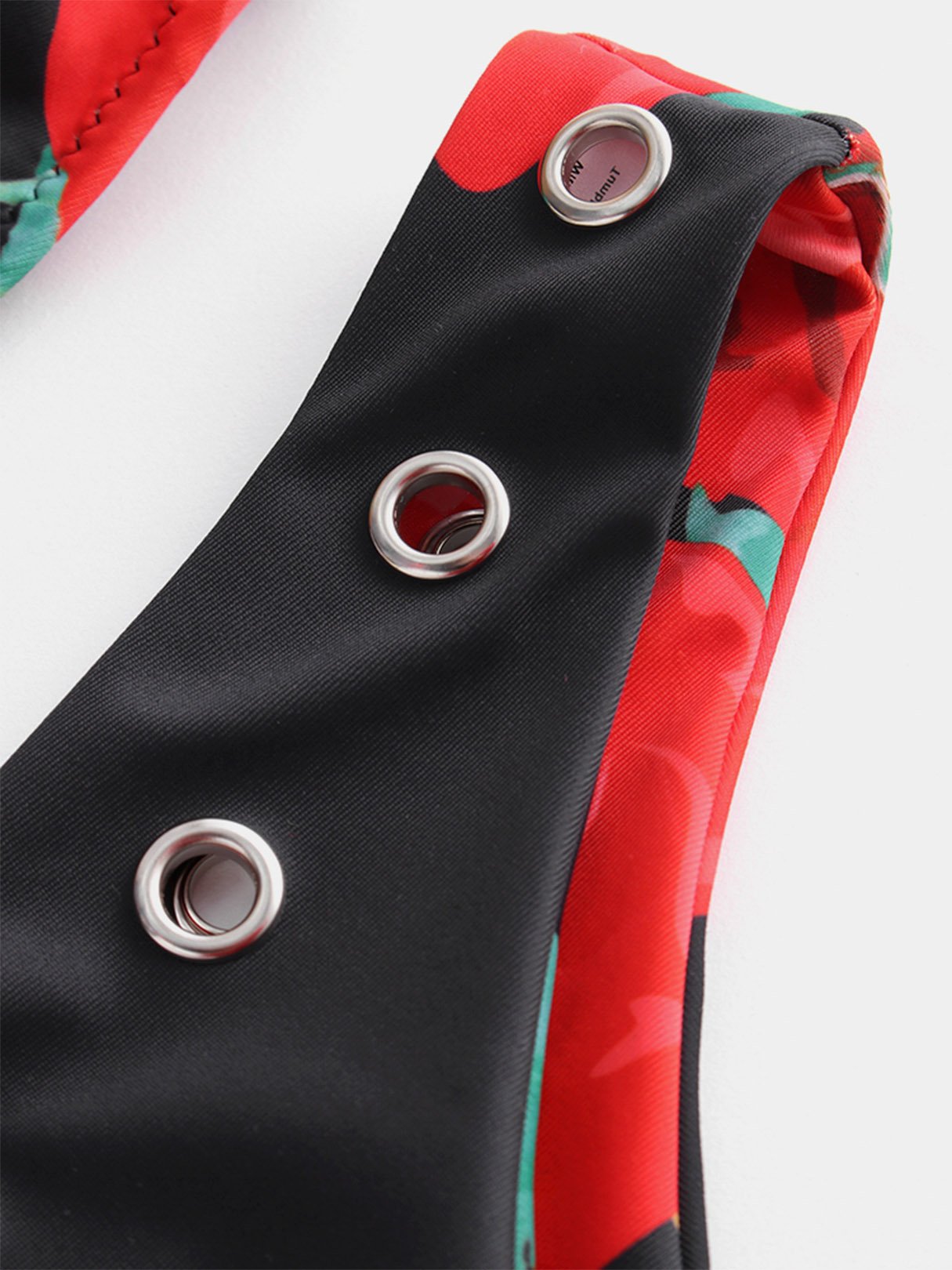 Floral Print Backless Metallic Buckle Sleeveless High-Waisted Bikini Set