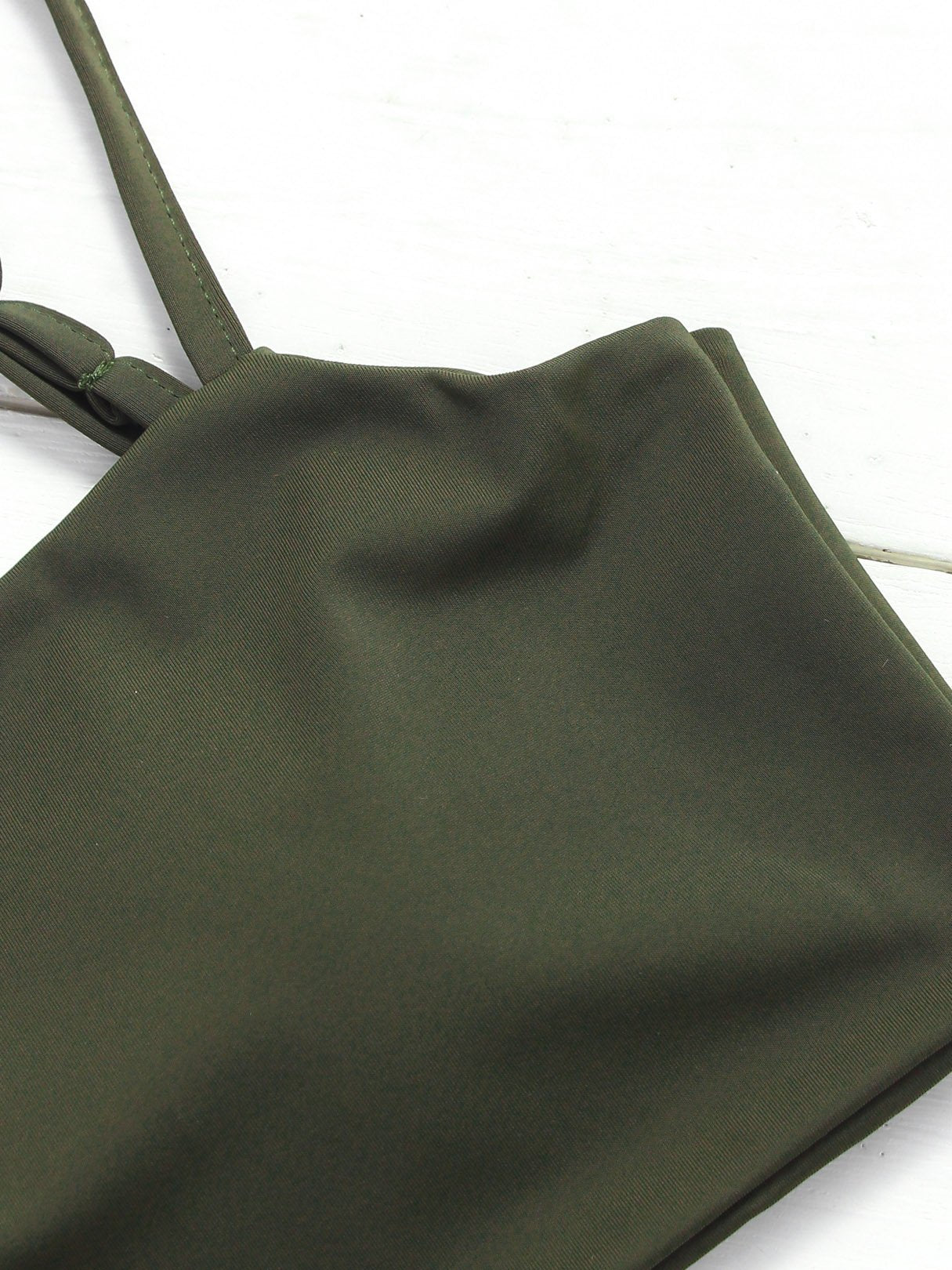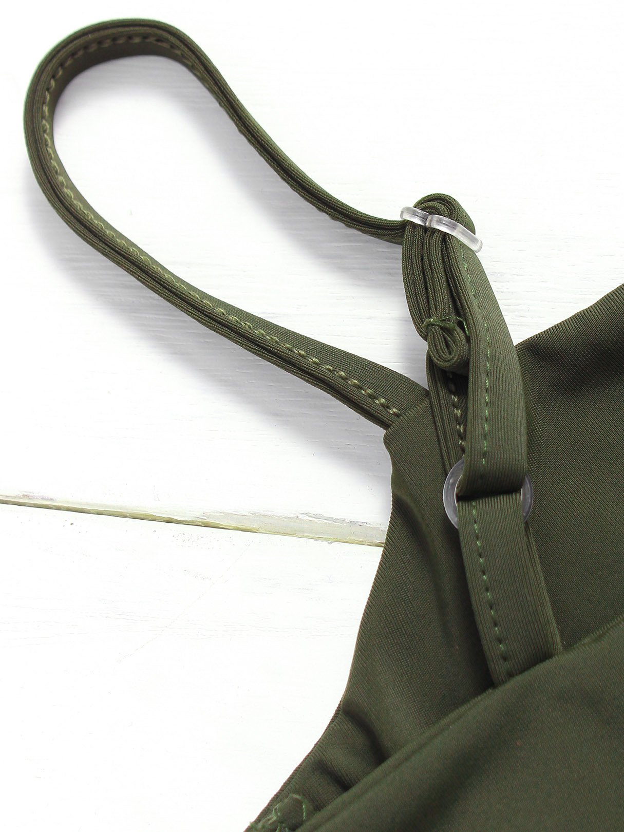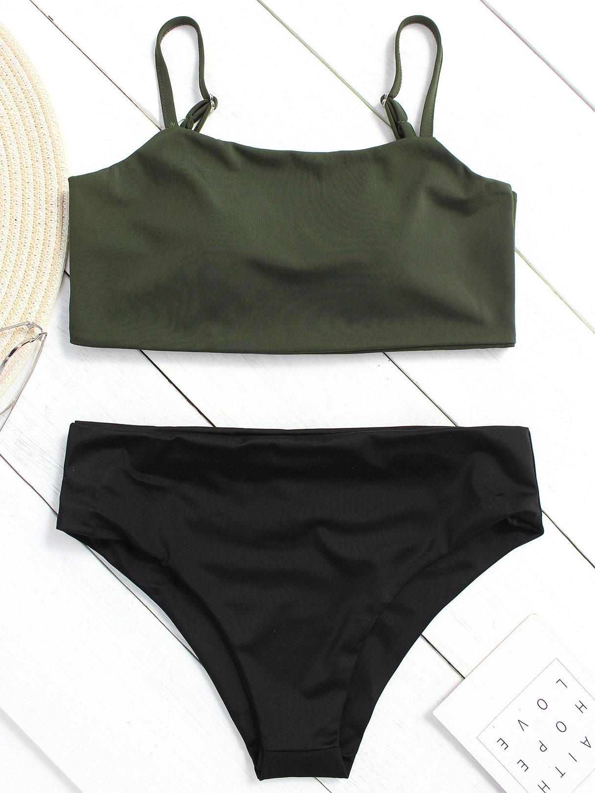 Green Sleeveless Square Neck High-waist Bikinis Set