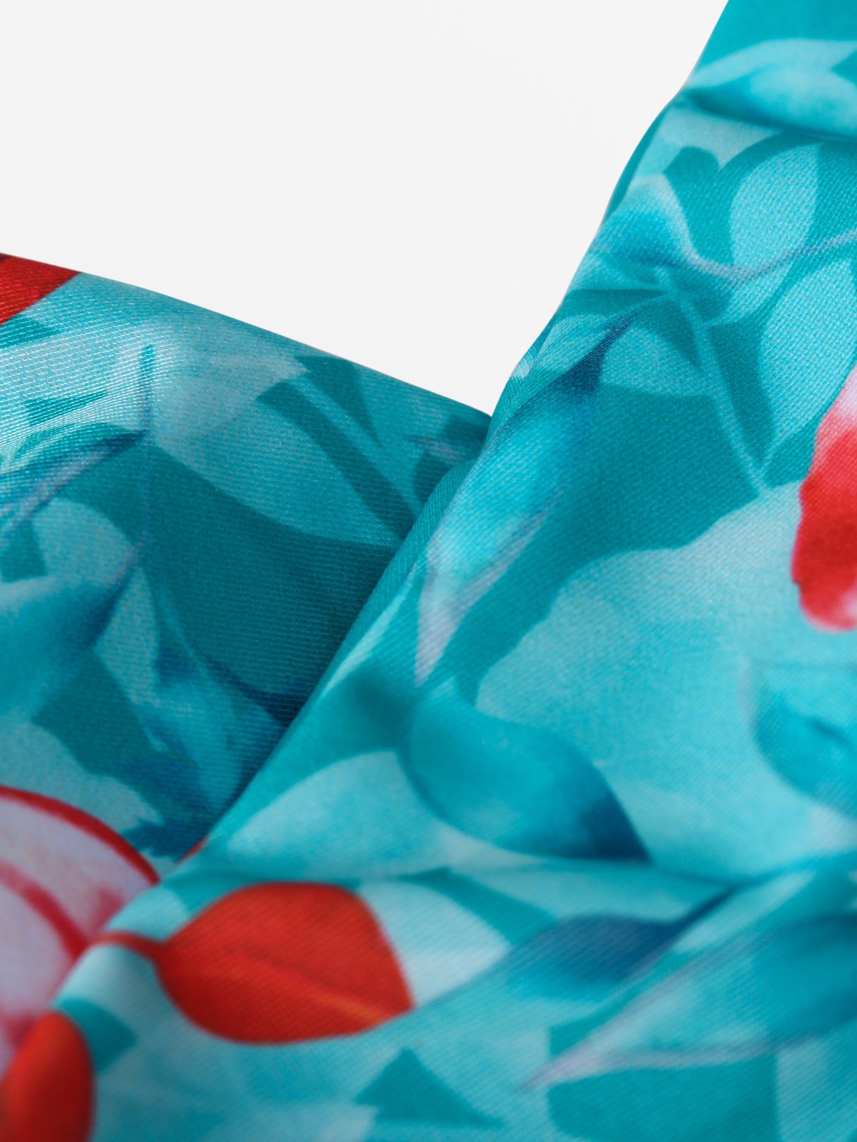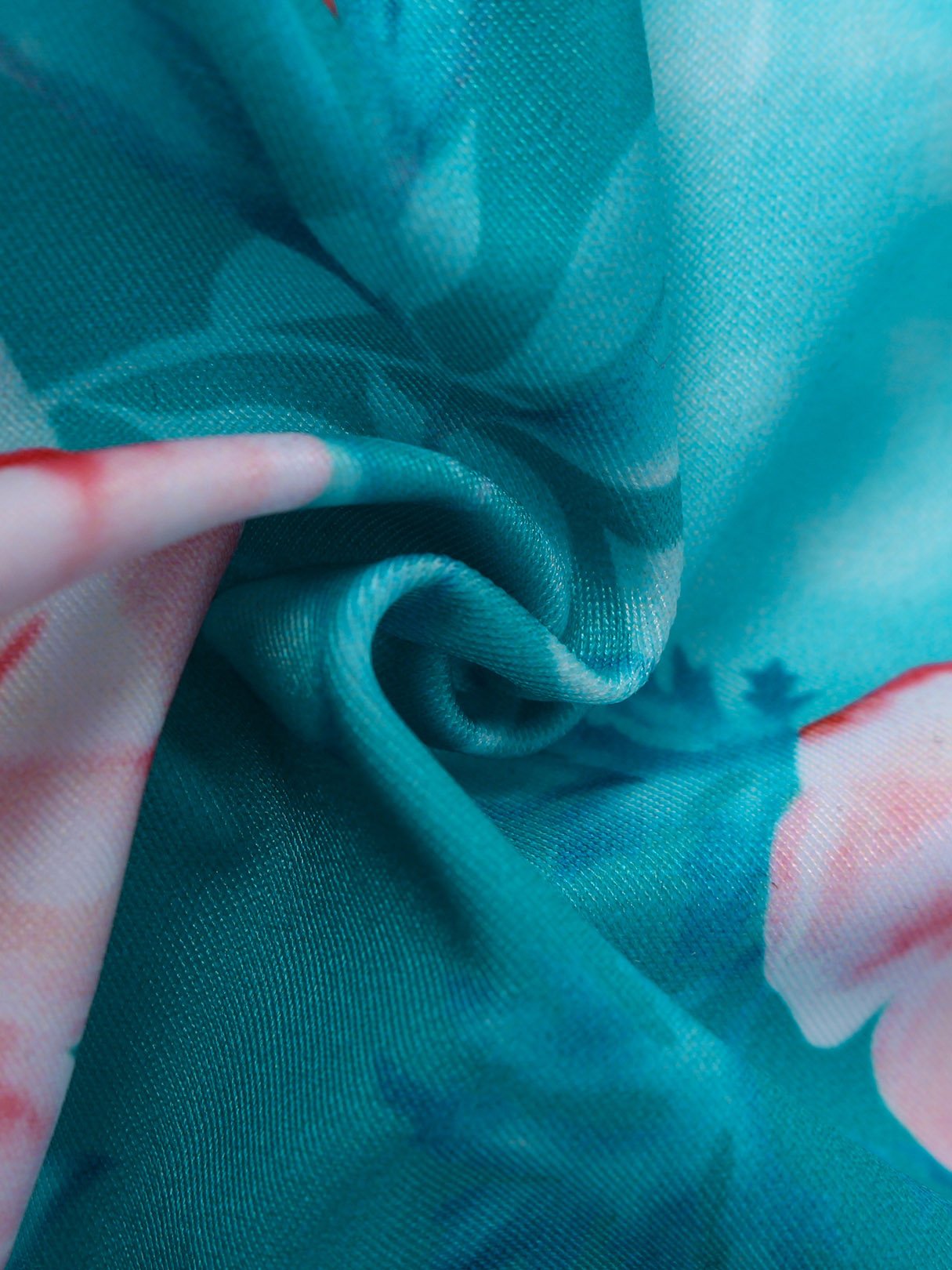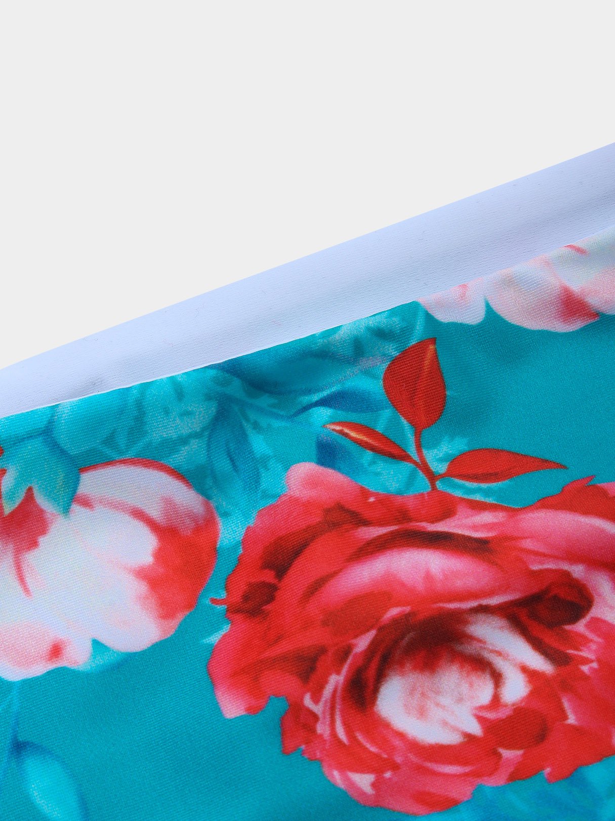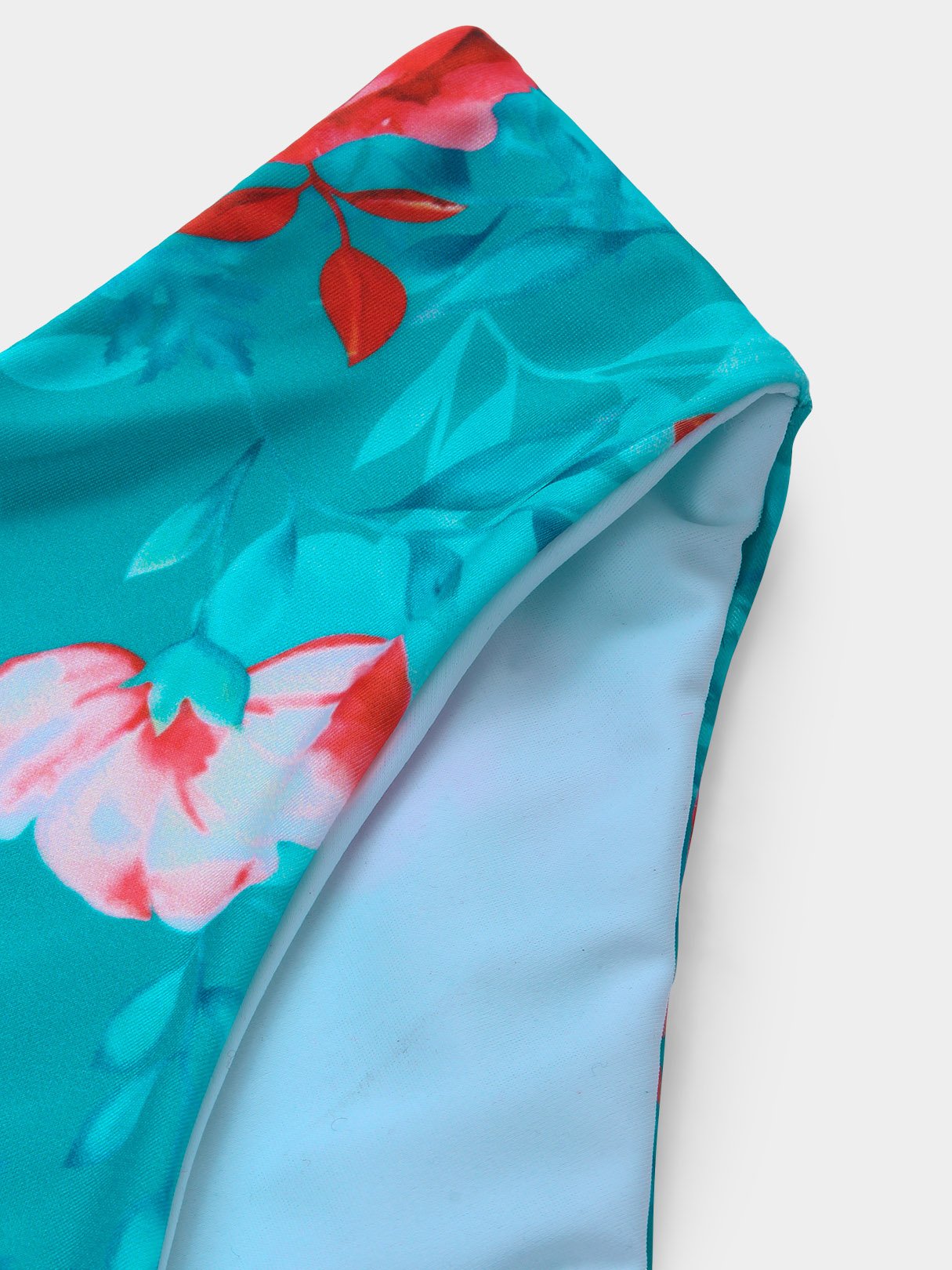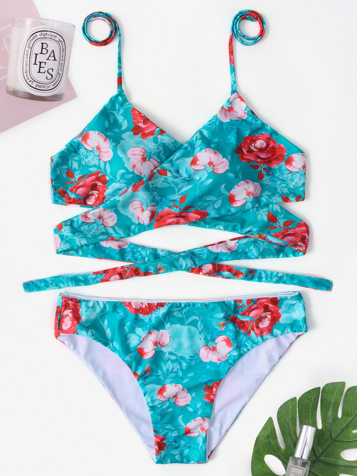 Green V-Neck Sleeveless Floral Print Lace-Up Two Piece Bikinis