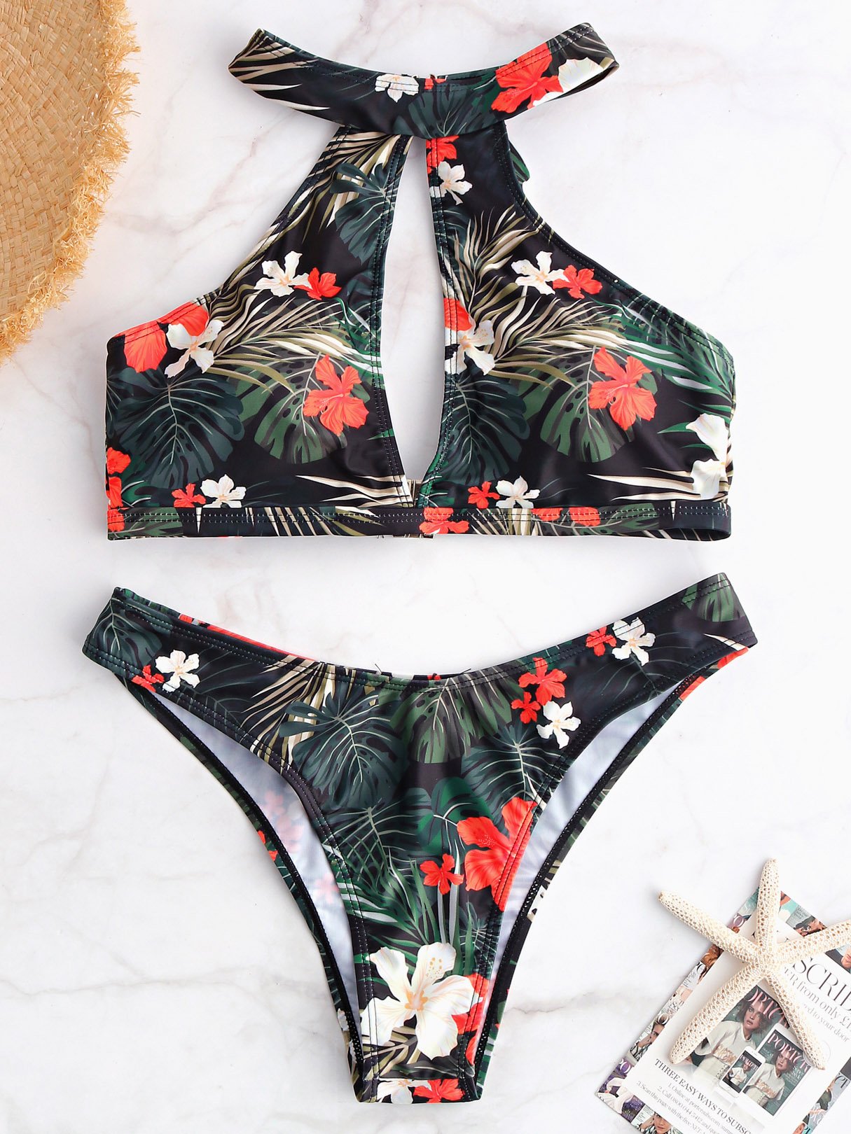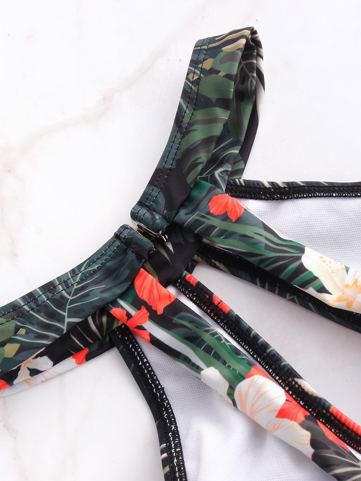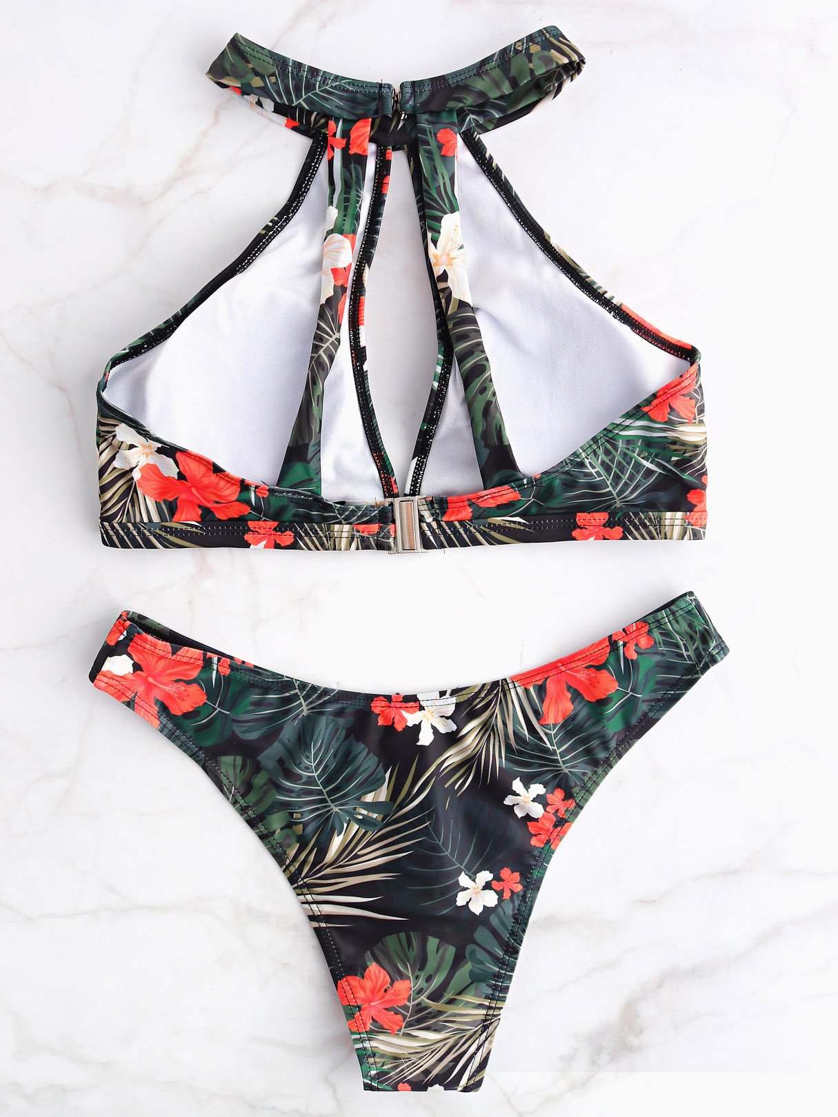 Halter Sleeveless Floral Print Bikini Set Swimwear
