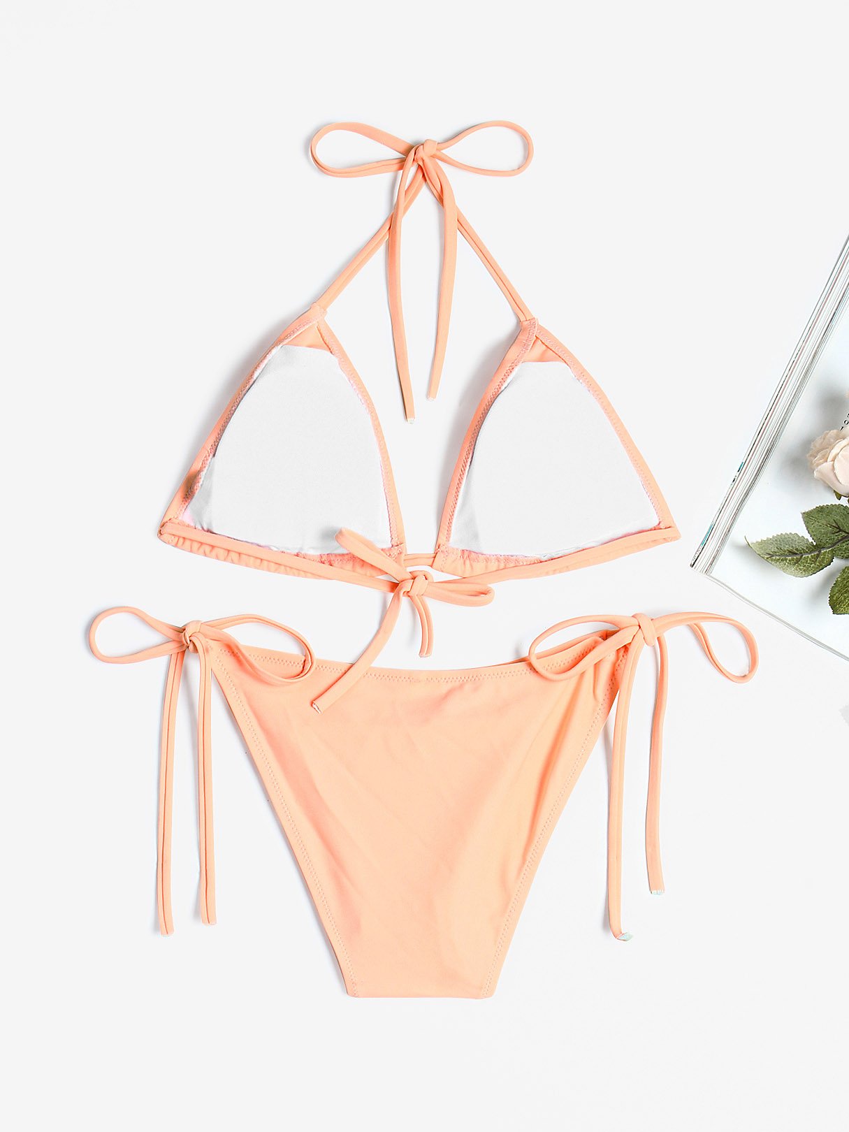 Pink Halter Sleeveless Lace-Up Wireless Bikinis