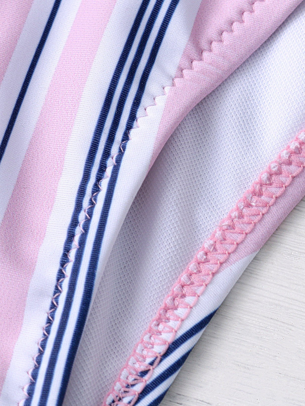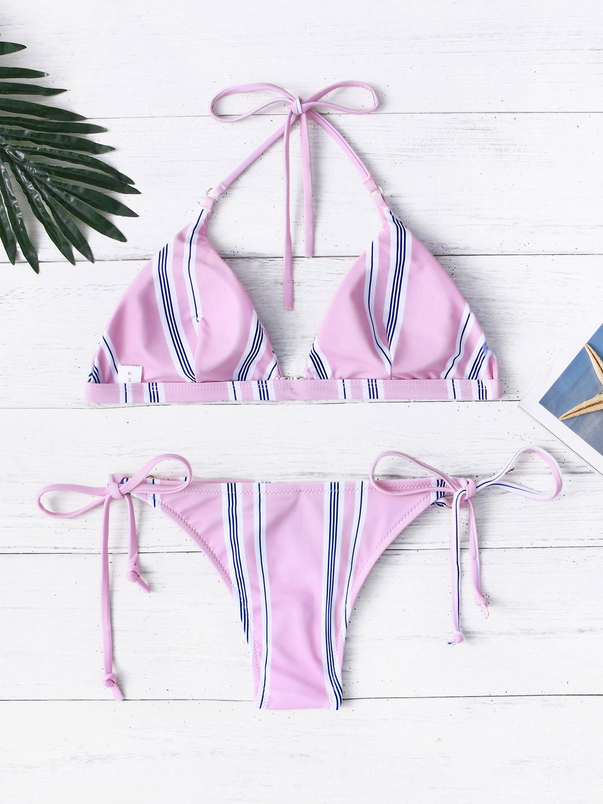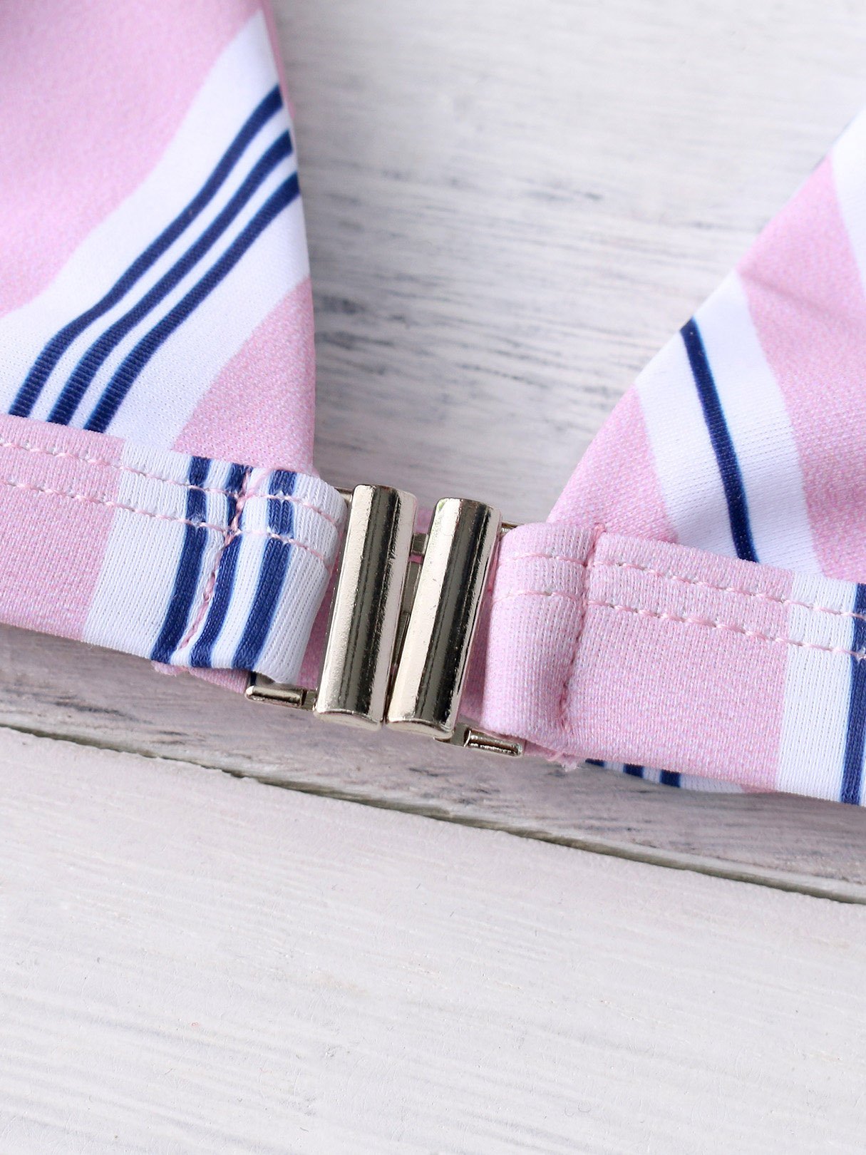 Pink Halter Sleeveless Stripe Two Piece Bikinis