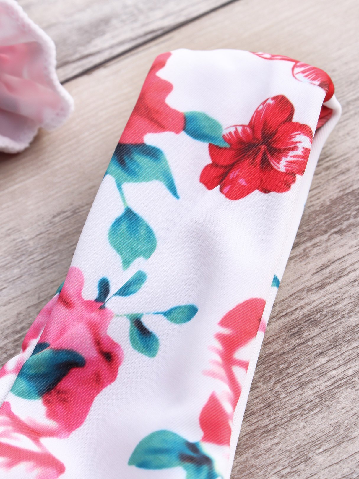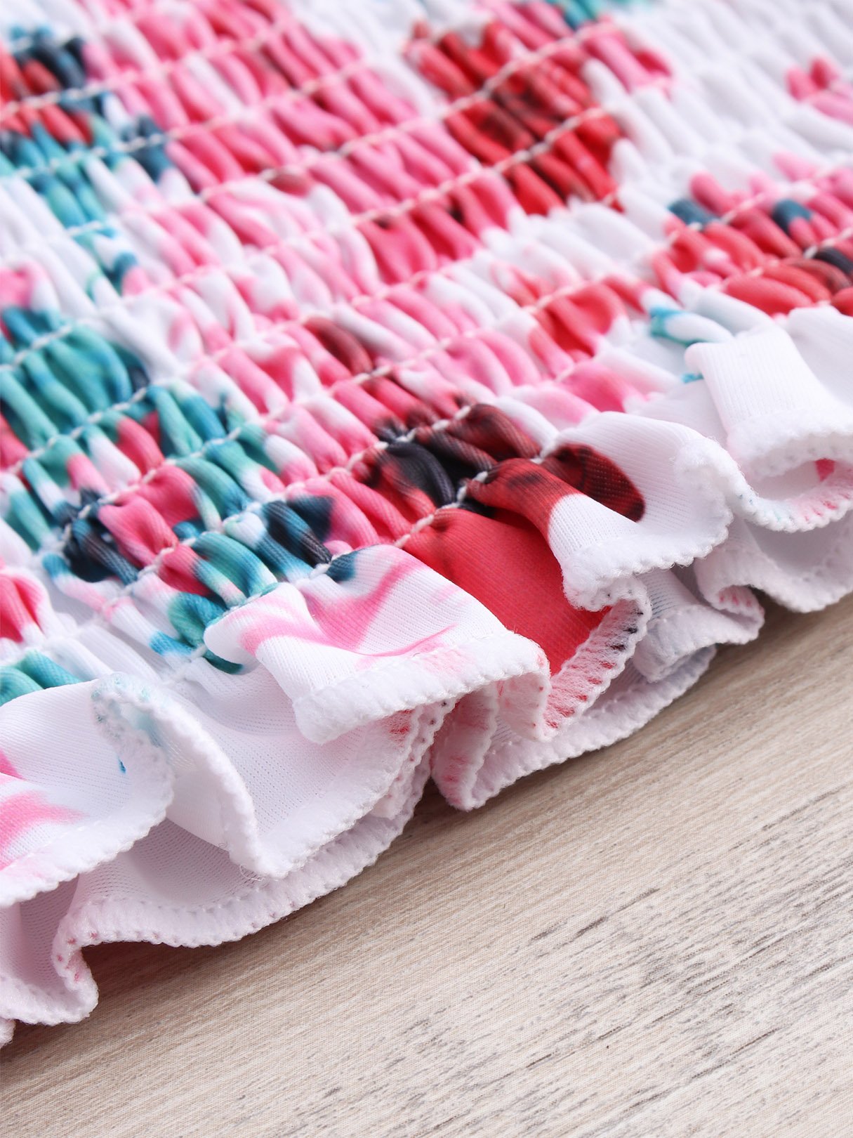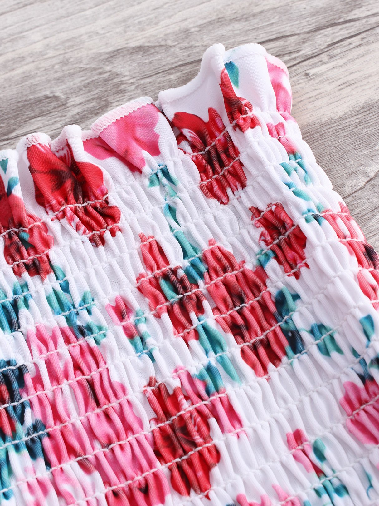 Pink Random Floral Print Elastic Strapless Sleeveless Bikinis