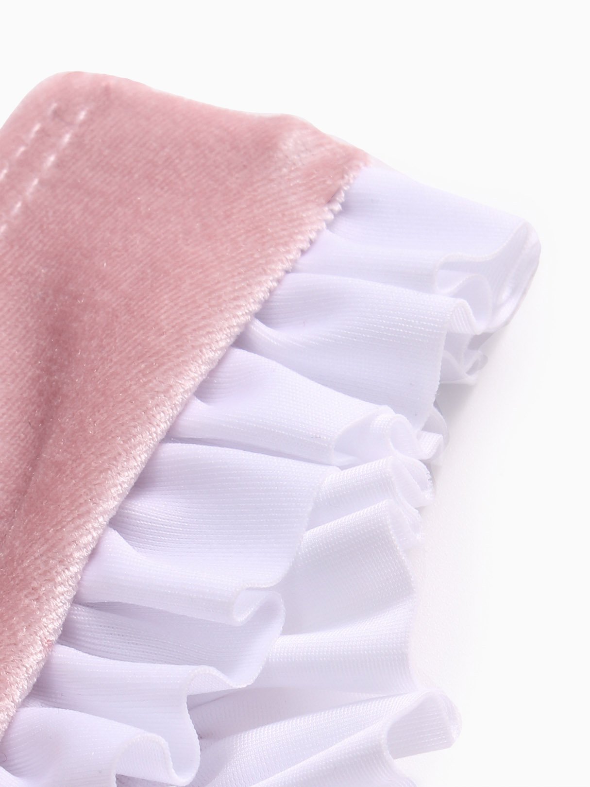Pink Strapless Off The Shoulder Sleeveless Plain Tie-Up Ruffle Trim Ruffle Hem Two Piece Bikinis
