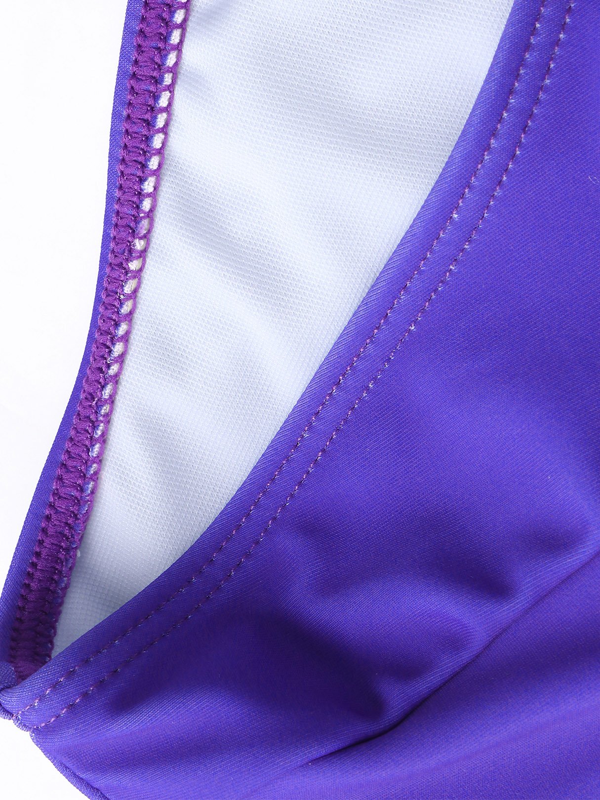 Purple V-Neck Sleeveless Floral Print Criss-Cross Bikini Swimsuit