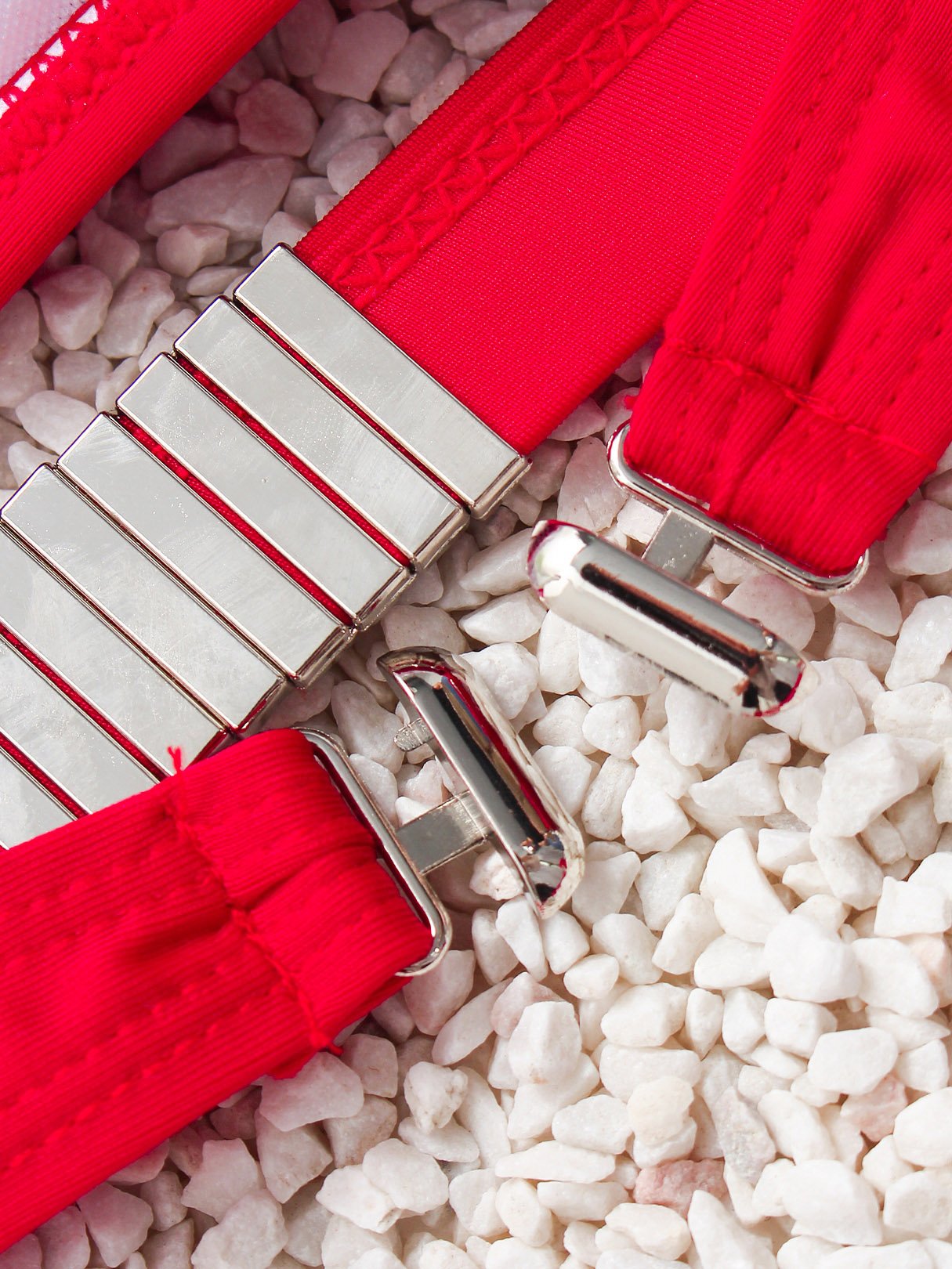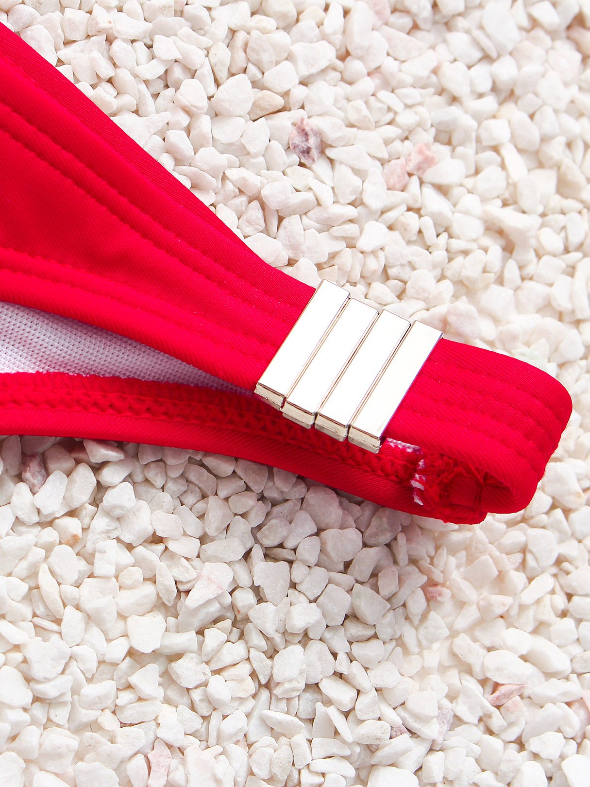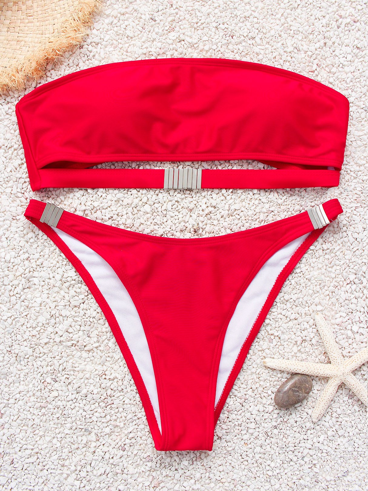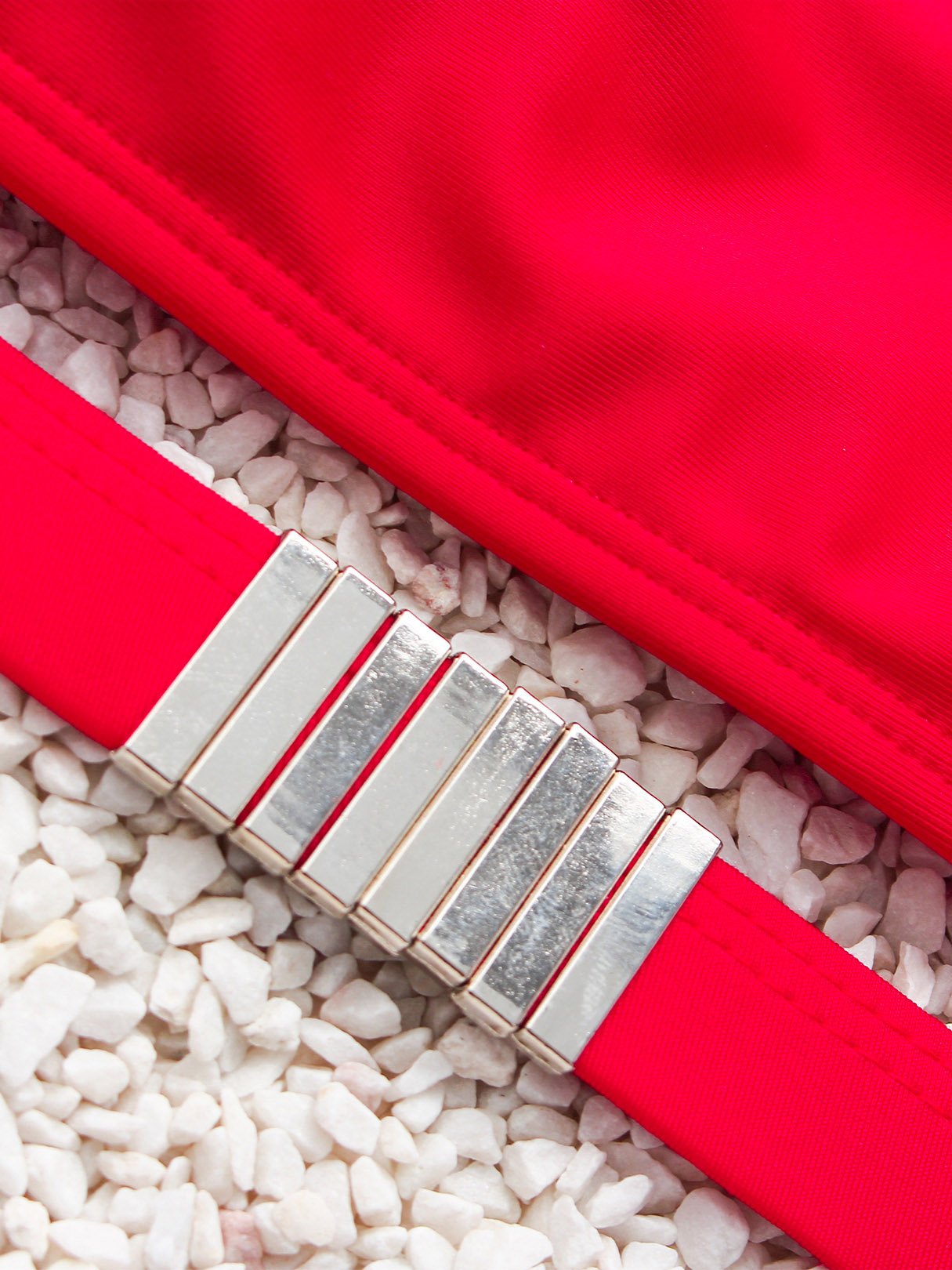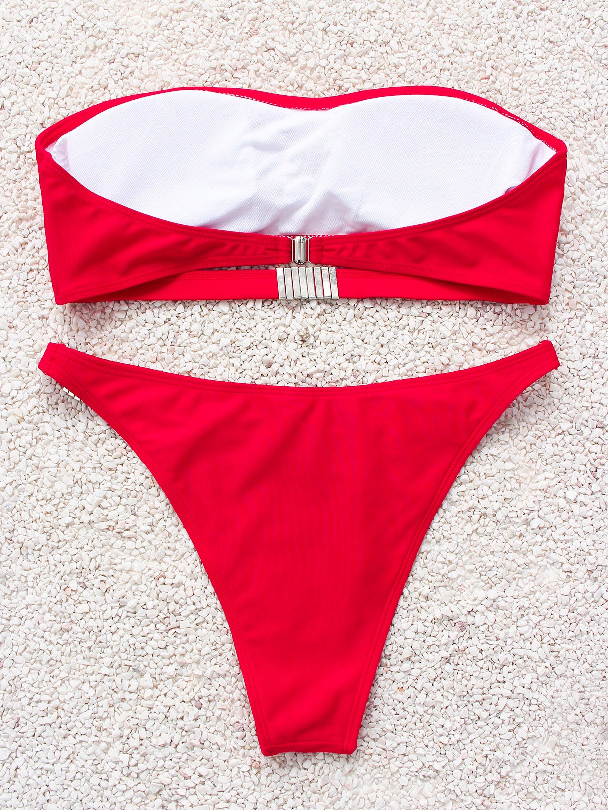 Red Off The Shoulder High Waist 2 Piece Bikinis