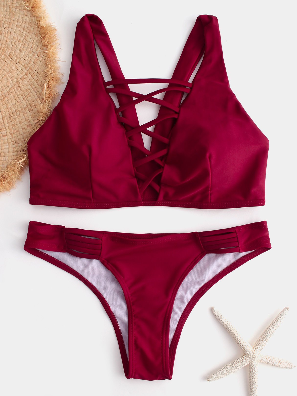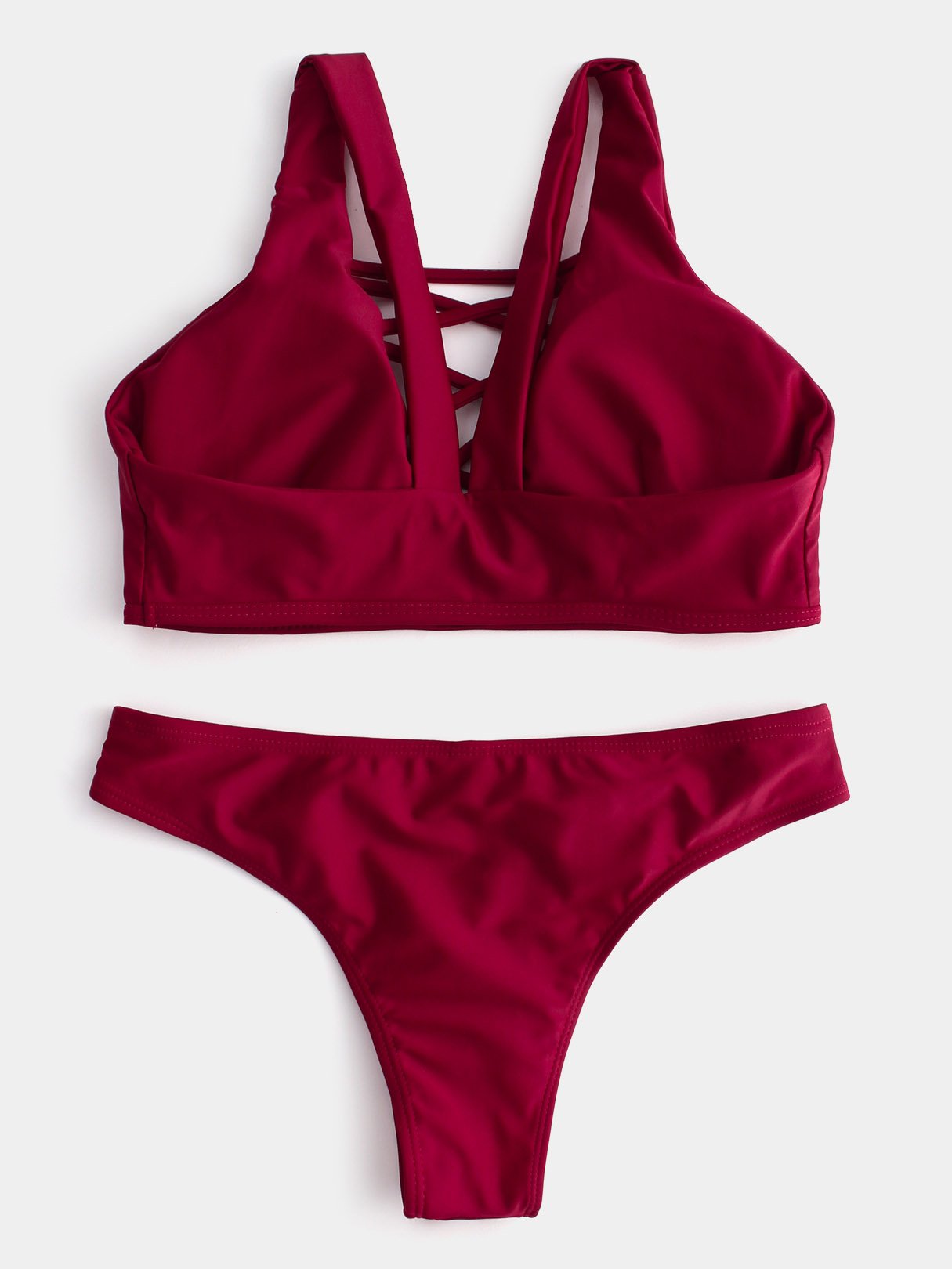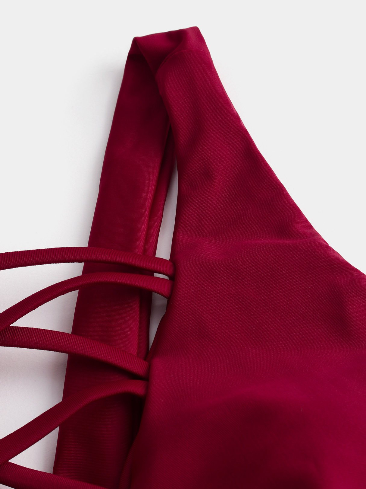 Red V-Neck Sleeveless Backless Criss-Cross Bikinis