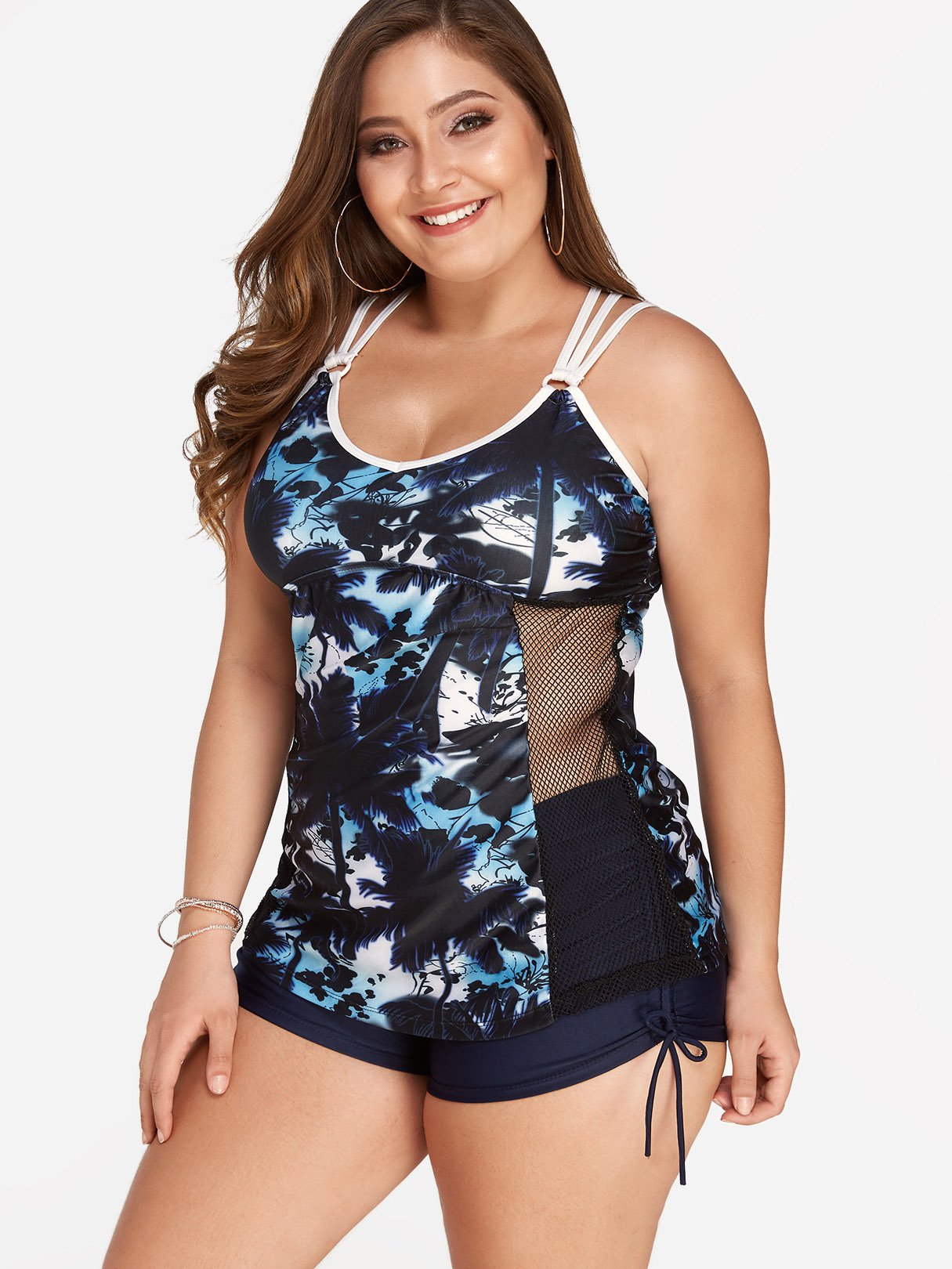 Scoop Neck Hollow Sleeveless Black & Purple Plus Size Swimwear - Black & Purple / XL is backordered and will ship as soon as it is back in stock.