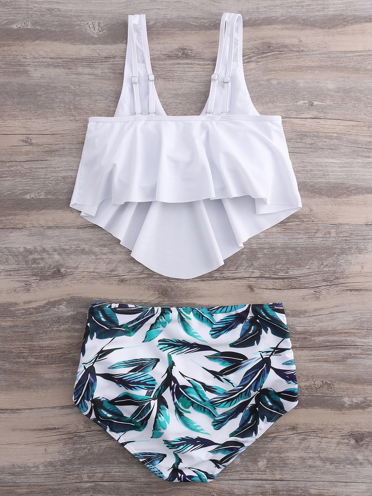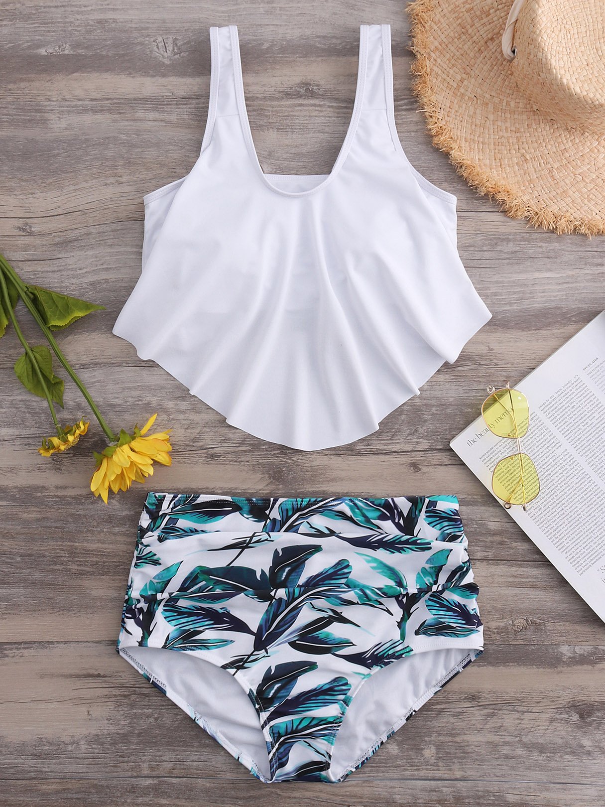 Scoop Neck Sleeveless Printed Backless Irregular Hem Bikinis