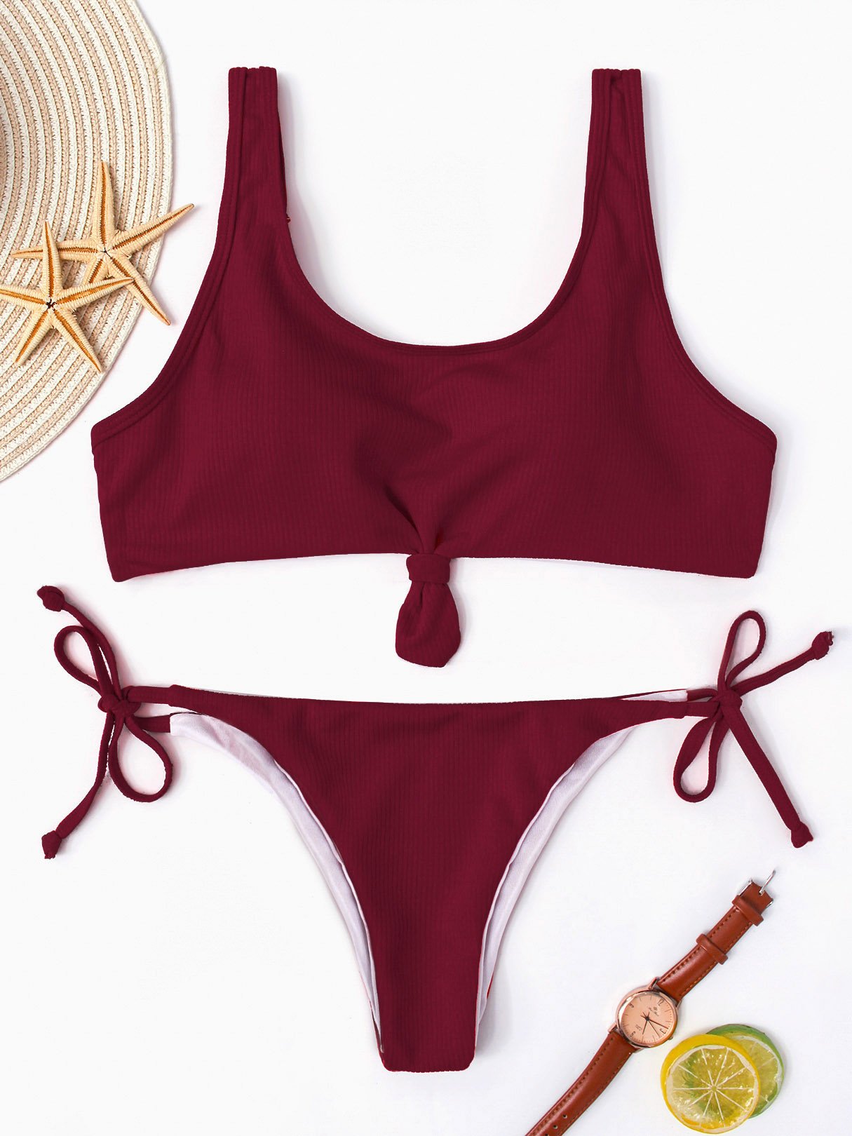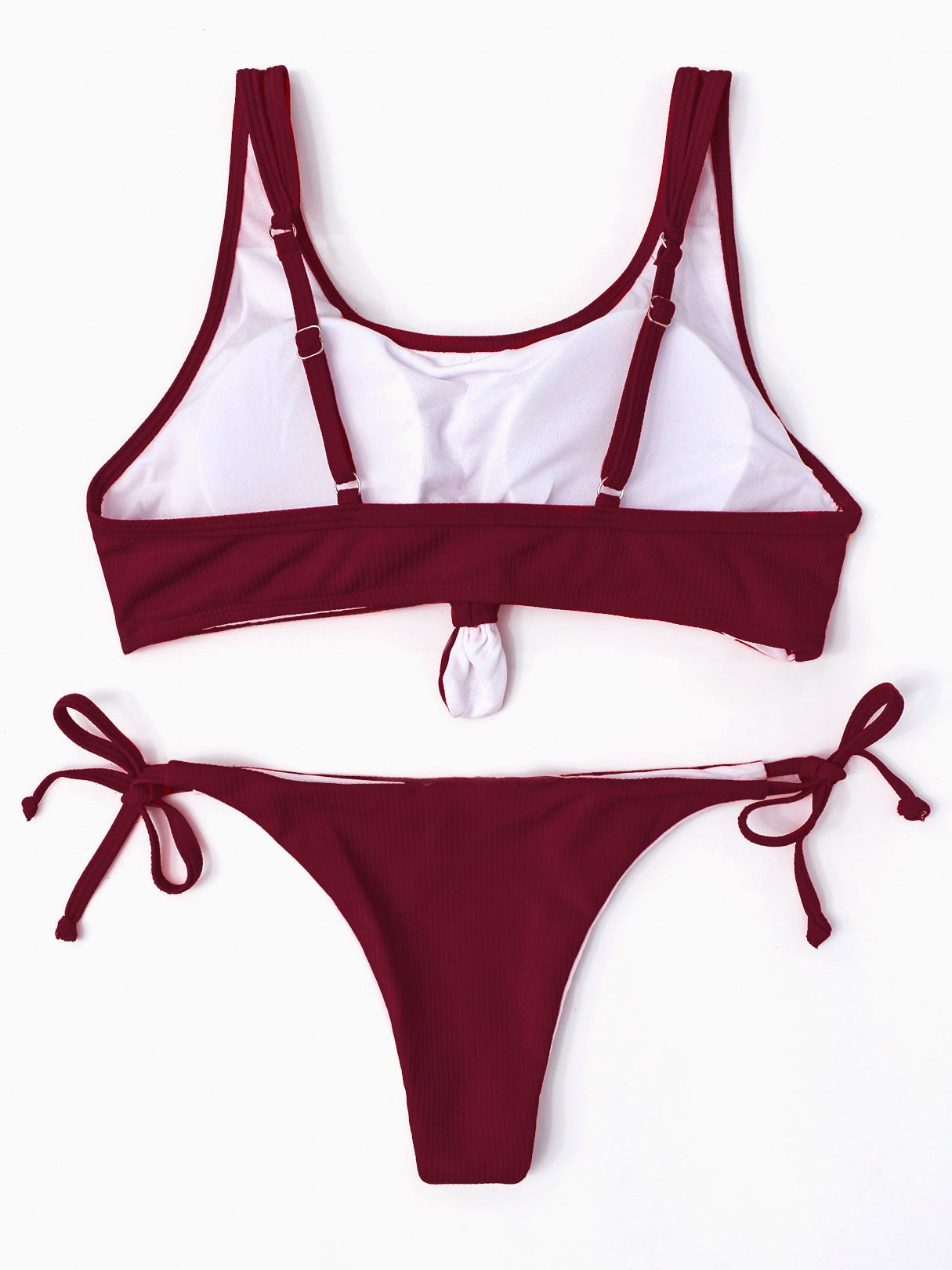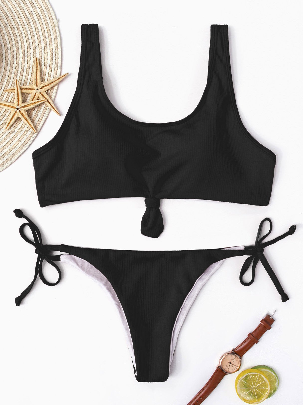 Sleeveless Plain Spaghetti Strap Bikini Set