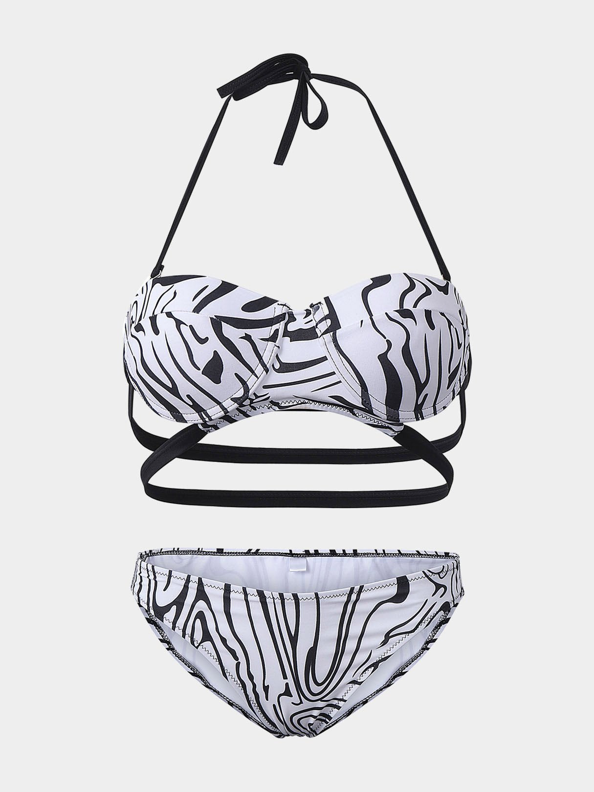 Strapless Off The Shoulder Sleeveless Stripe Bikinis