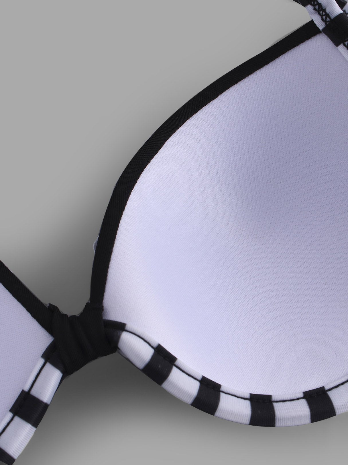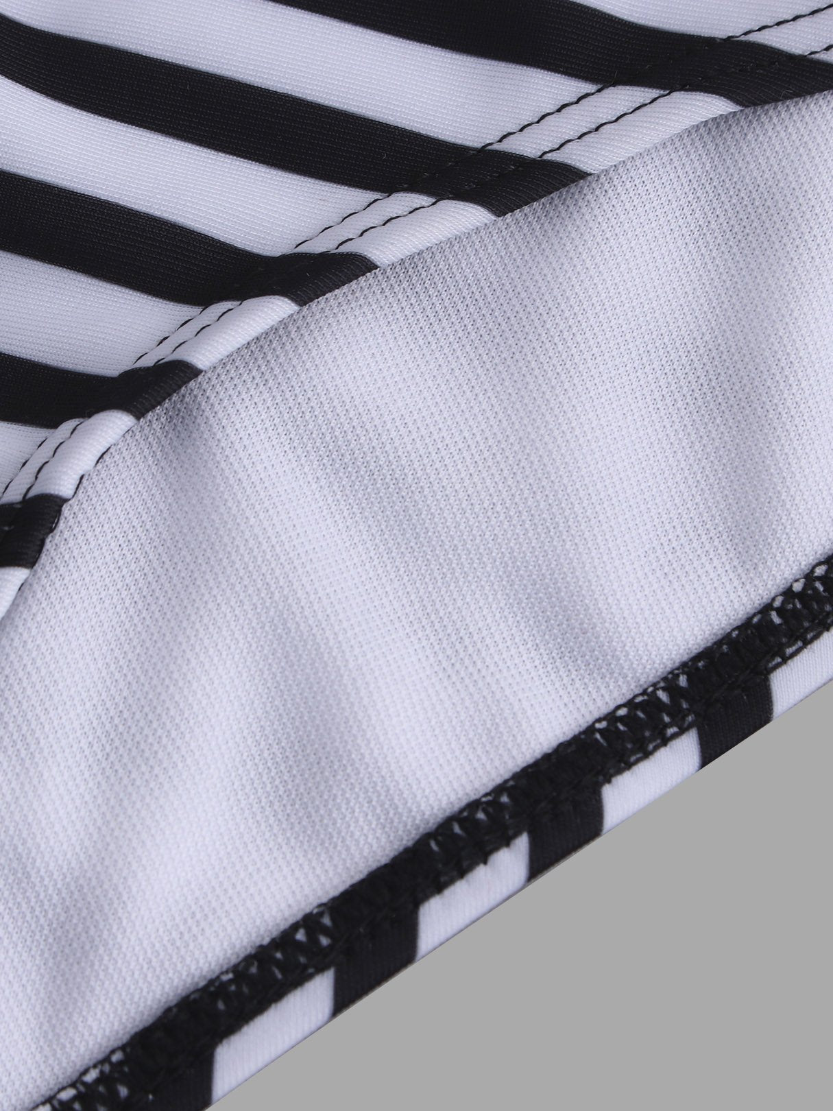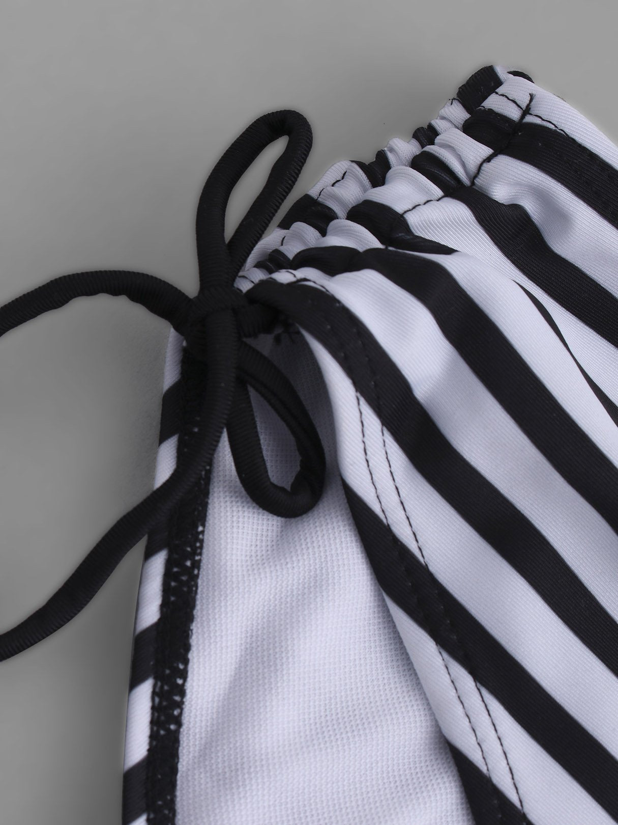 Strapless Stripe Backless Self-Tie Sleeveless Black Bikinis