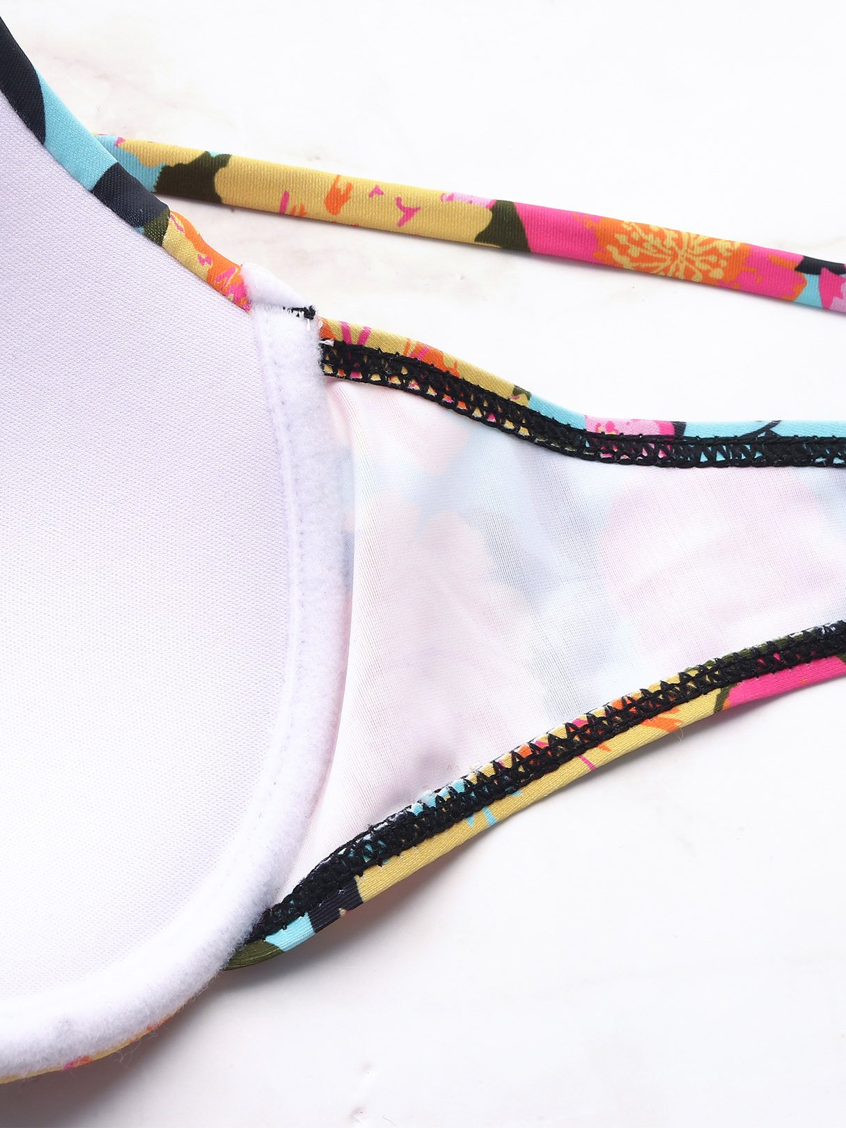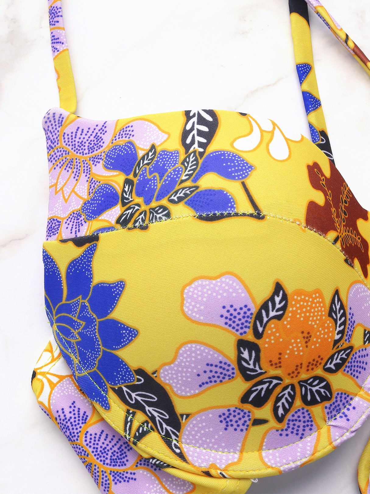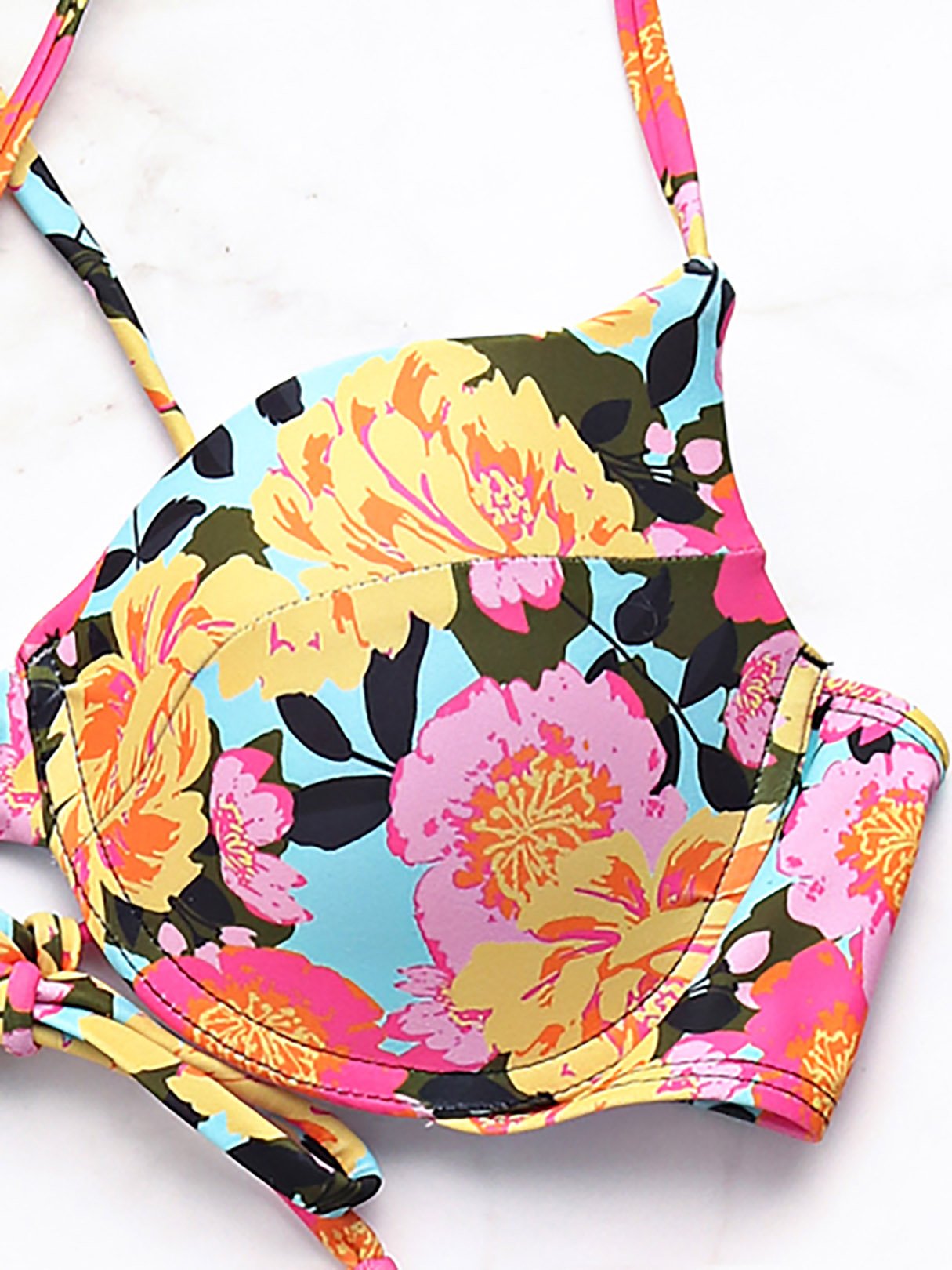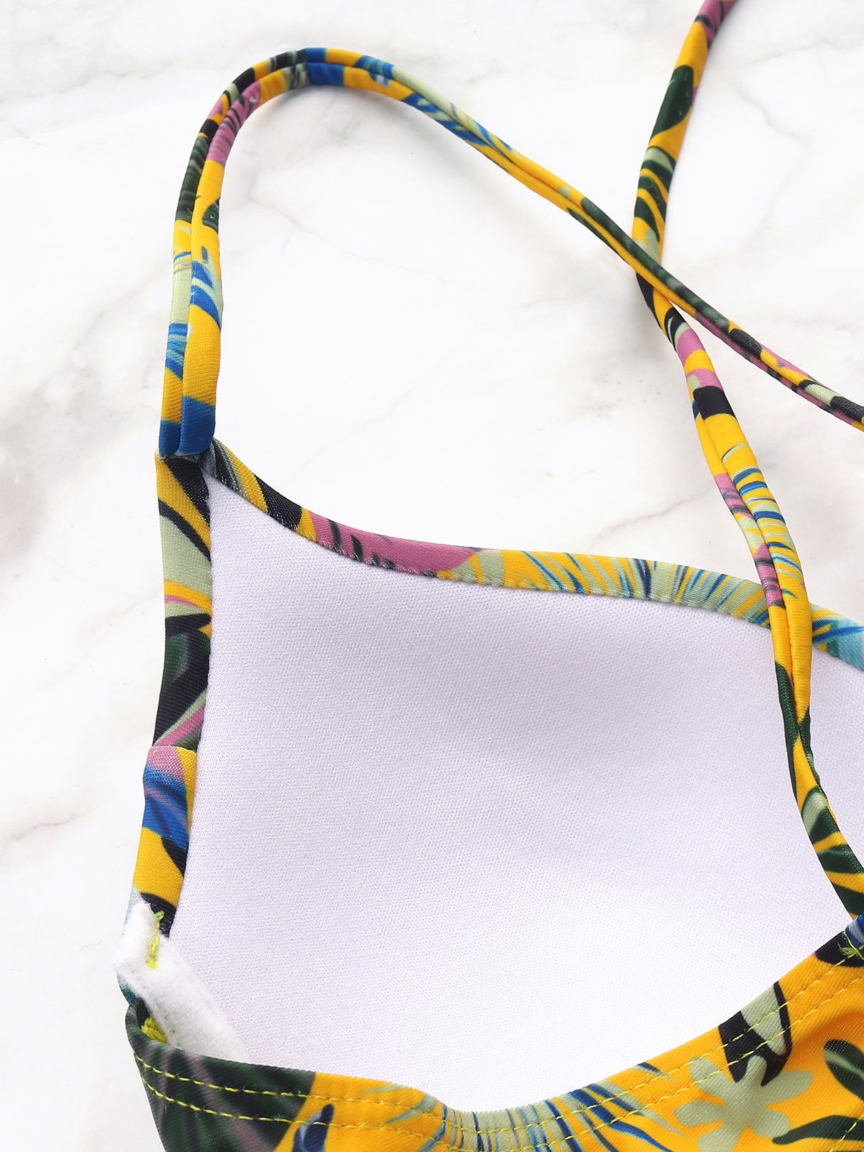 V-Neck Sleeveless Floral Print Criss-Cross Bikini Set Swimwear