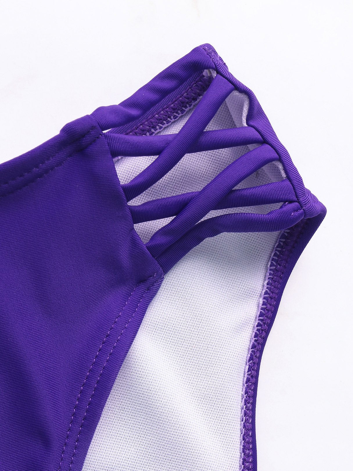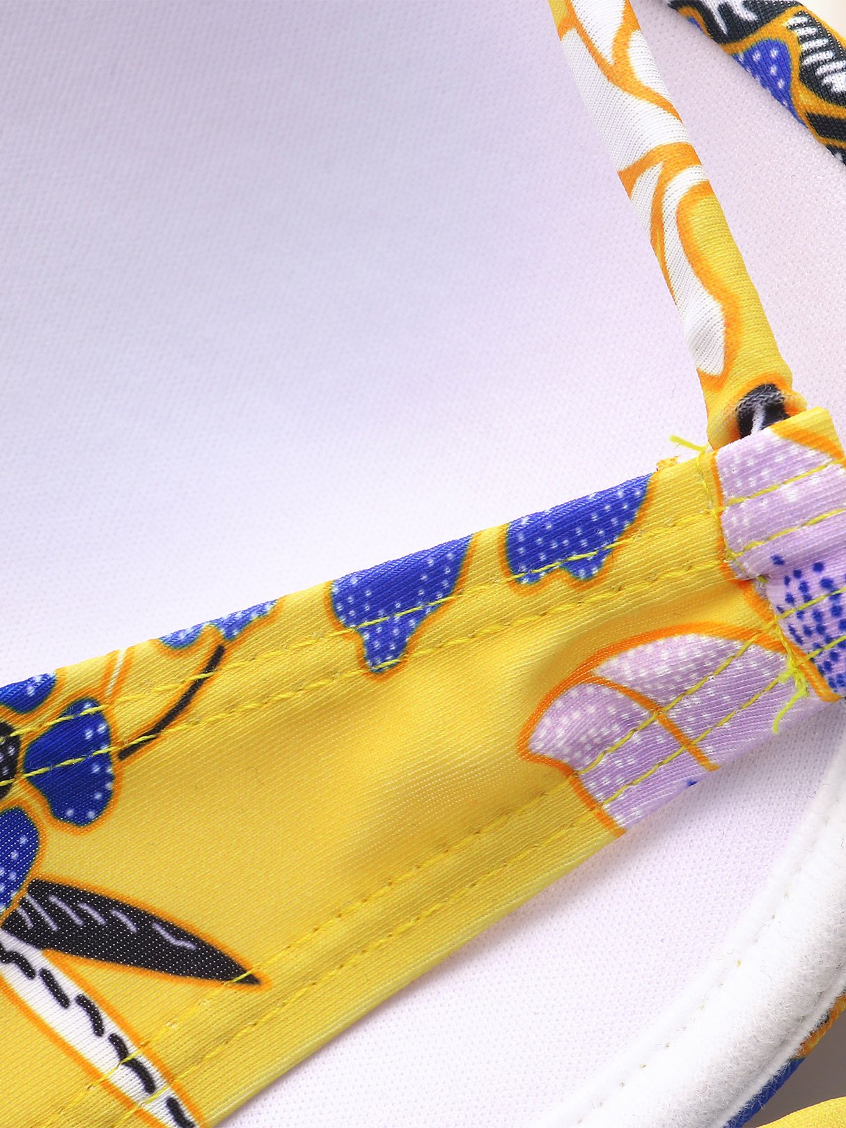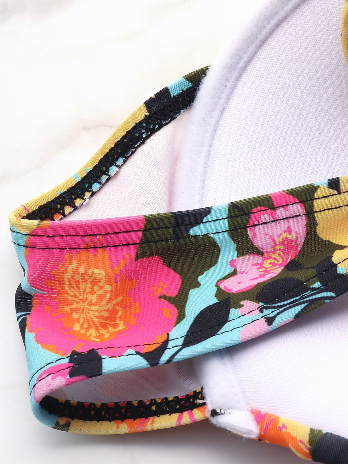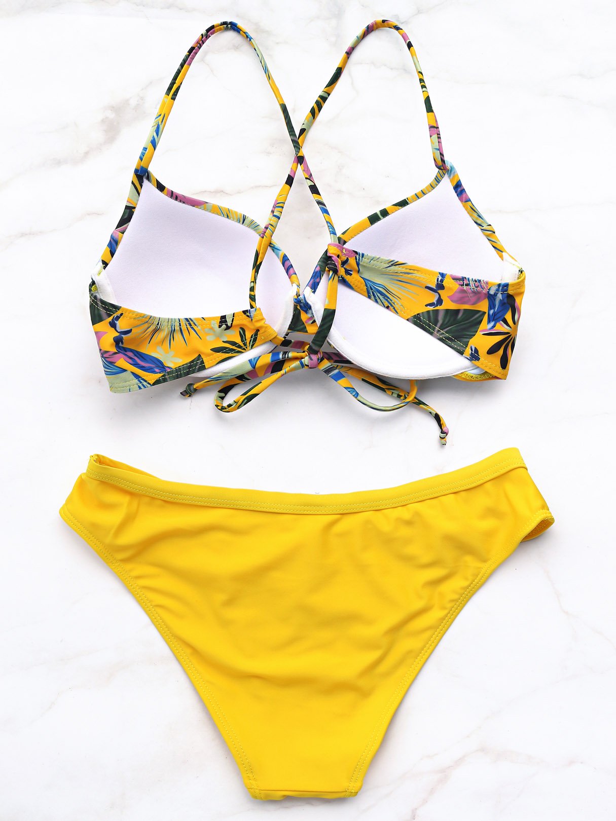 V-Neck Sleeveless Floral Print Criss-Cross Bikini Set Swimwear