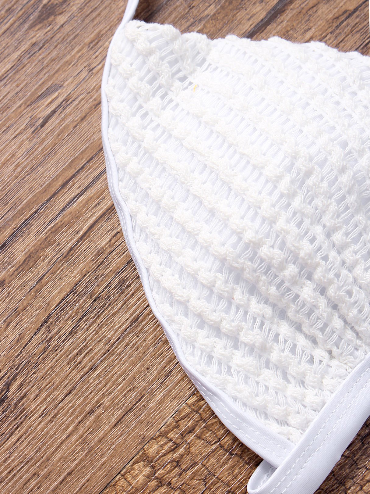 White Halter V-Neck Sleeveless Plain Lace-Up Bikinis