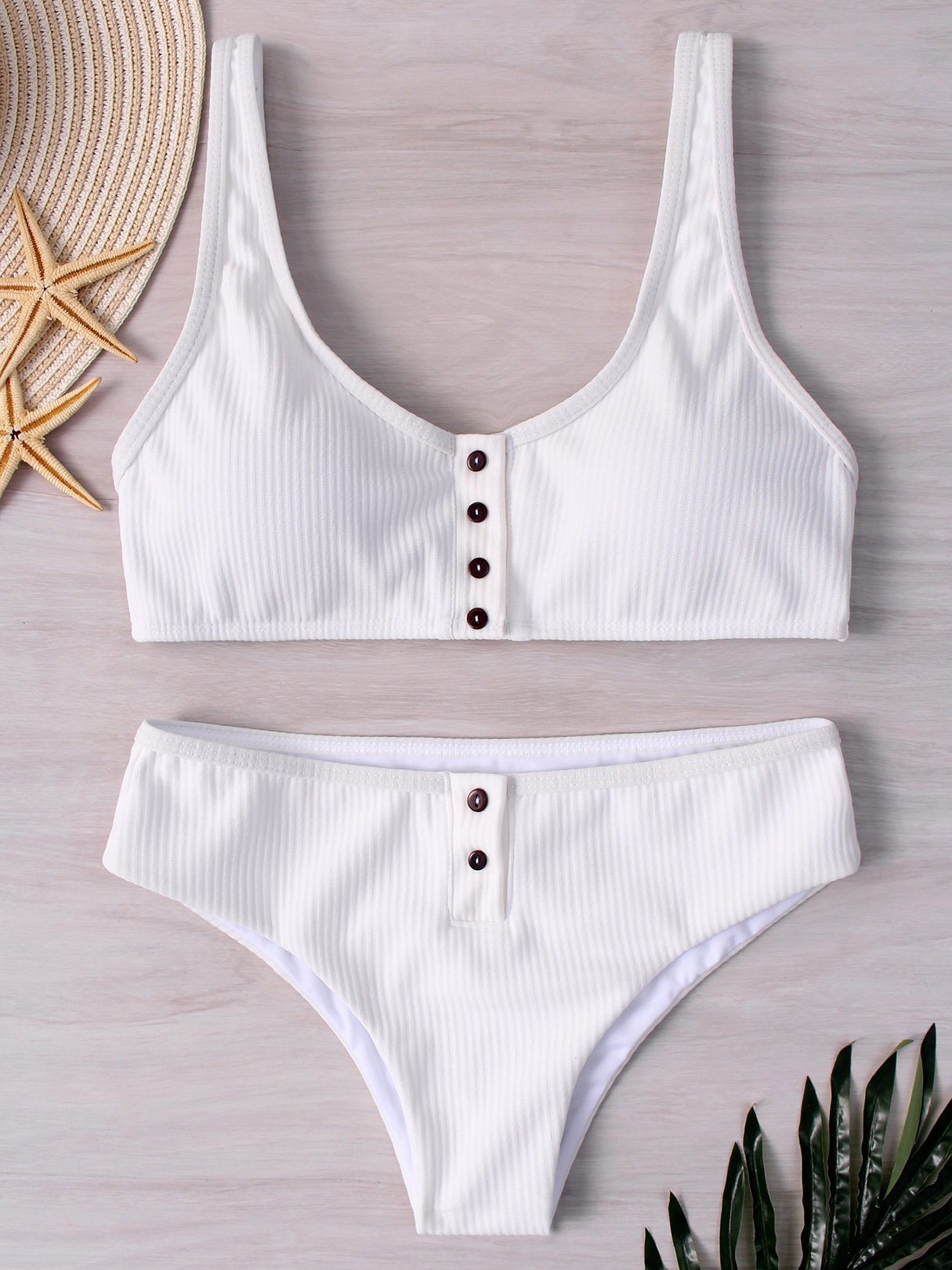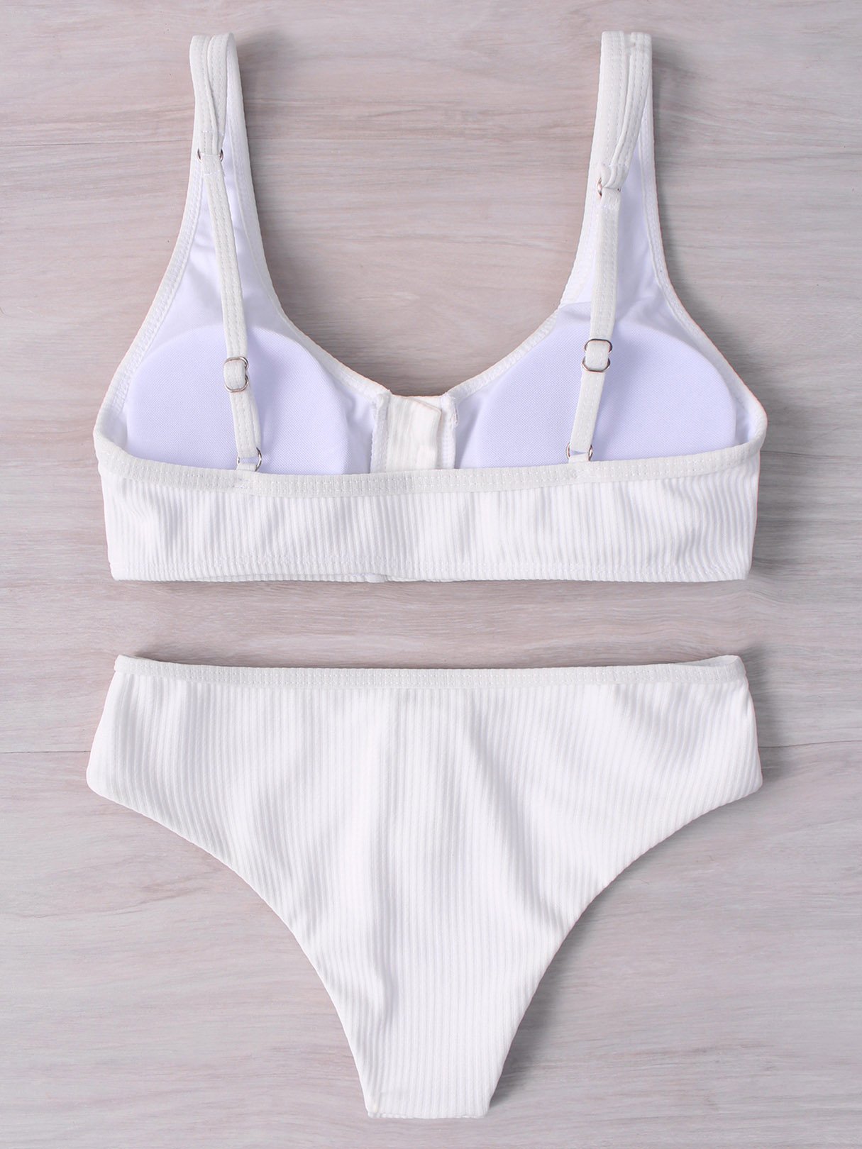 White Sleeveless Plain Spaghetti Strap Two Piece Bikinis