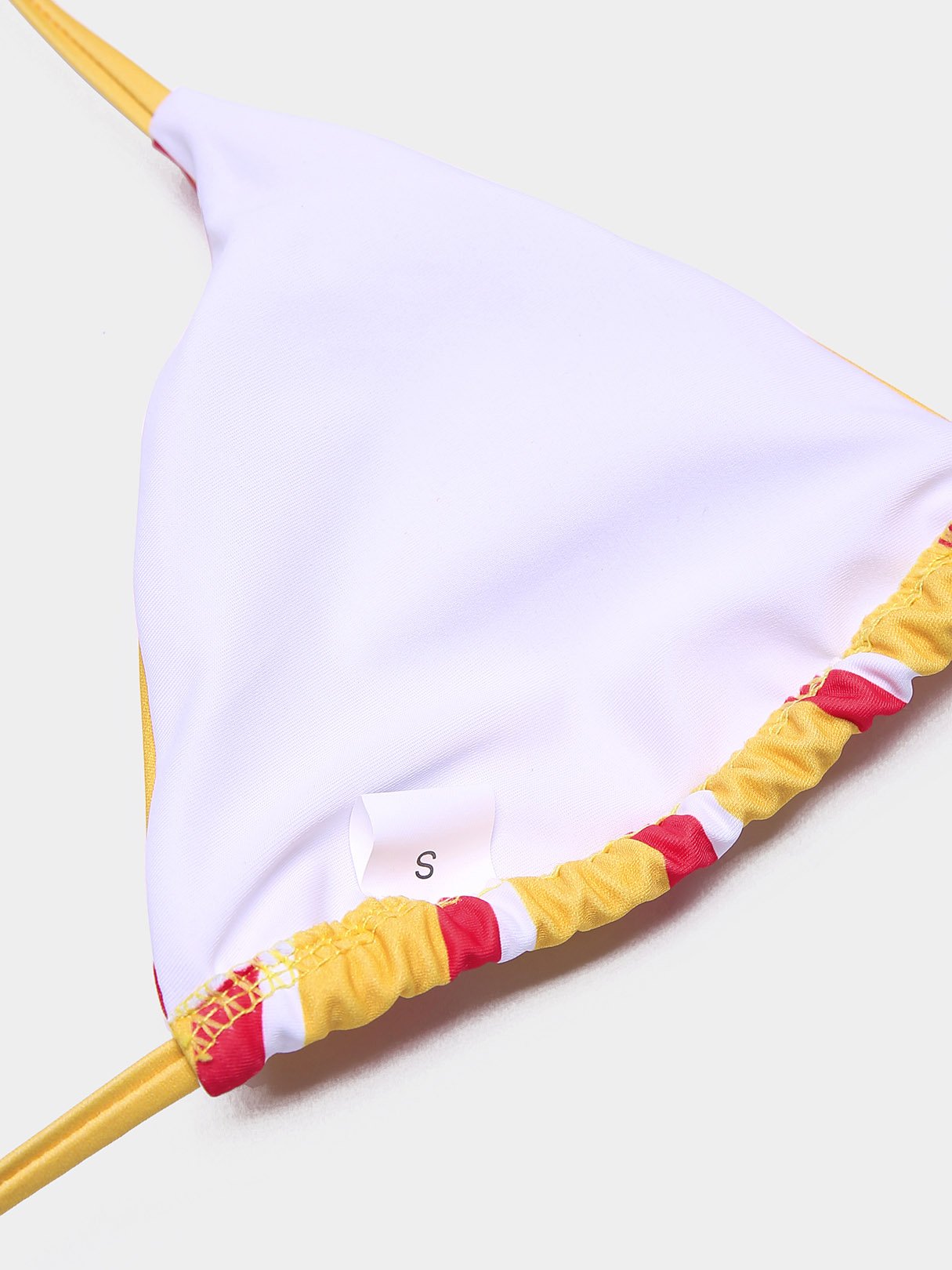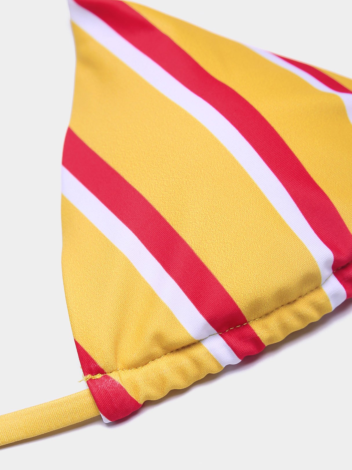 Yellow Halter V-Neck Sleeveless Stripe Pleated Wireless 2 Piece Bikinis