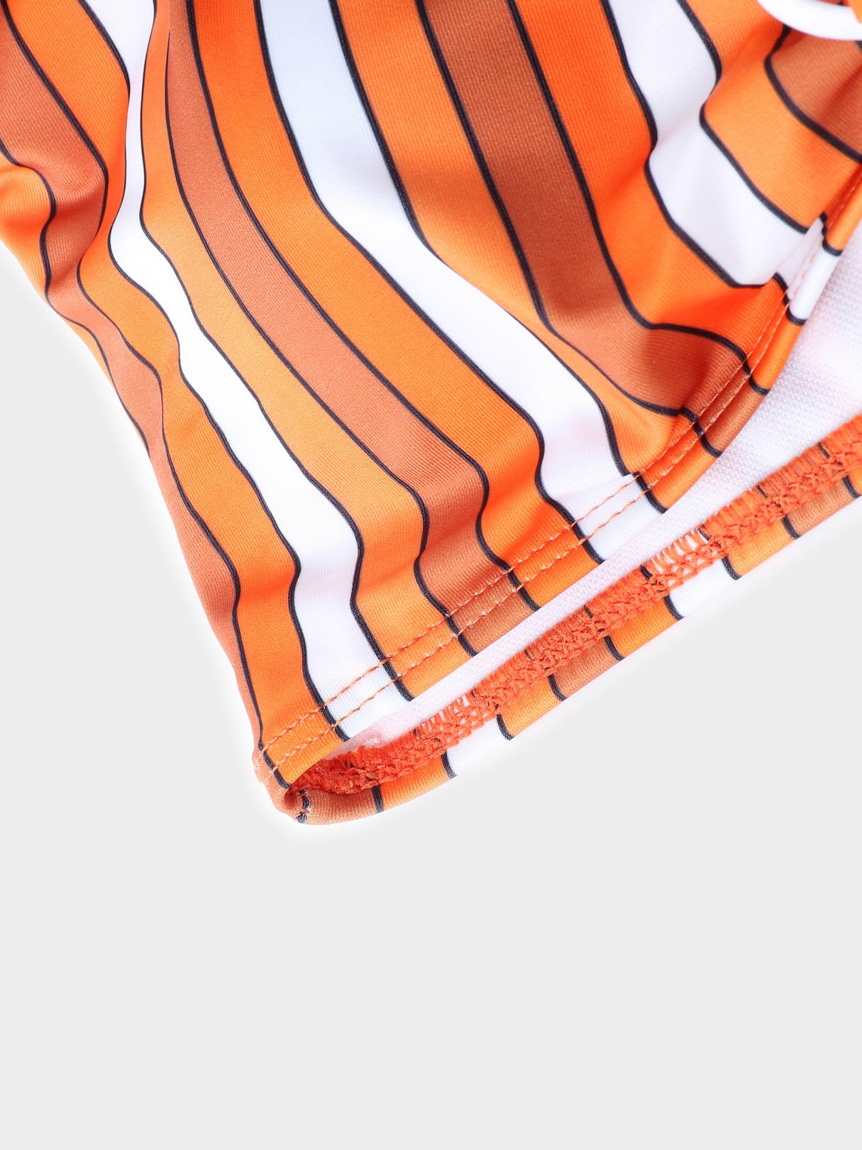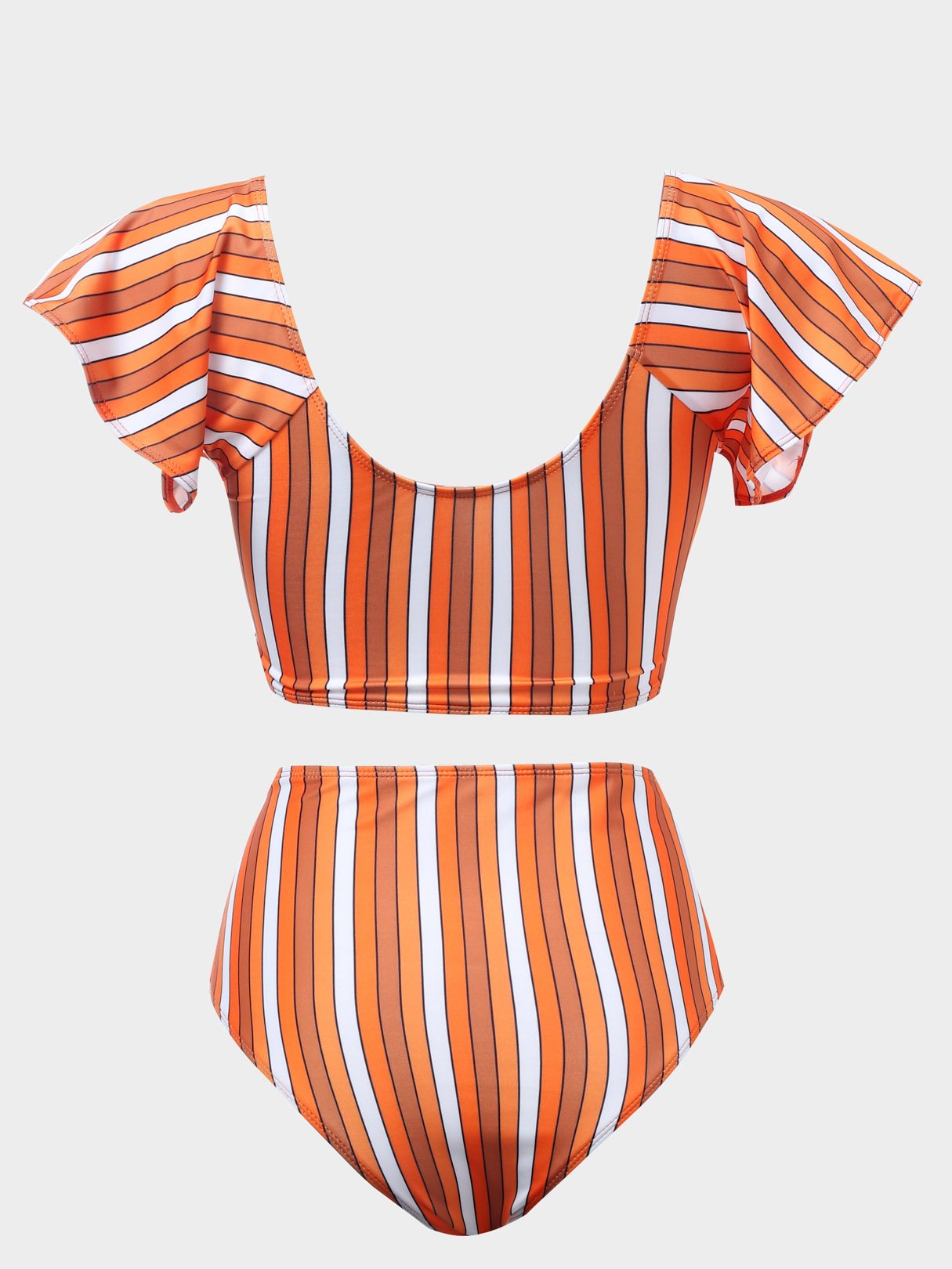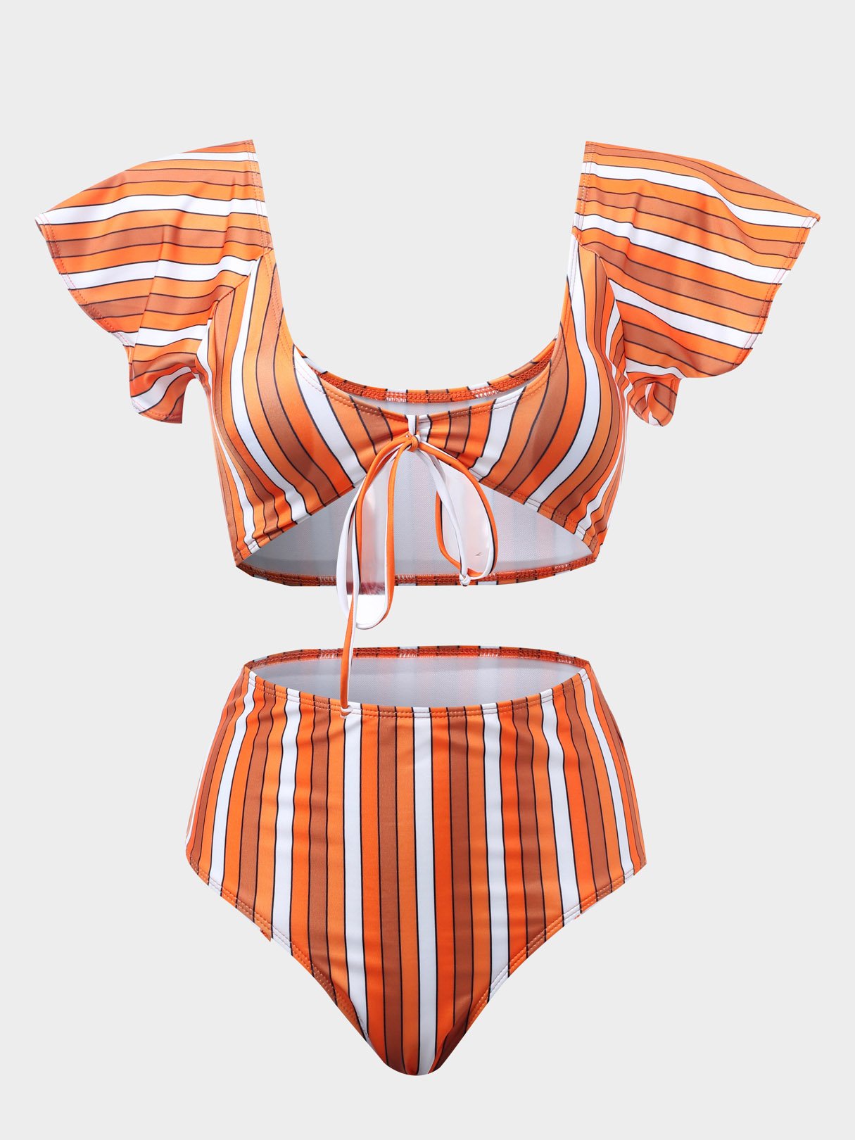 Yellow Scoop Neck Short Sleeve Stripe Lace-Up High Waist 2 Piece Bikinis