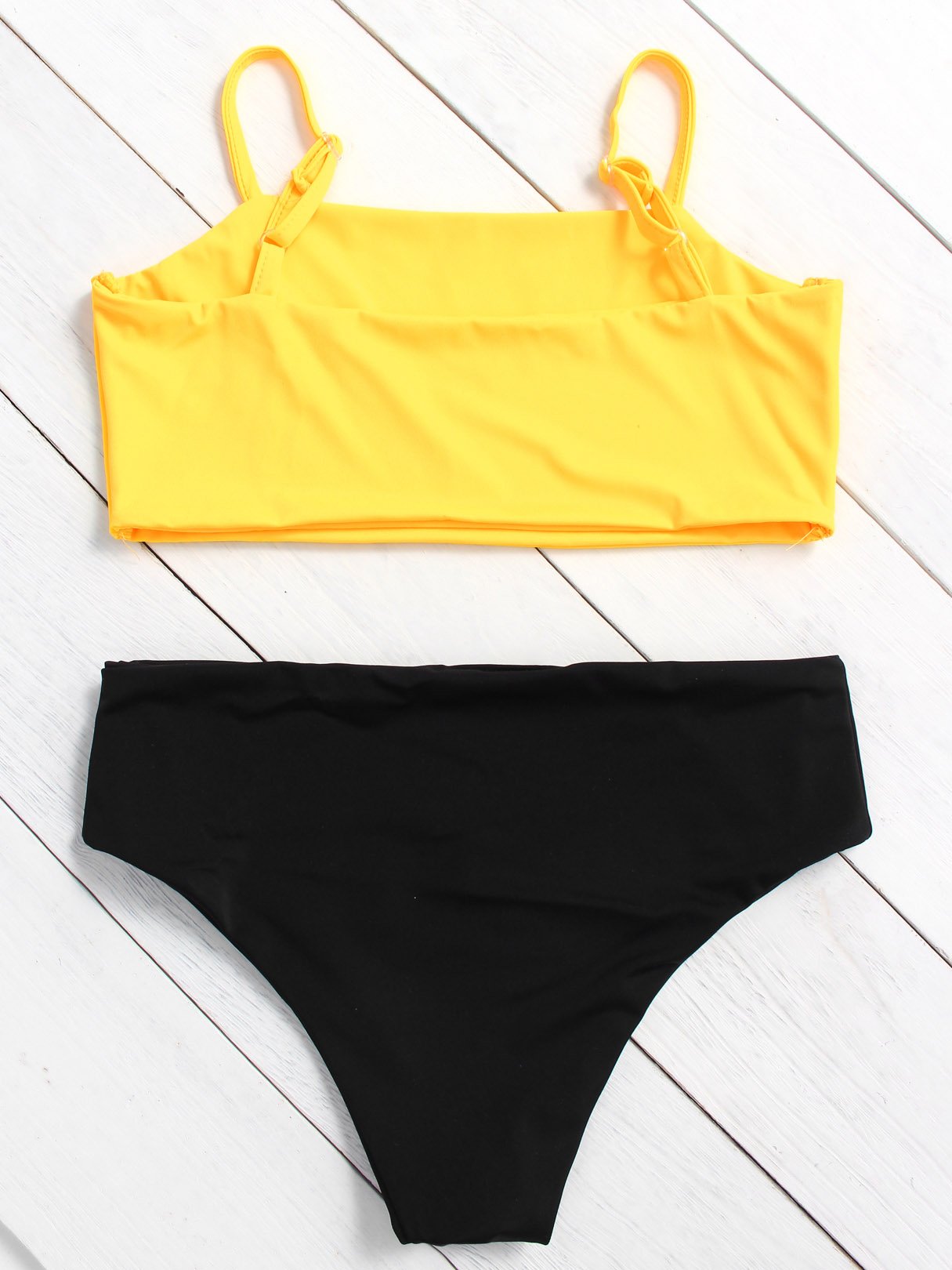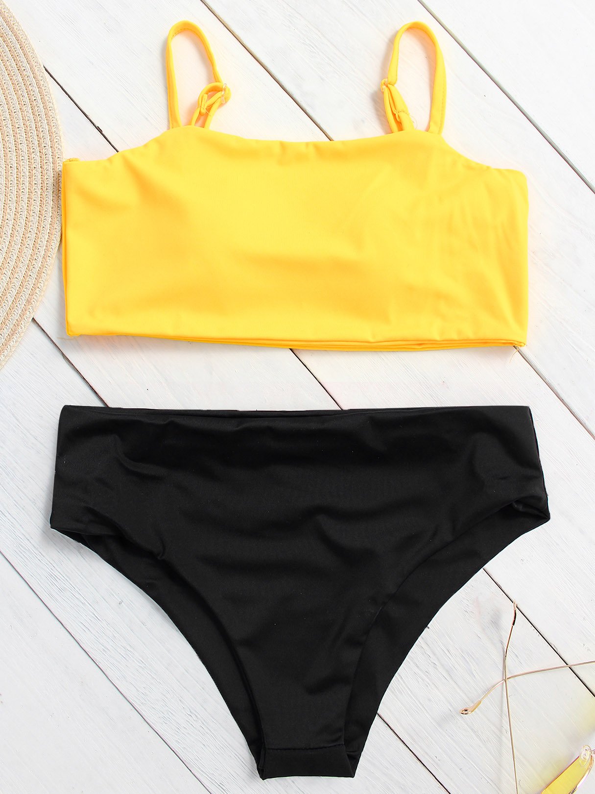Yellow Sleeveless High-Waisted Two Piece Bikinis