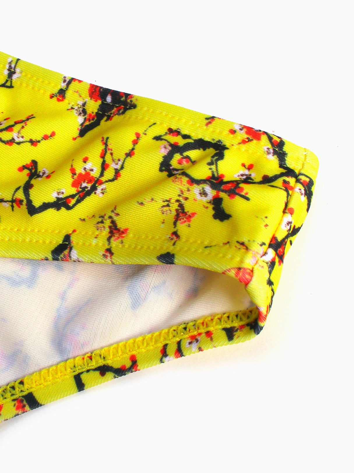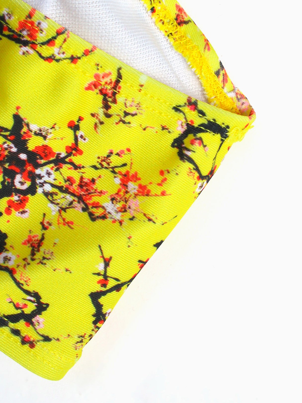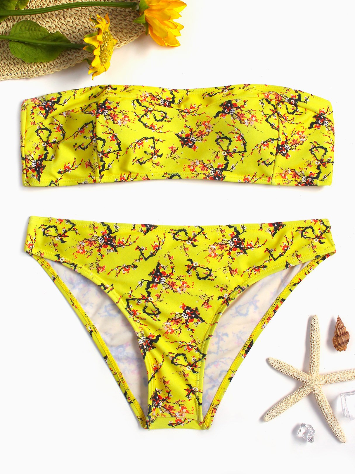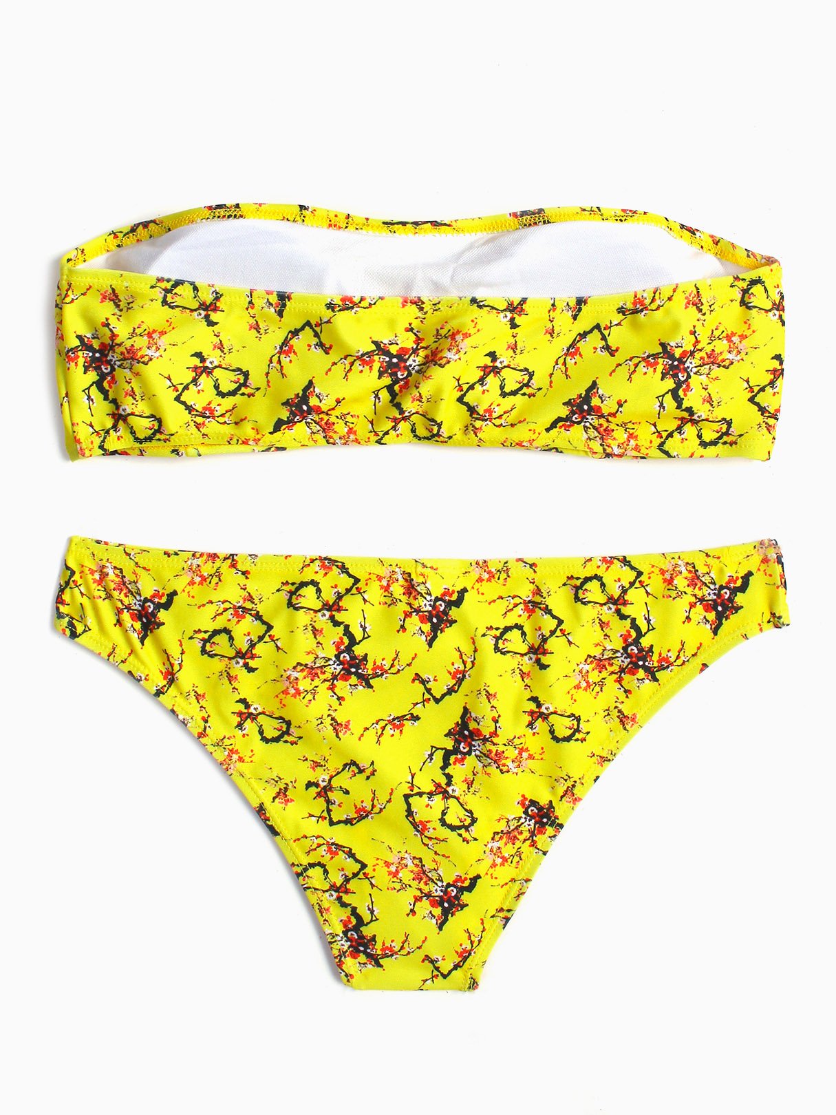 Yellow Strapless Off The Shoulder Sleeveless Floral Print Backless Two Piece Bikinis