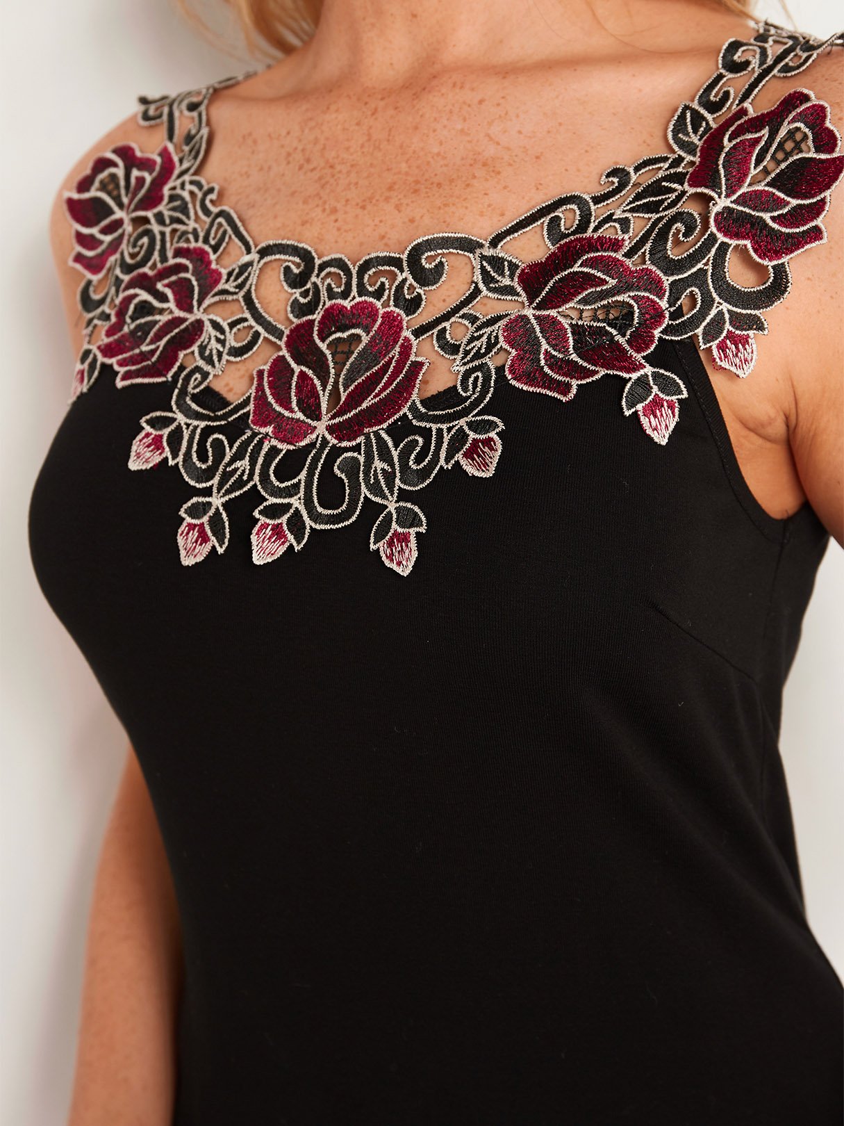 Asymmetrical Embroidered Lace Sleeveless Black Camis