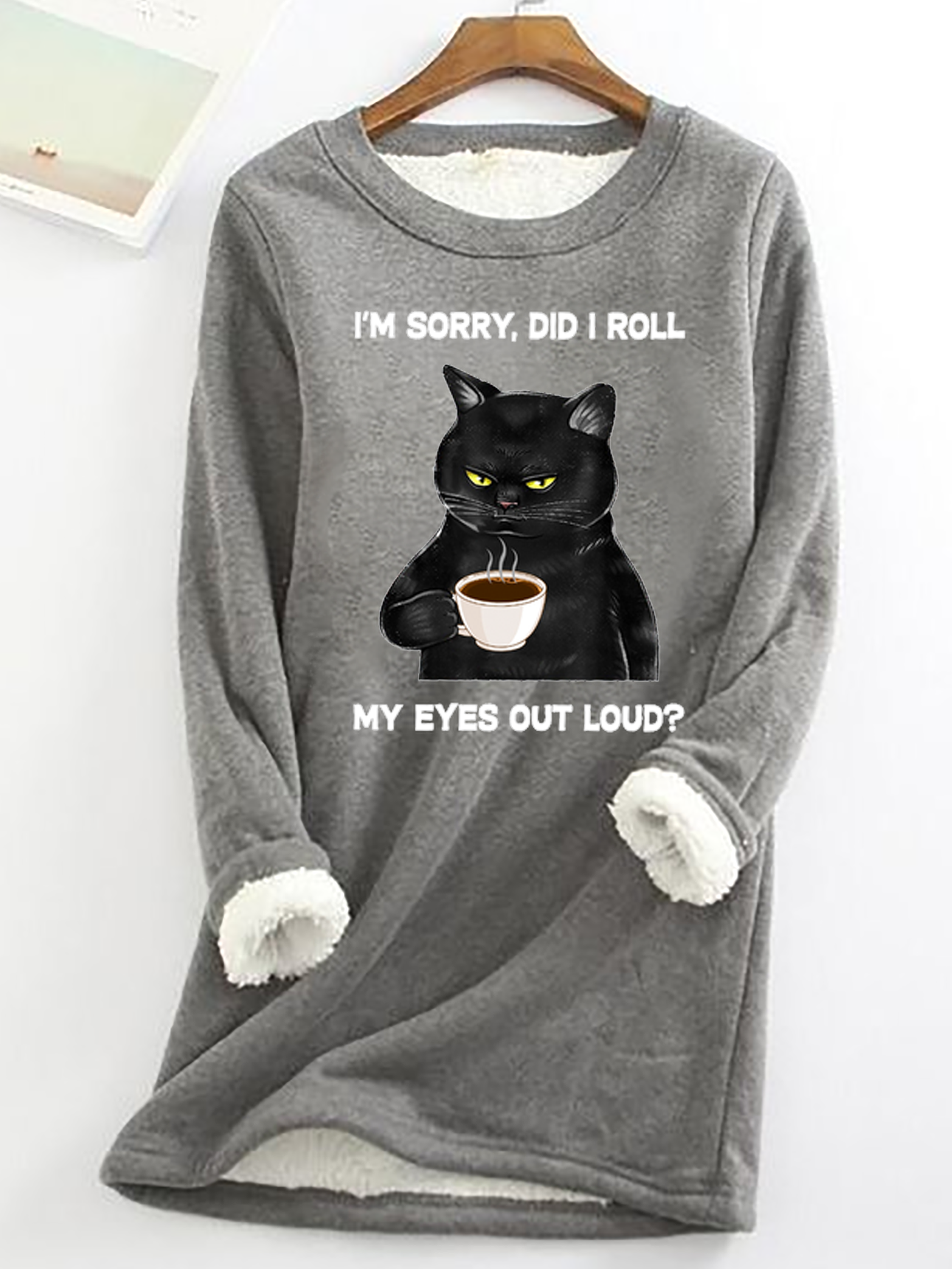 Crew Neck Long Sleeve Cat Fashion Regular Blouses - Gray / S is backordered and will ship as soon as it is back in stock.