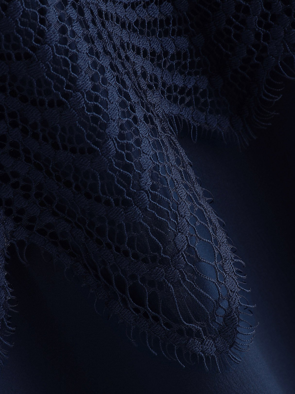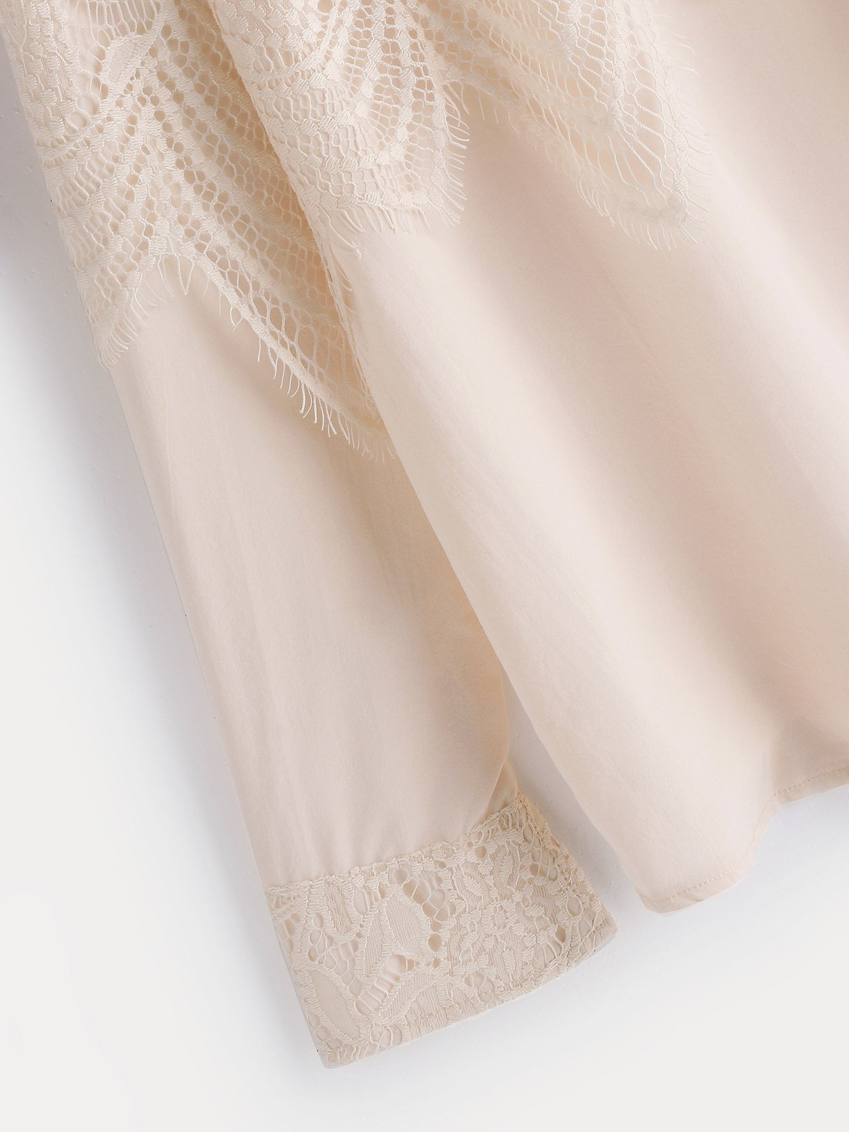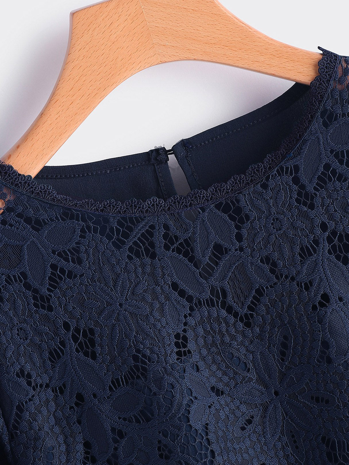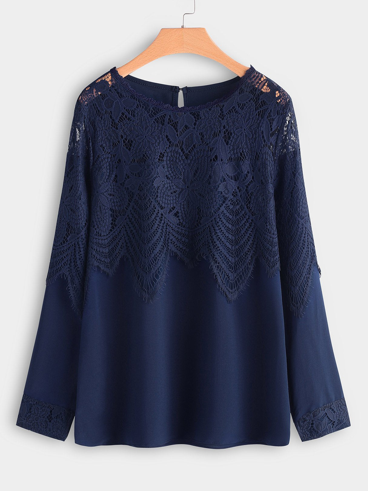 Crew Neck Plain Lace Long Sleeve Blouses - Navy / S is backordered and will ship as soon as it is back in stock.