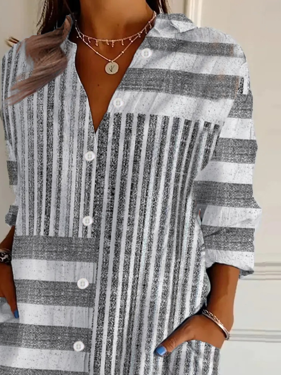Fashion 3/4 Sleeve Shirt Collar Striped Regular Shirt