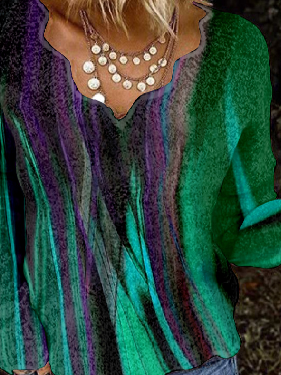 Fashion Crew Neck Long Sleeve Abstract Loose Regular Blouses
