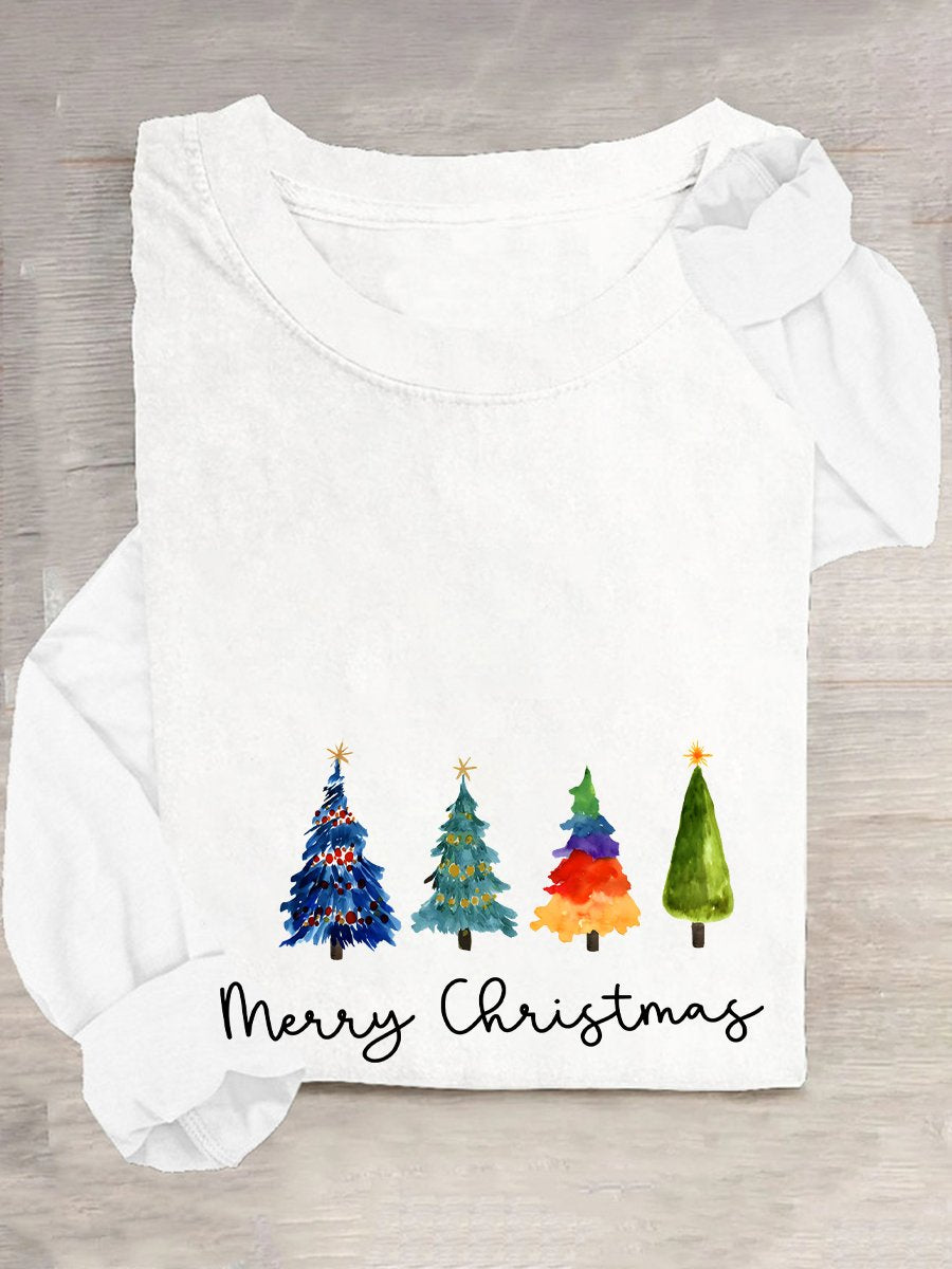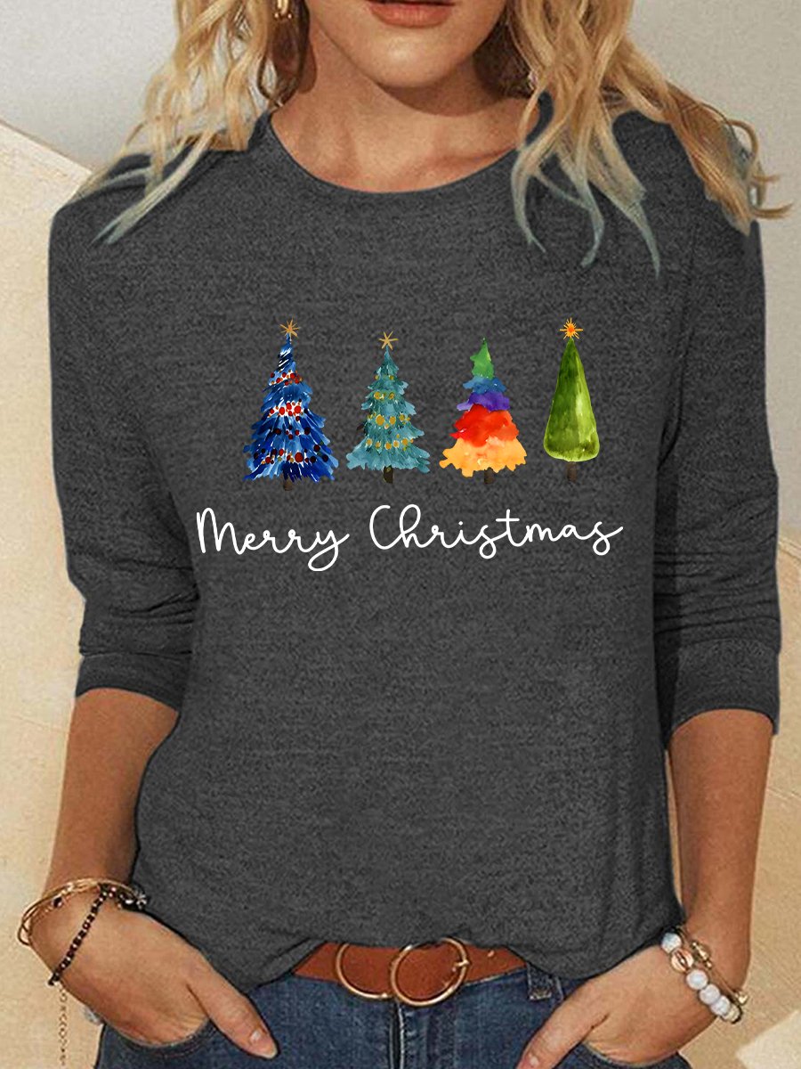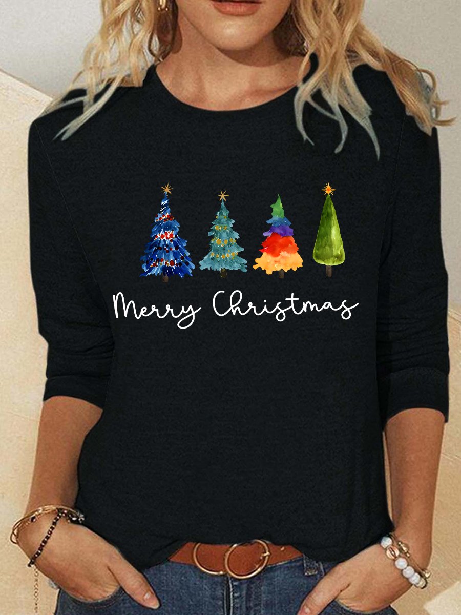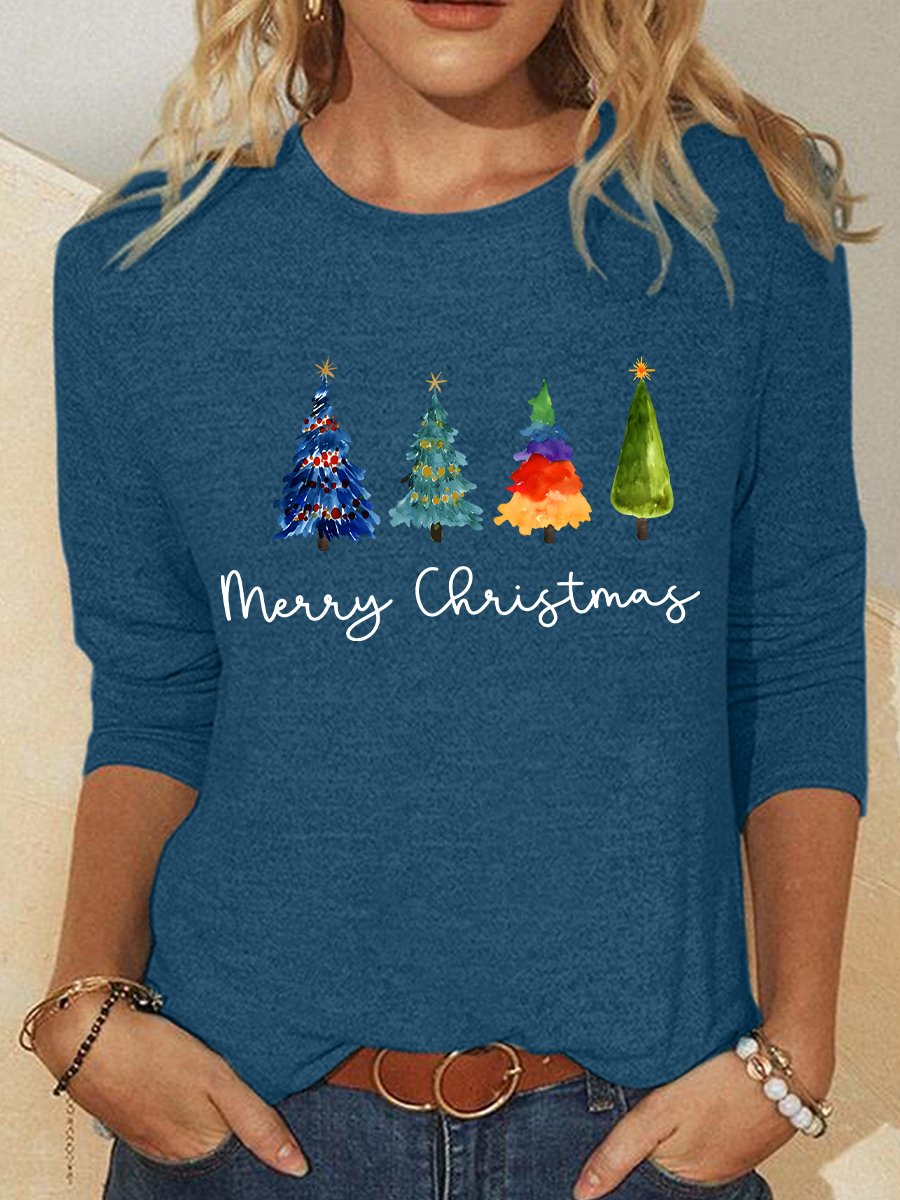 Fashion Crew Neck Long Sleeve Christmas Tree Loose Regular Blouses - Blue / S is backordered and will ship as soon as it is back in stock.