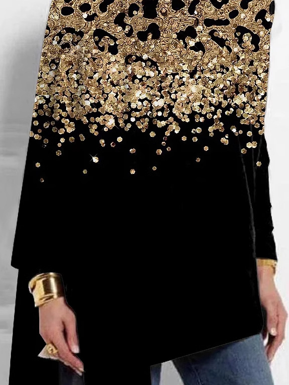 Fashion Crew Neck Long Sleeve Color Block Loose Mid-Long Blouses - Black / XS is backordered and will ship as soon as it is back in stock.
