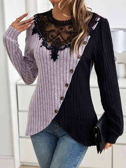 Fashion Crew Neck Long Sleeve Color Block Loose Regular Blouses - Black / S is backordered and will ship as soon as it is back in stock.